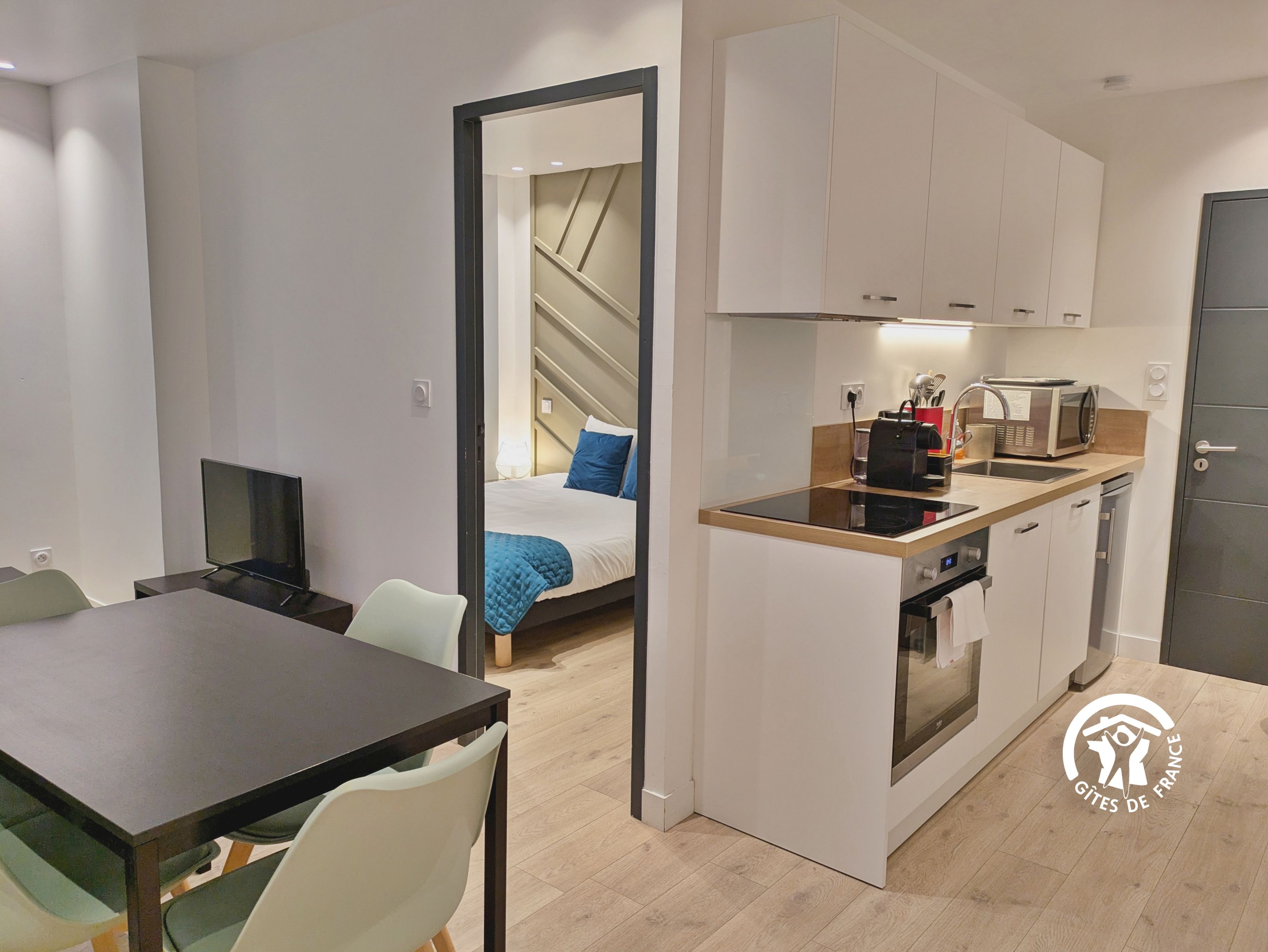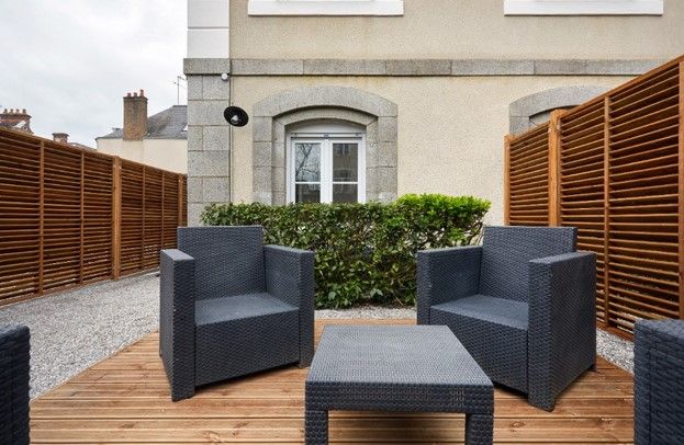 Profitez d’un séjour au calme dans cet appartement idéal pour deux, avec terrasse intime, situé au rez-de-chaussée d’un immeuble XIXᵉ rénové avec style. La Résidence du Colonel, dans un quartier élégant de Laval, est à seulement 650 m de la gare et 300 m de la Mayenne avec son célèbre chemin de halage La VéloFrancette. La place du centre-ville, récemment rénovée, offre un cadre convivial avec ses halles, ses restaurants, un espace pour enfants avec carrousel, ainsi qu’une superbe vue sur la Mayenne et les commerces alentour.