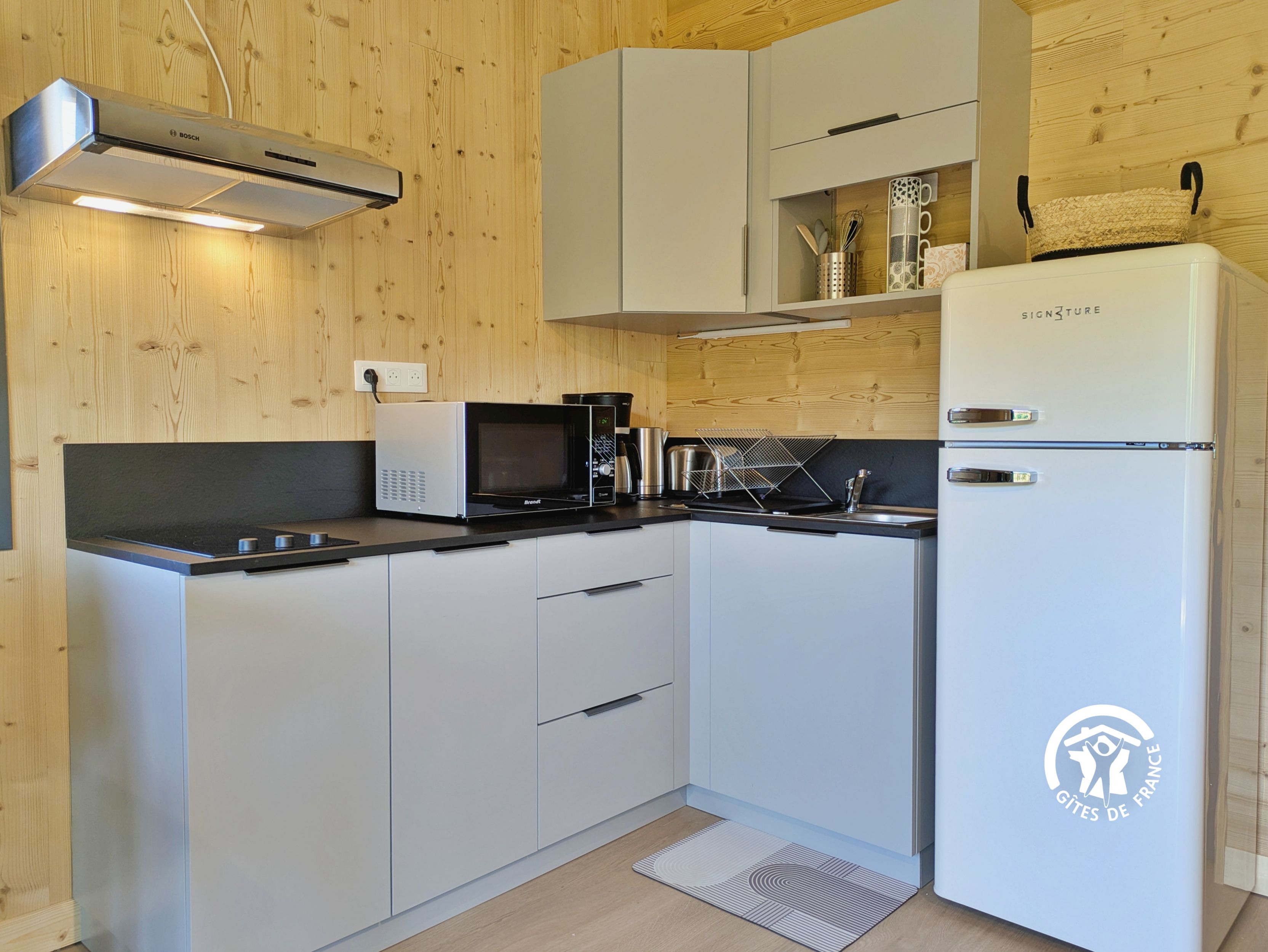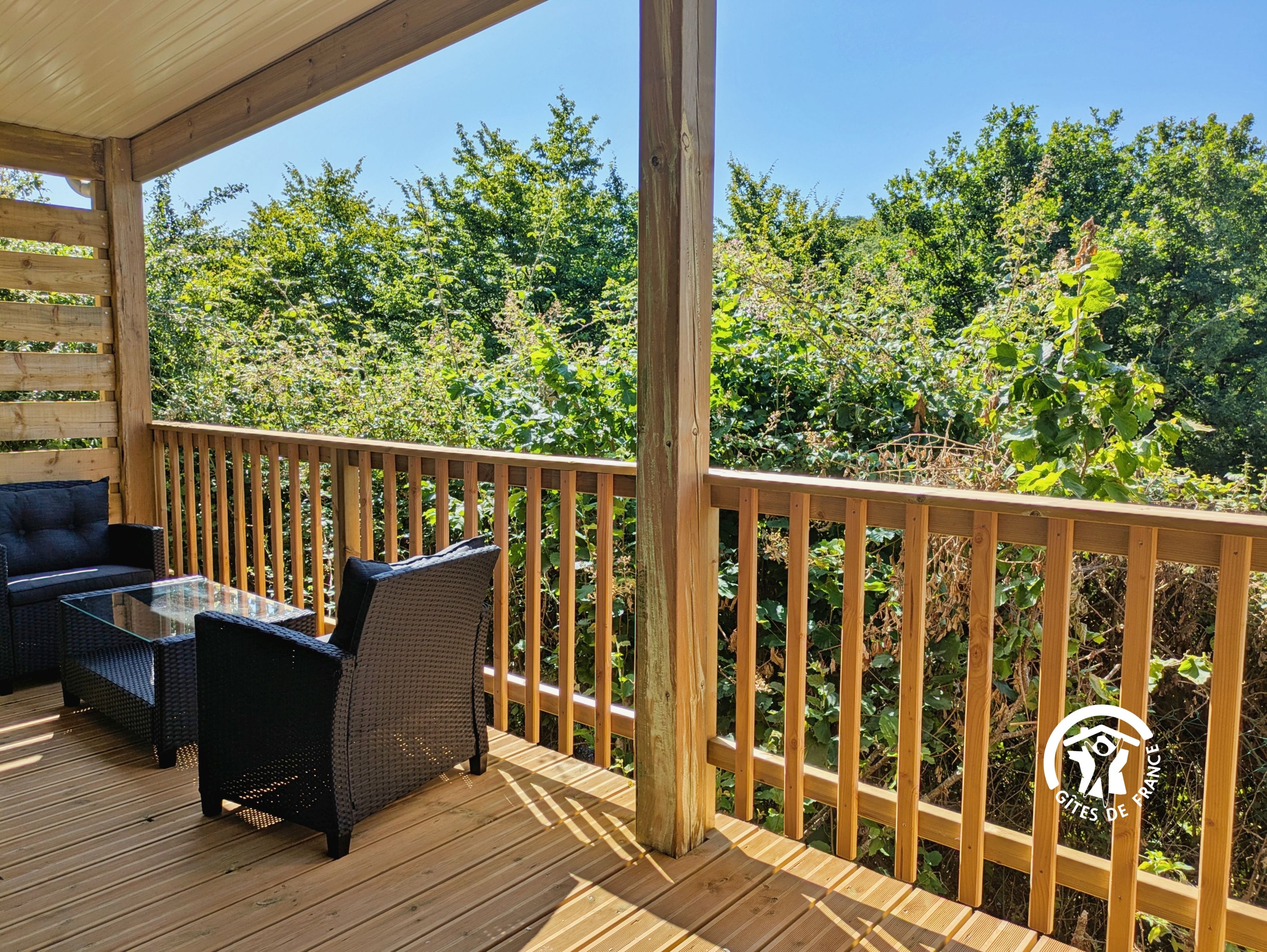 À 5 km de Laval, le camping de Coupeau vous propose ce chalet insolite confortable, idéal pour les familles ou les voyageurs en quête de calme et de nature. Perché au-dessus du bois de Coupeau et surplombant la rivière le Vicoin, il offre un cadre reposant et une belle vue panoramique. Le chalet se compose d’une terrasse couverte, d’un séjour avec cuisine équipée, de deux chambres (4 lits jumeaux), ainsi qu’une salle d’eau avec WC. À proximité : Commodités : boutique de produits locaux sur place, tous commerces, restaurants et services à 700 m. Activités au camping et dans les environs : Table de ping-pong – Dans le bois : aire de jeux pour enfants, mur d’escalade, terrain de pétanque, tables de pique-nique, grotte – Pêche possible avec une carte fédérale (en vente sur le site de la fédération) – Circuits de trail, randonnées à pied ou à vélo Infos pratiques : Accueil du camping : ouvert du 11 avril au 5 octobre, de 9h à 12h30 et de 15h à 19h30. À découvrir à Laval (5 km) : Ville d’art et d’histoire dynamique, Laval propose tout au long de l’année : Festivals de théâtre et de musique – Expositions, événements sportifs – Illuminations de Noël – Espace Mayenne : événements culturels et sportifs – Halte fluviale de Laval (7 km) : location de bateaux et de vélos – Parc animalier l’Arche Desnoë (5 km) – La Cité du Lait (7 km) : le plus grand musée laitier avec des animations ludiques pour toute la famille. Venez découvrir la beauté de la Mayenne et profitez d’un séjour inoubliable au camping de Coupeau !