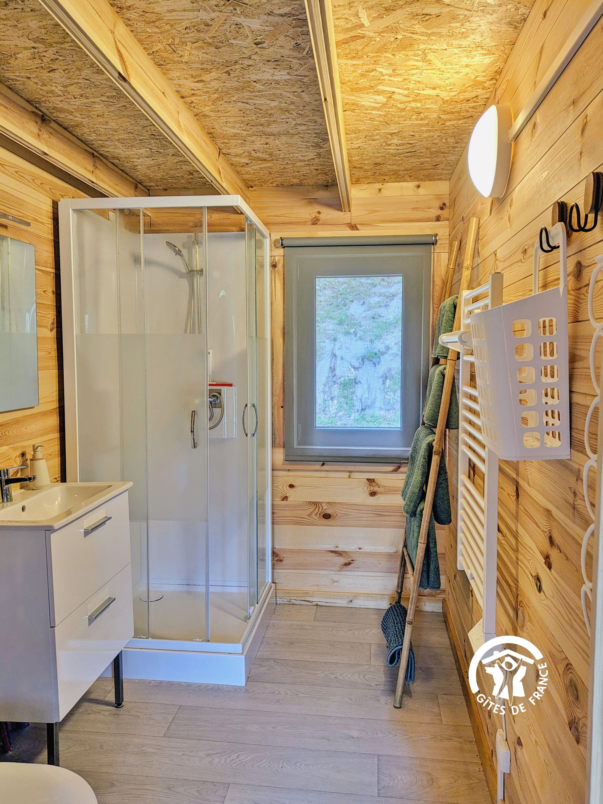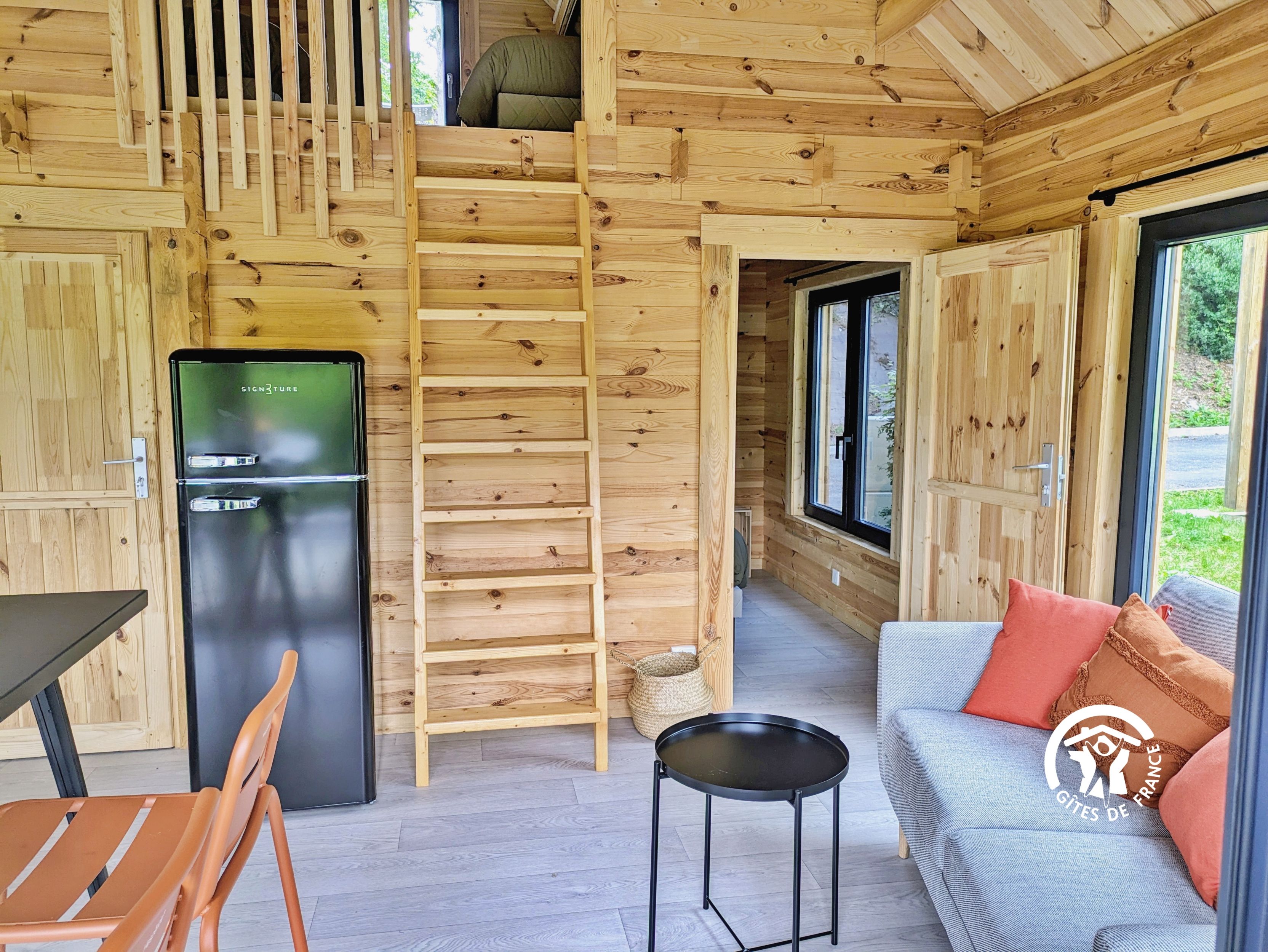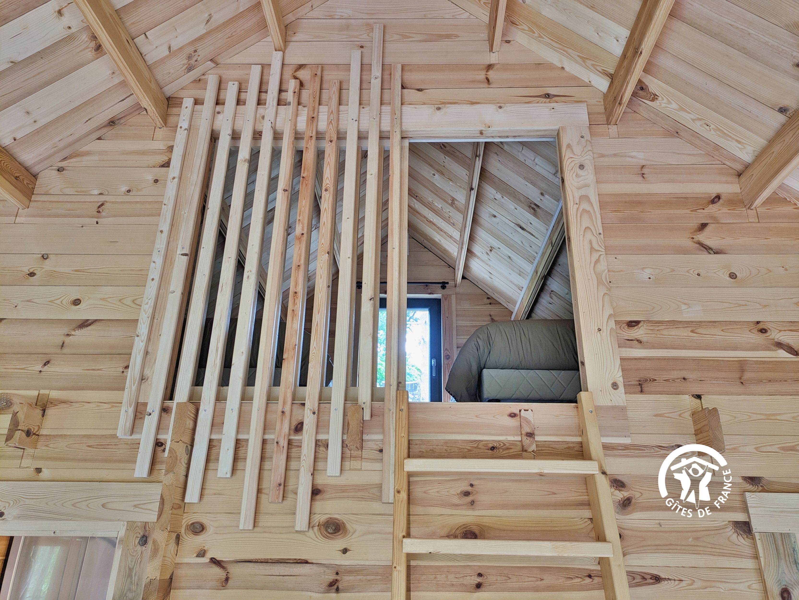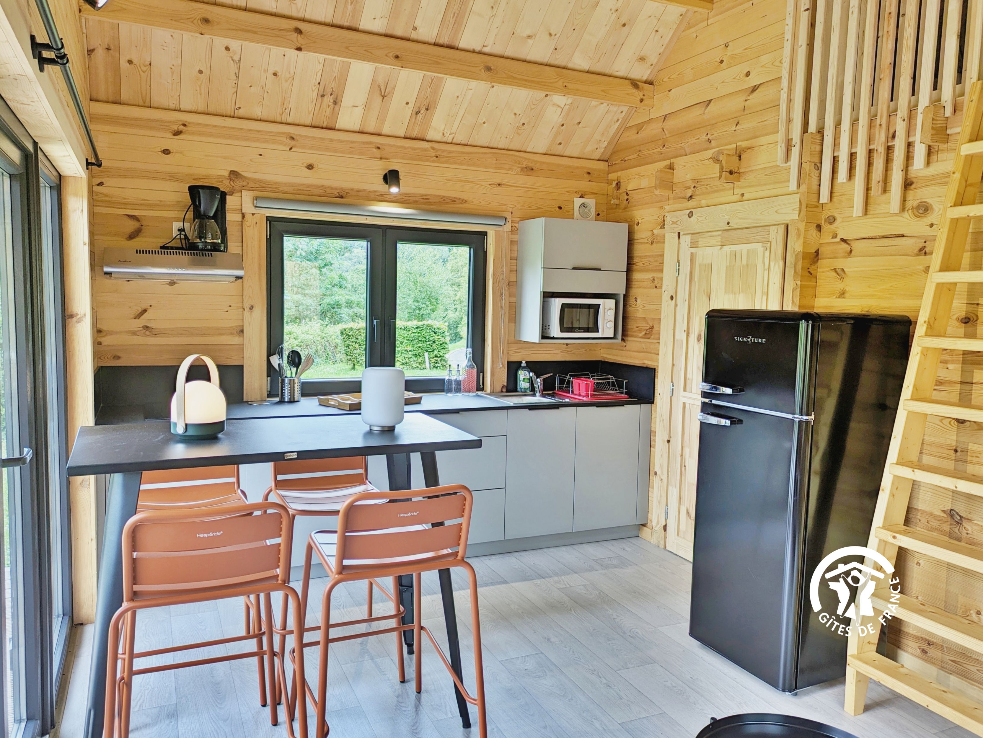 À 5km de Laval, le camping de Coupeau propose ce chalet insolite confortable, pour les familles ou les voyageurs en quête de calme et de nature. Il bénéficie d’une vue en surplomb sur le bois de Coupeau et la rivière le Vicoin. Le chalet dispose d’une terrasse couverte, un séjour avec cuisine équipée et 2 chambres (4 lits jumeaux), une salle d’eau avec wc.