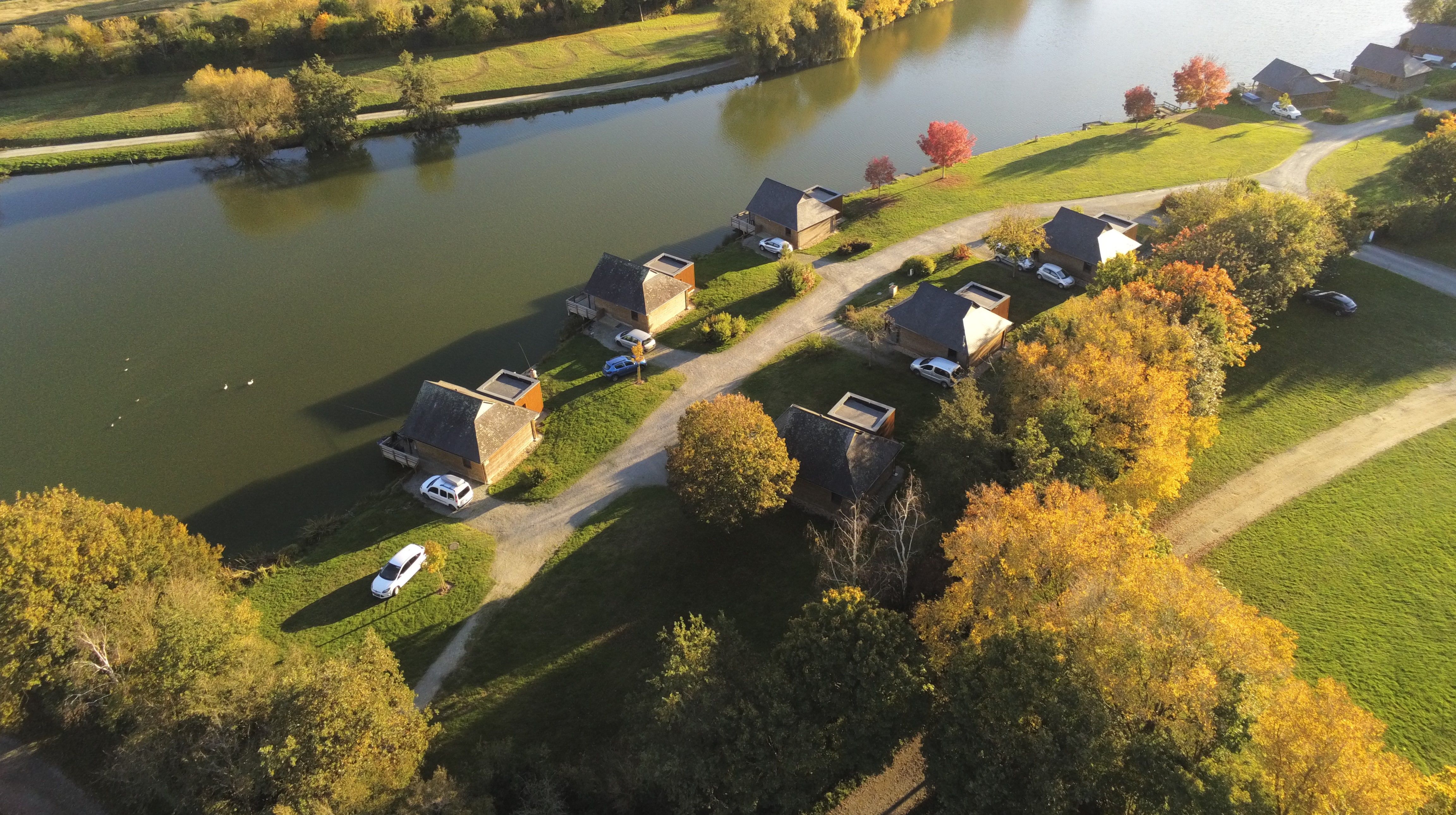 Pêche en Mayenne, village de 12 chalets avec étang 7ha, en Mayenne