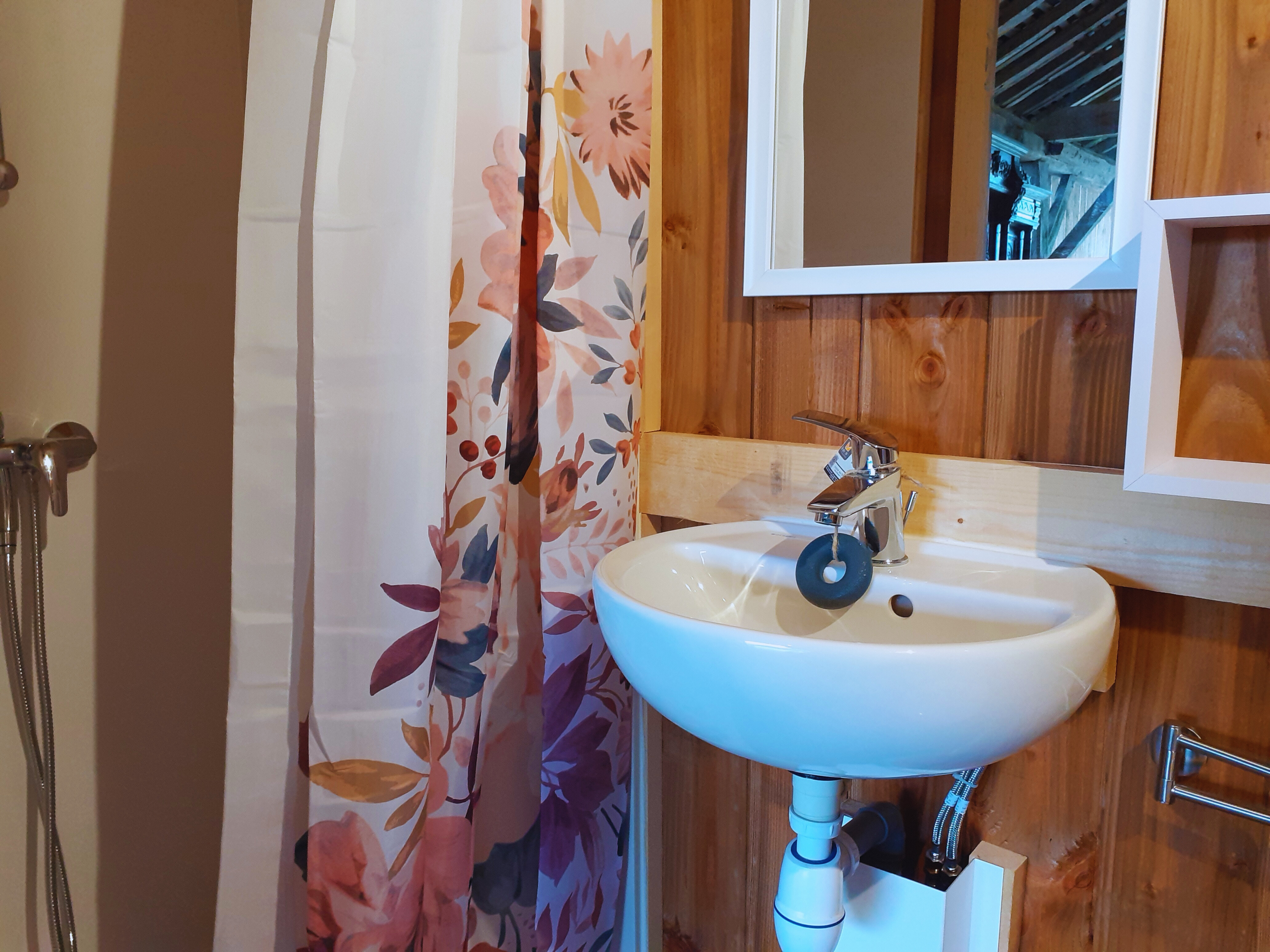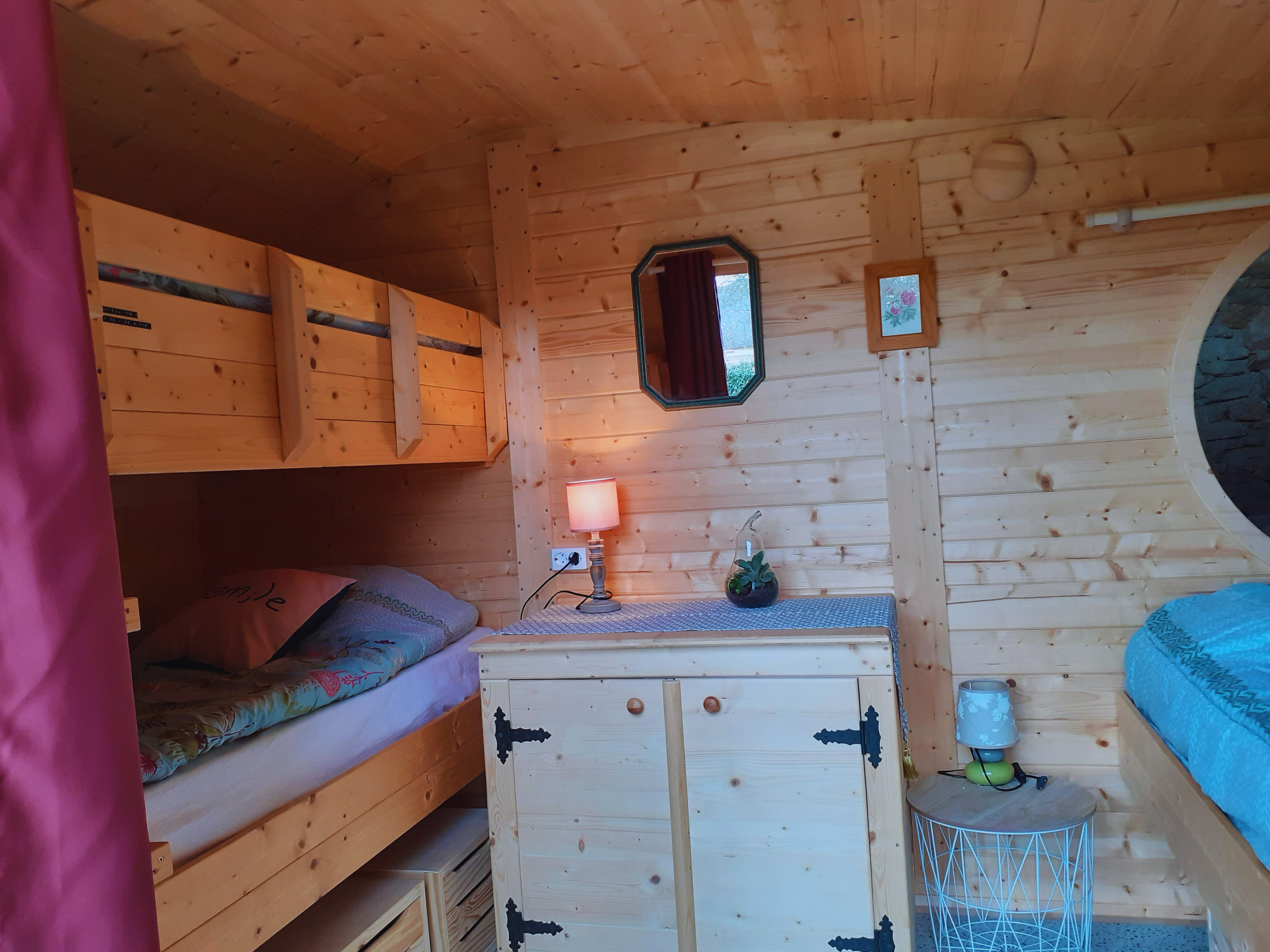 Une chambre d’hôtes pour 4 personnes dans une jolie cabane en bois confortable, ouverte sur un grand préau. Une pièce de vie équipée pour des séjours déconnectés, dans un bocage préservé.