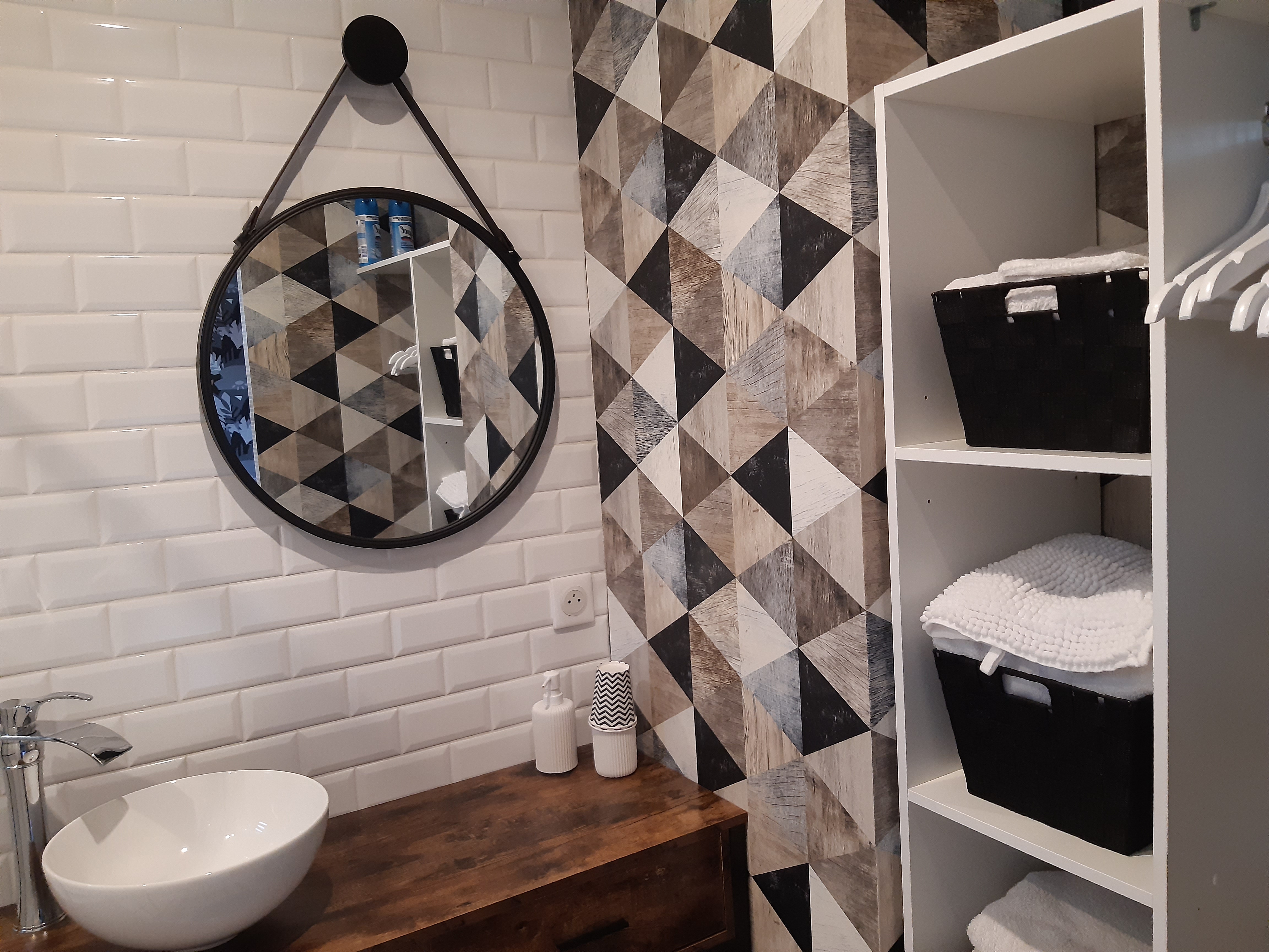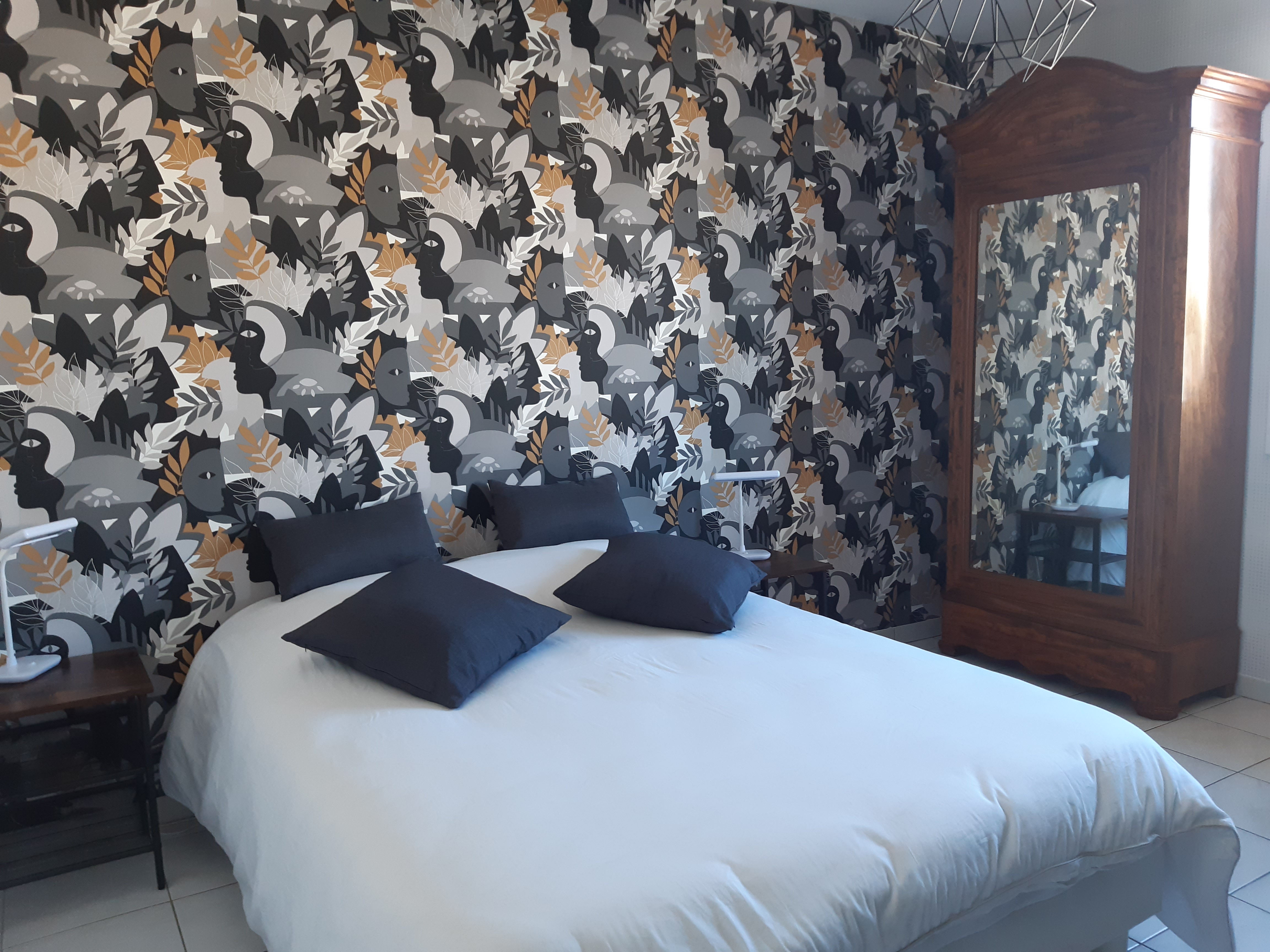 – une chambre, en rez-de-chaussée, équipée d’un lit de 140 de chevets d’un bureau d’un porte valise et d’une télévision