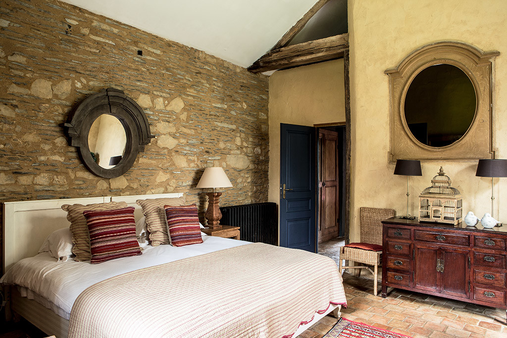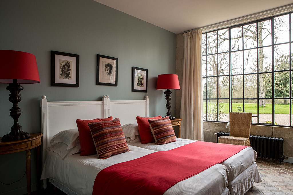 Enduits anciens, sols en terre cuite, grandes baies vitrées avec vue sur le château et cheminée en tuffeau : le Fruitier un vrai coup de foudre pour les » accros » de la déco…