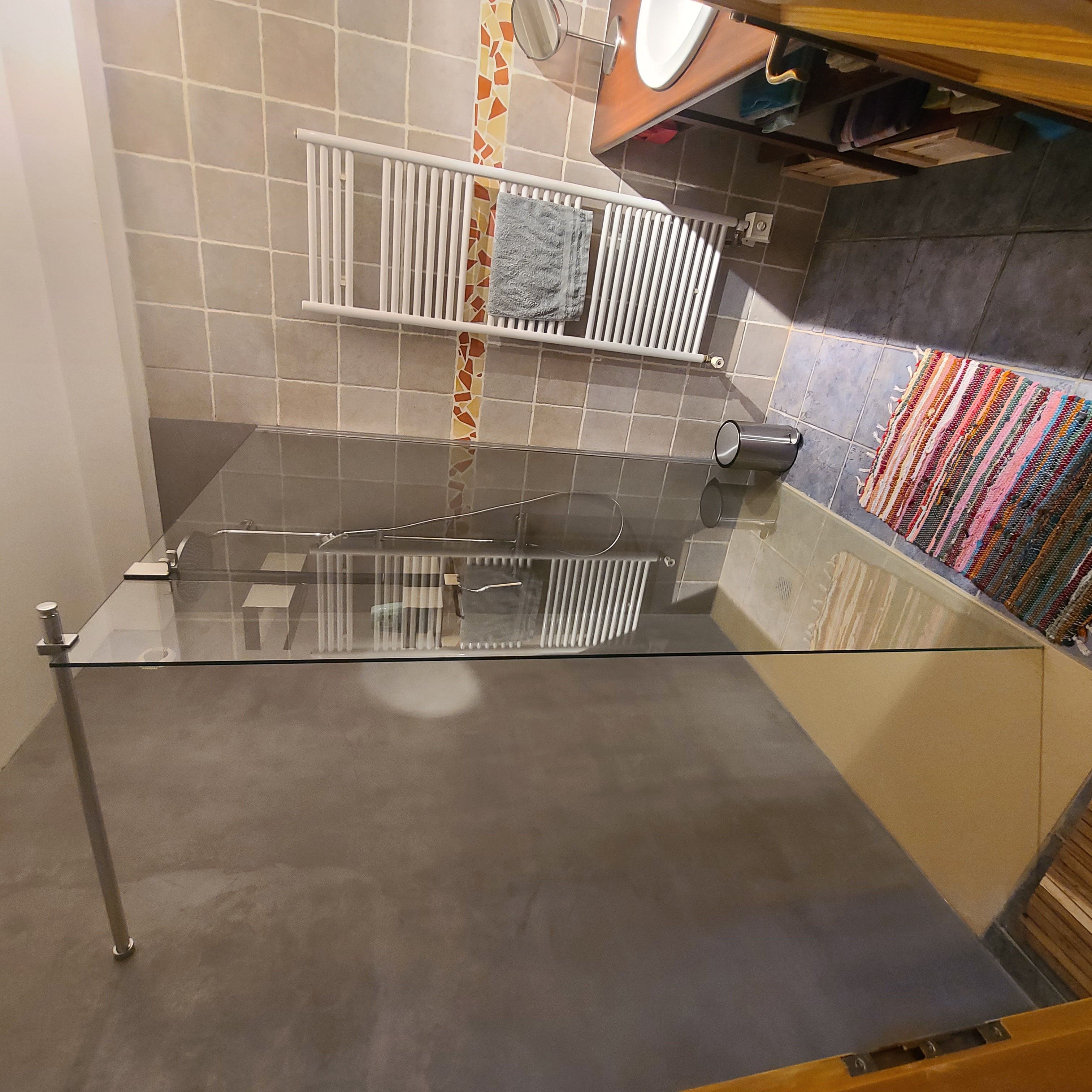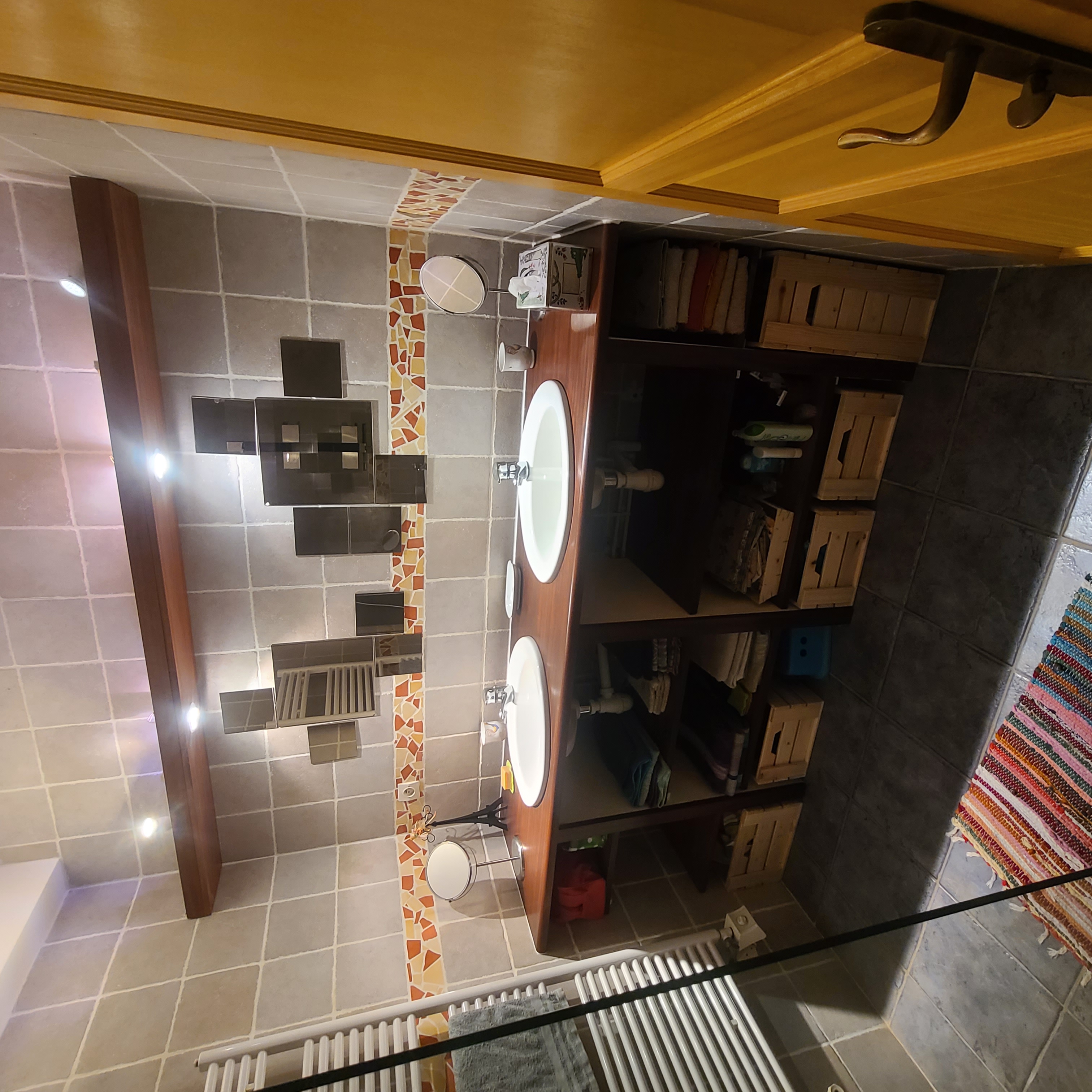 Vous aurez à votre disposition une salle de bain (2 lavabos et une baignoire) et un WC. Notre cuisine, salle à manger, salon étant un espace ouvert, vous pourrez bien sûr y accéder. Au besoin vous pourrez utiliser notre machine à laver le linge.