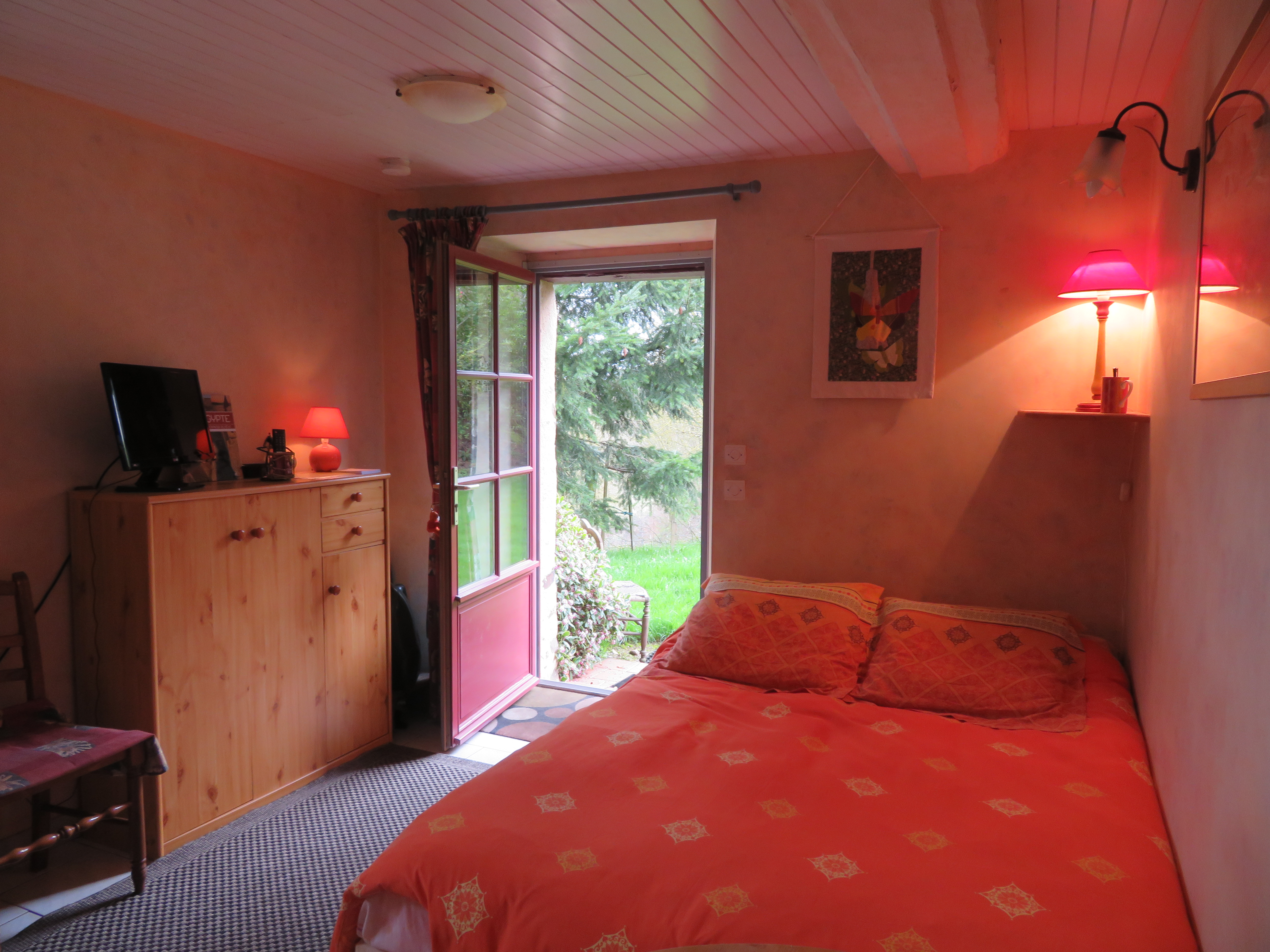 et une troisième chambre/studio indépendant à l’extrémité de notre habitation avec cuisinette et salle d’eau-WC privé…