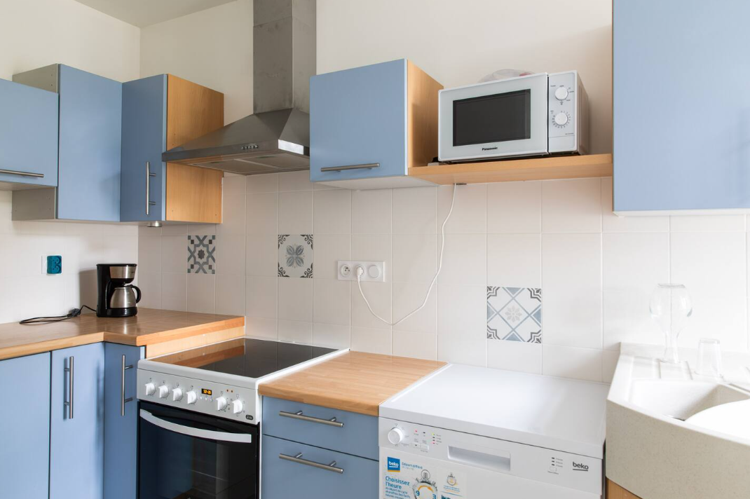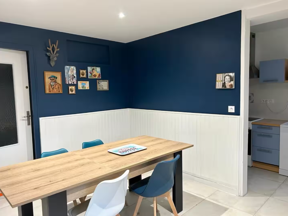 Profitez d’une pièce commune conviviale avec un espace repas et une cuisine aménagée, idéale pour préparer et partager de bons repas en toute simplicité.