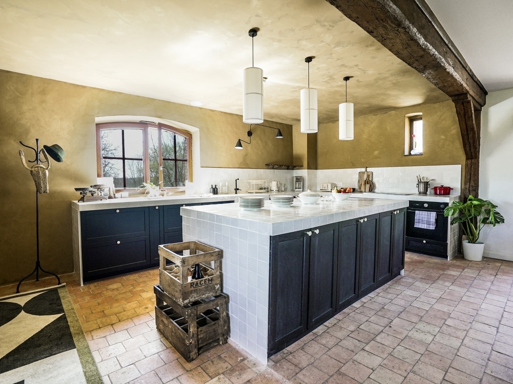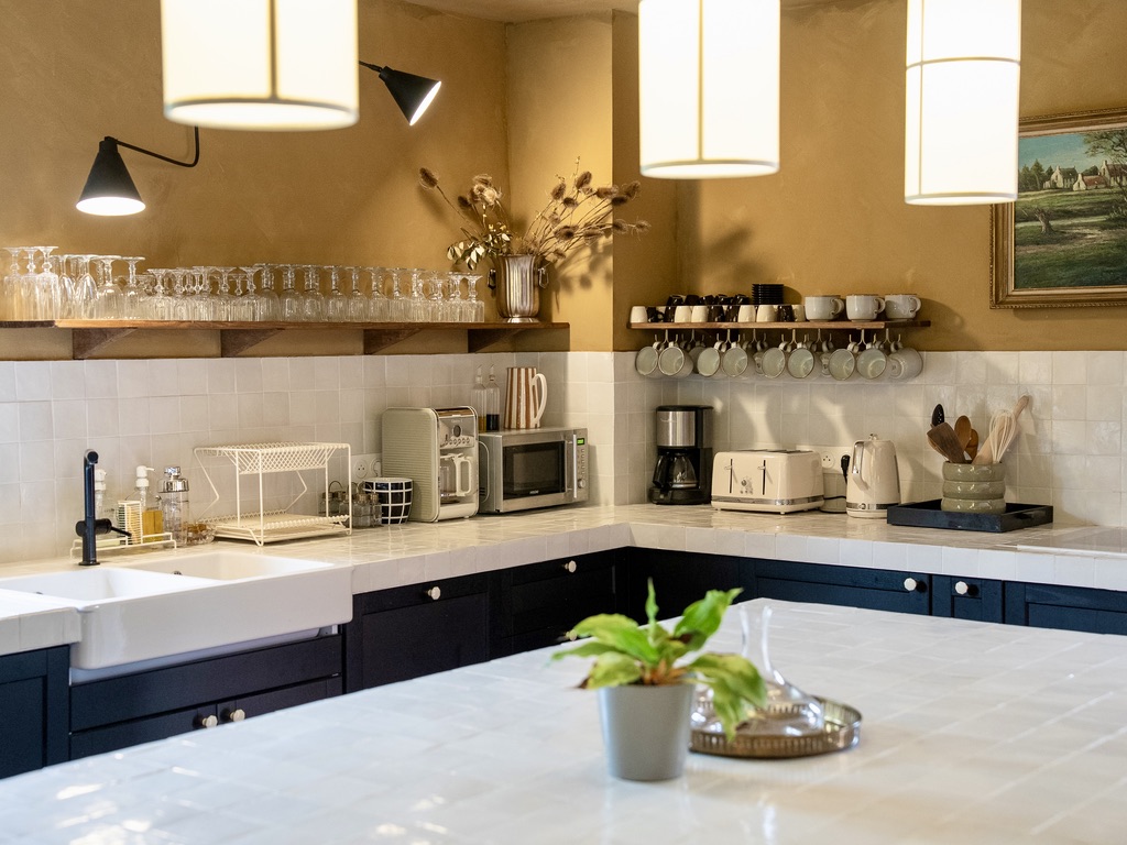 – Cuisine équipée + vaisselle vintage (80 couverts)