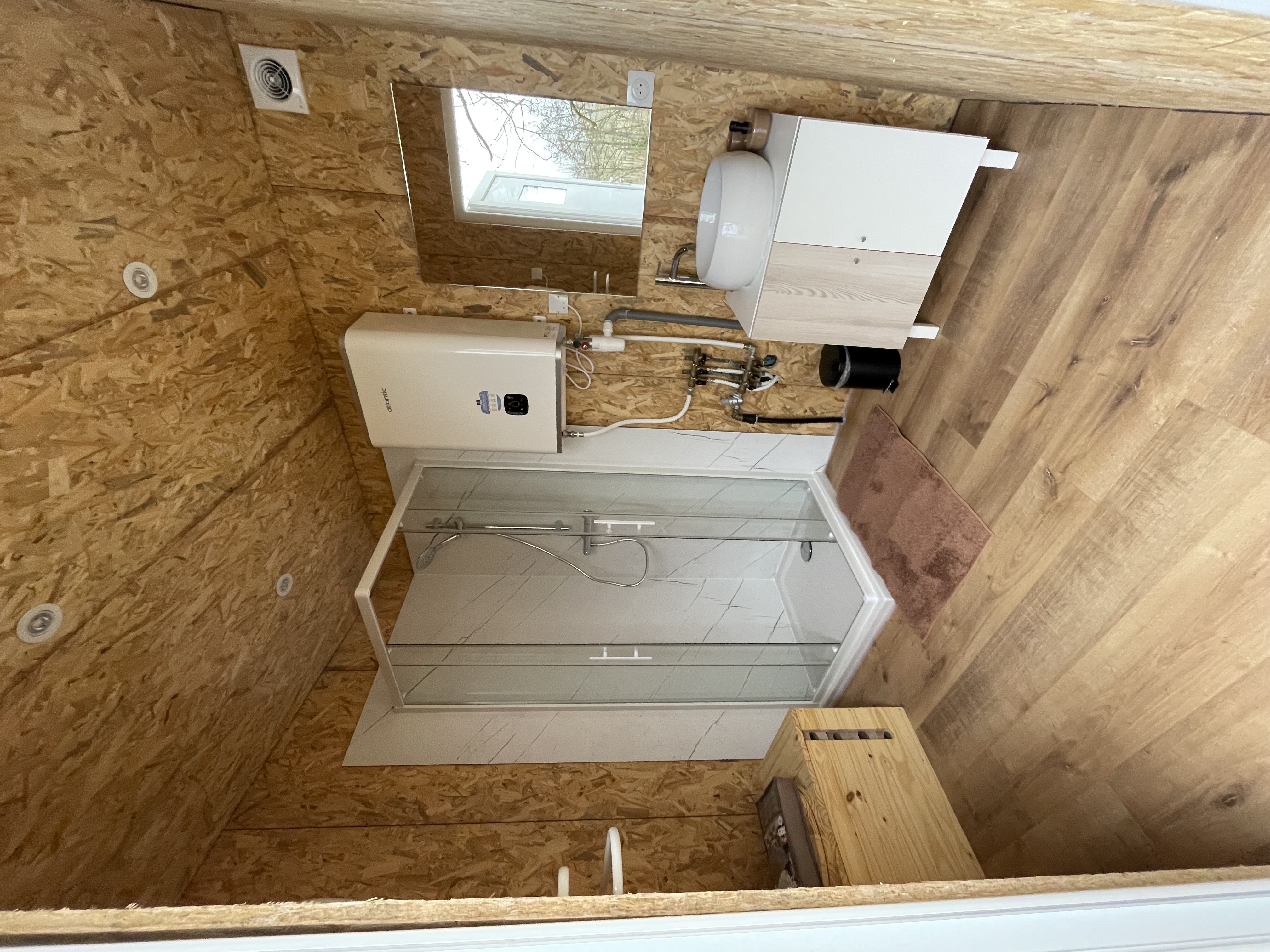 – Une salle de bain annexe au dôme toute équipée avec toilettes sèches écologiques.