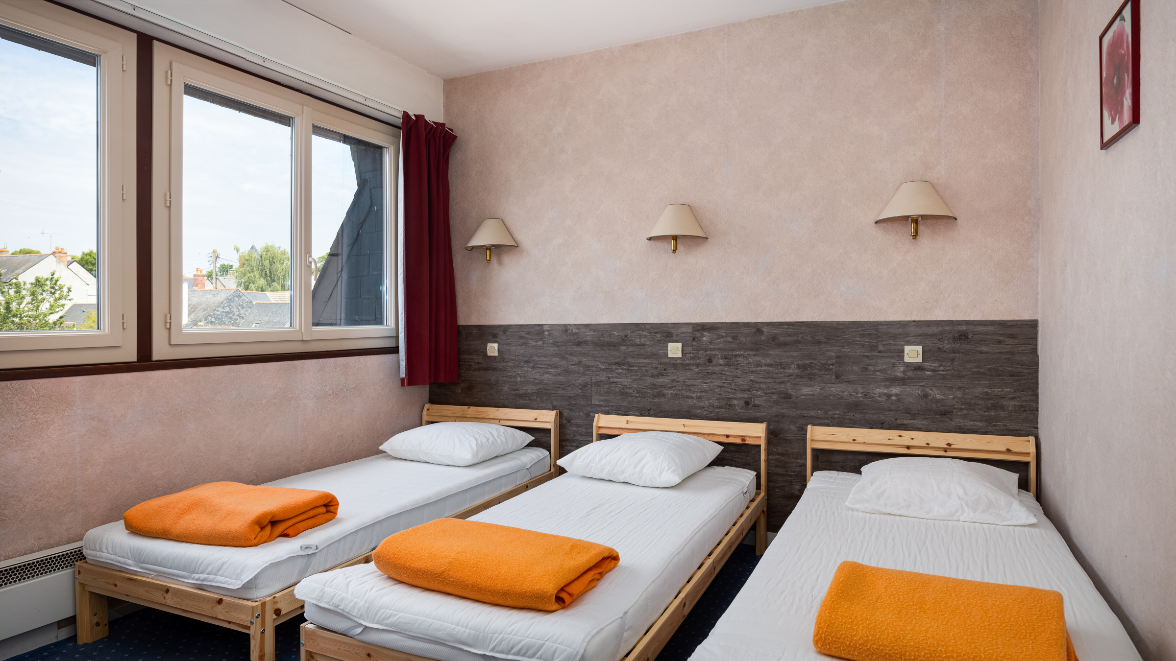 L’hébergement dans les étages pour 74 personnes (25 chambres avec sanitaires privatifs) : plus de 1000m² habitables à votre disposition.