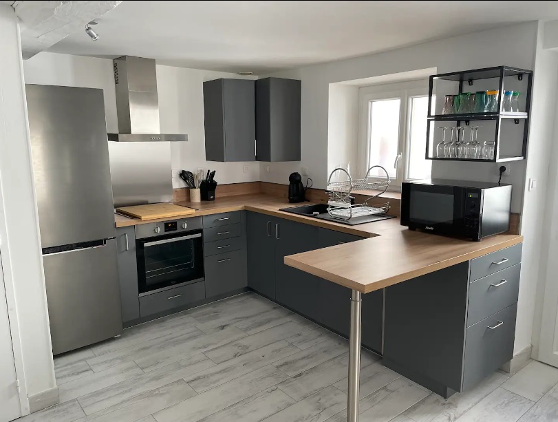 Il comprend un salon avec TV 140cm, disposant d’un canapé convertible de 140×190., salle à manger et cuisine ouverte toute équipée. Une buanderie avec machine à laver séchante. A l’étage, une grande chambre parentale avec un lit 160×200. Une petite chambre avec un lit superposé avec 2 matelas de 90×190. Une salle d’eau avec douche.