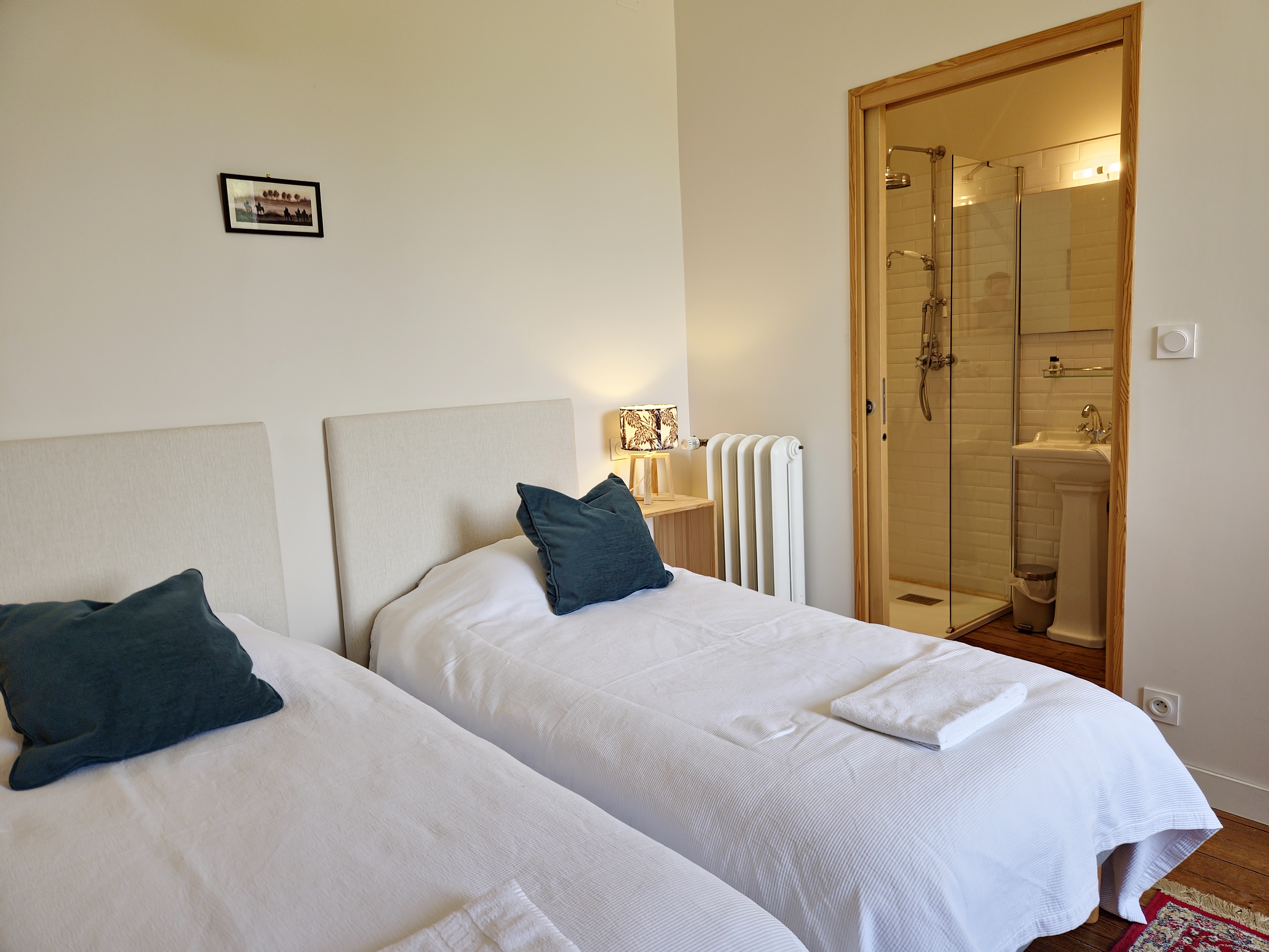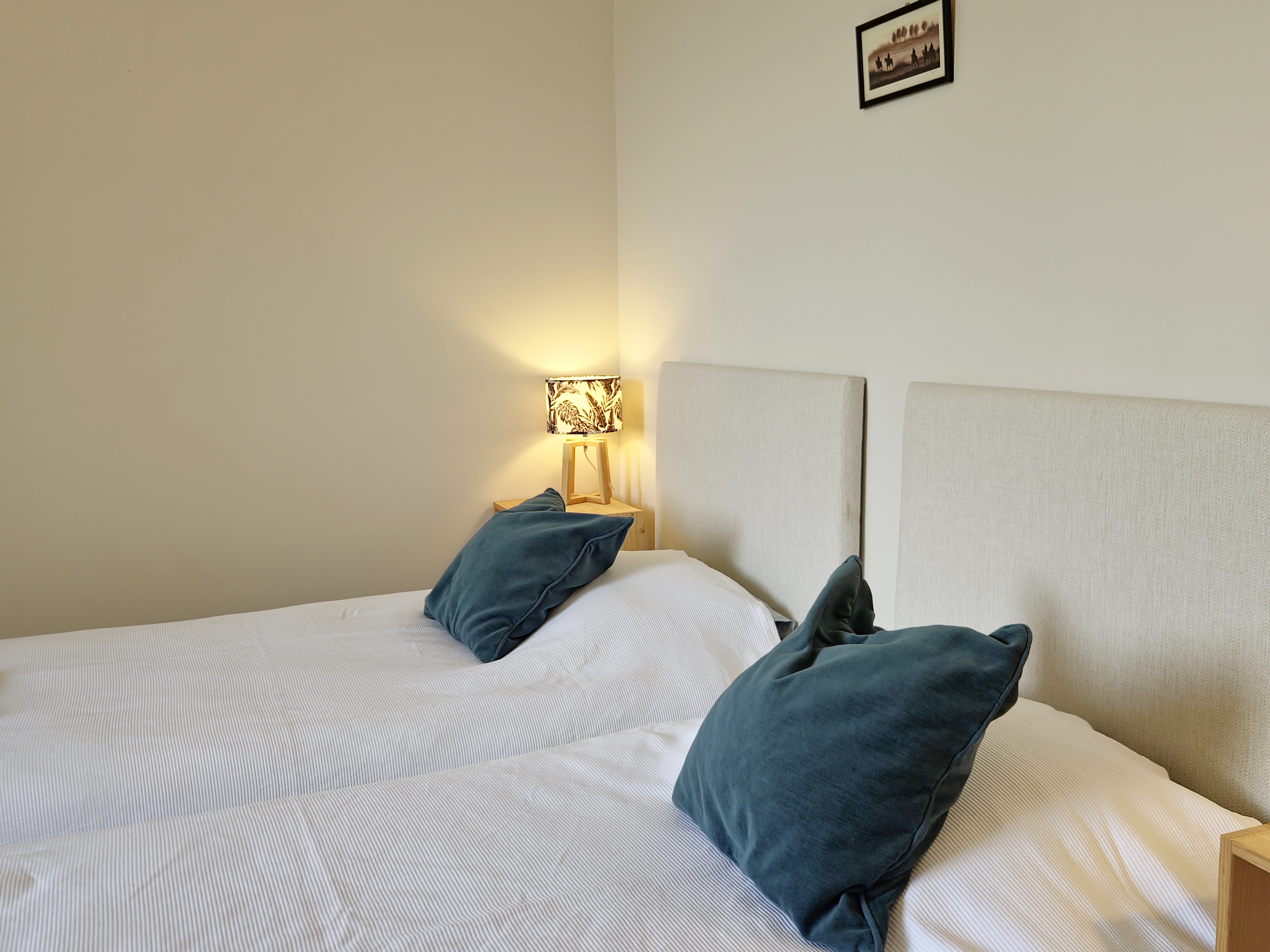 1 chambre avec 2 lits simples; possibilité de très grand lit double en rapprochant les deux lits