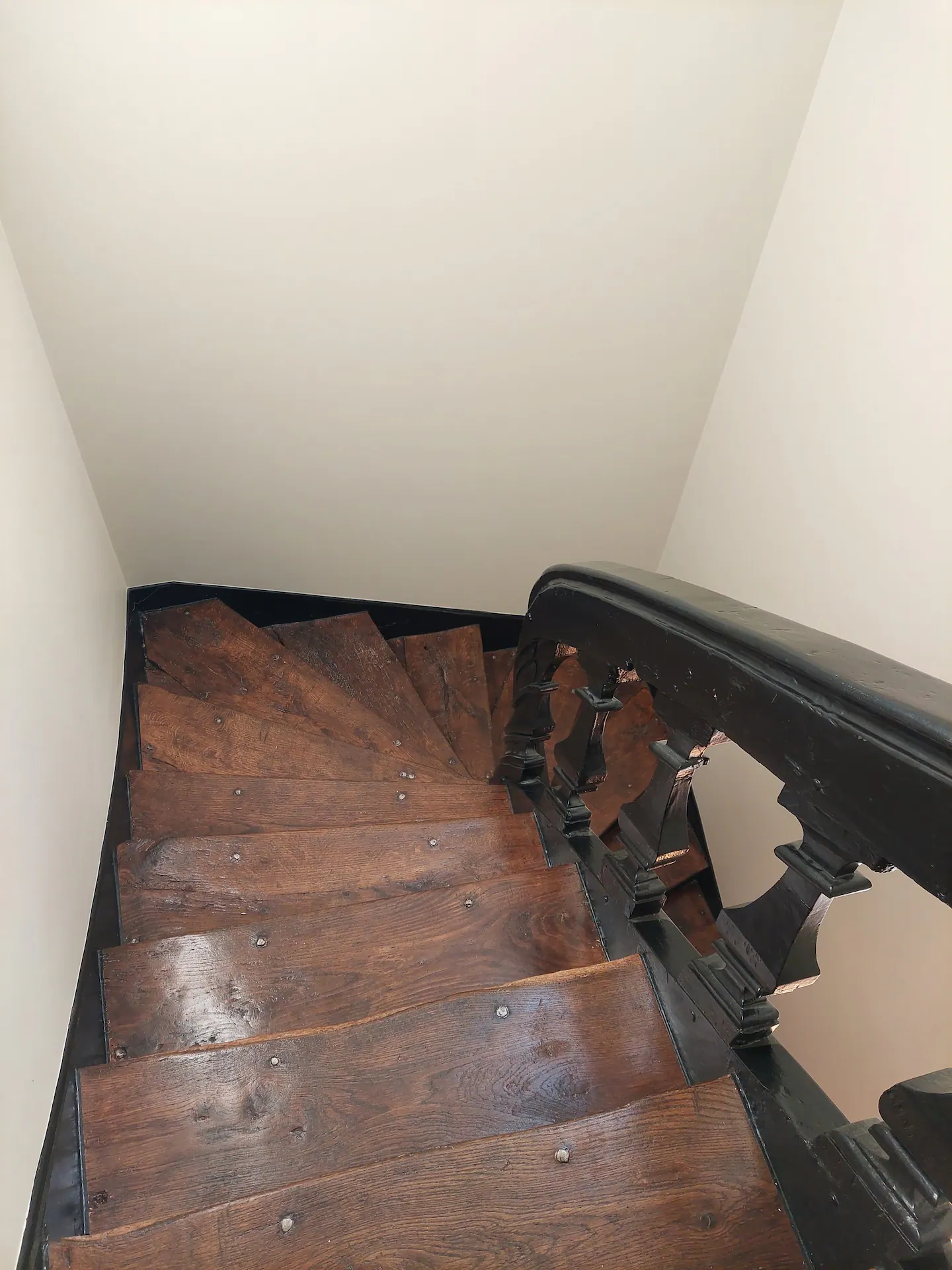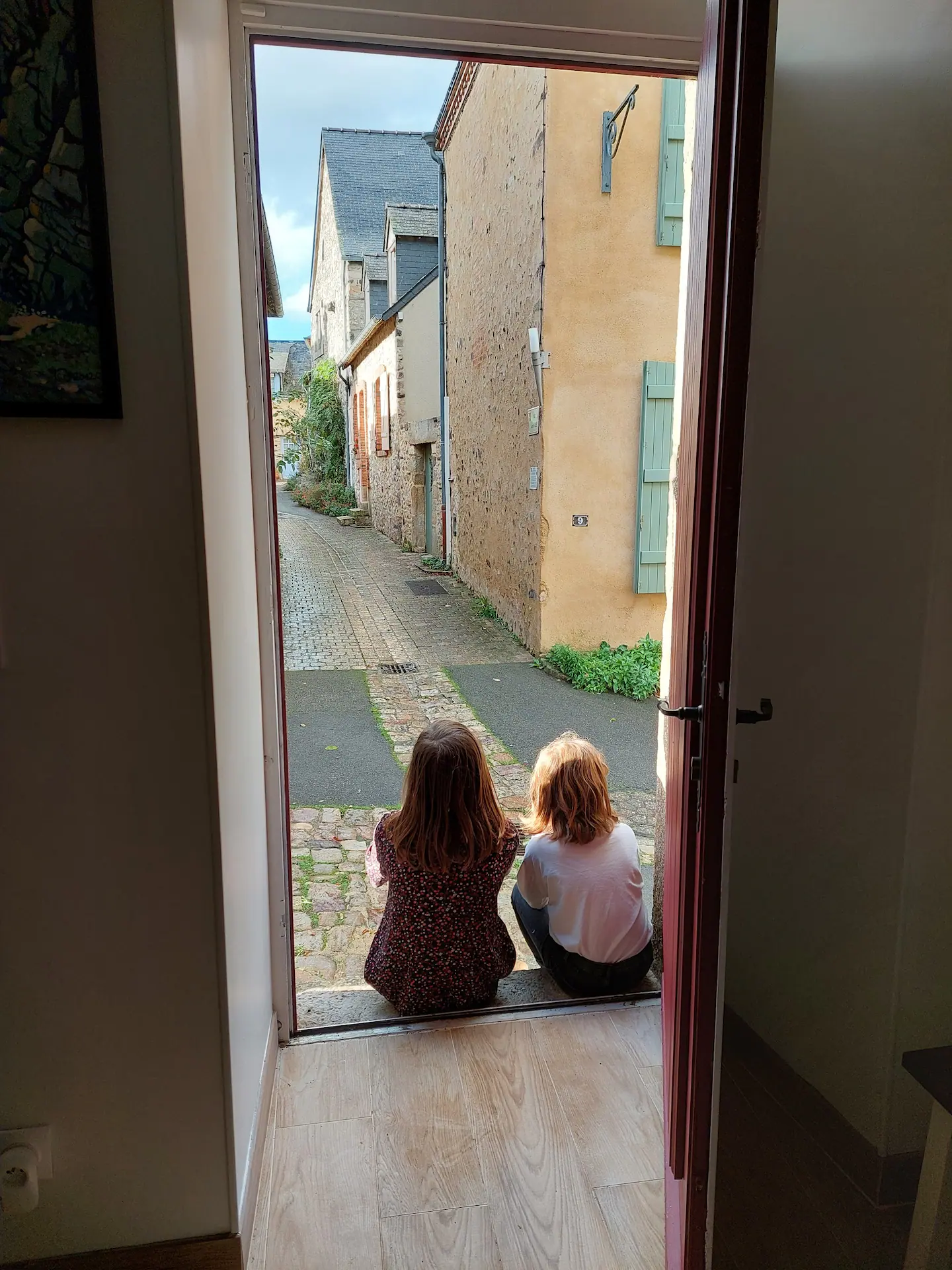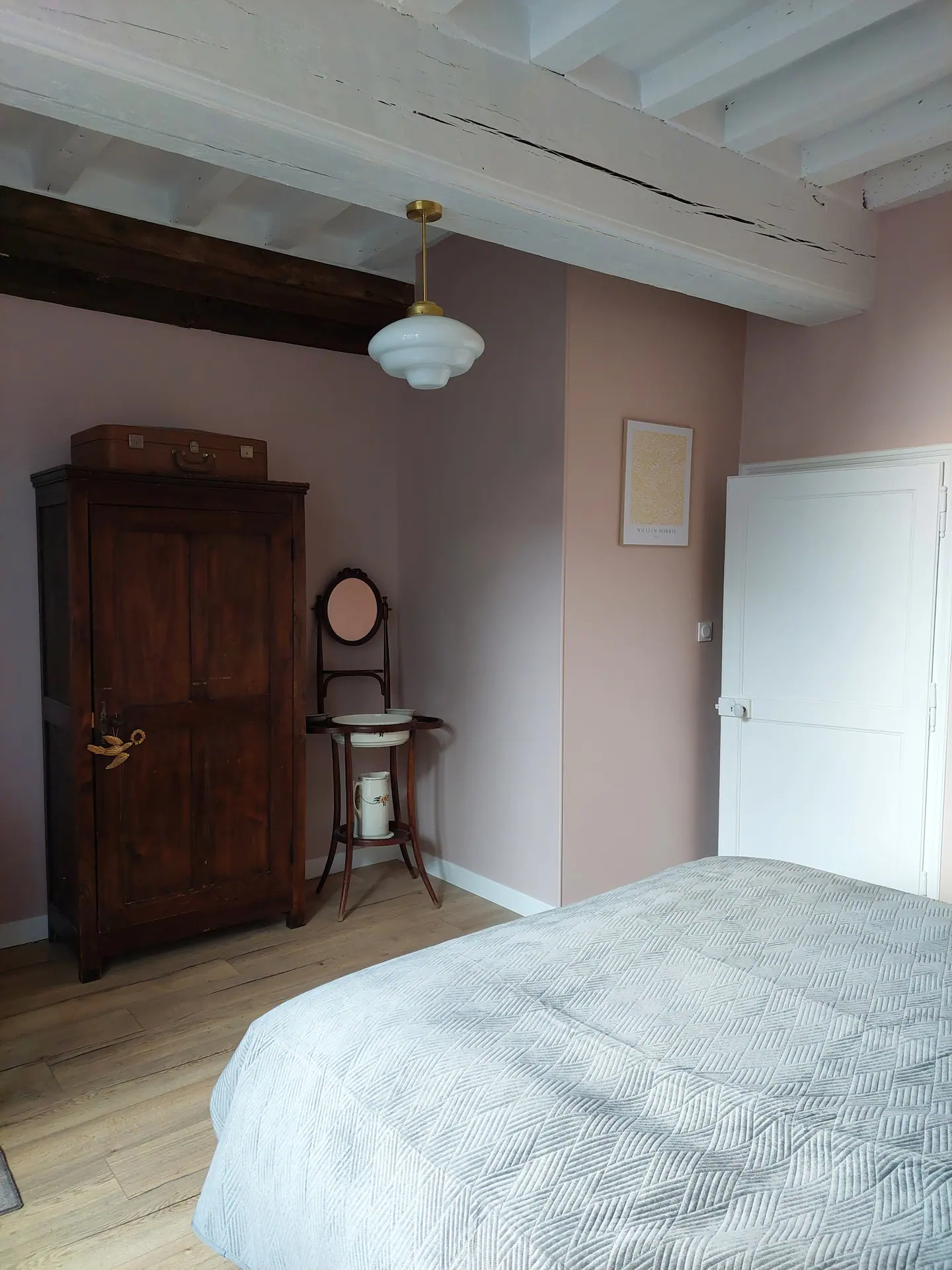 L’escalier du XVème siècle vous mènera à l’étage, où se trouvent deux chambres lumineuses avec lits queen size et une salle de bain avec baignoire.