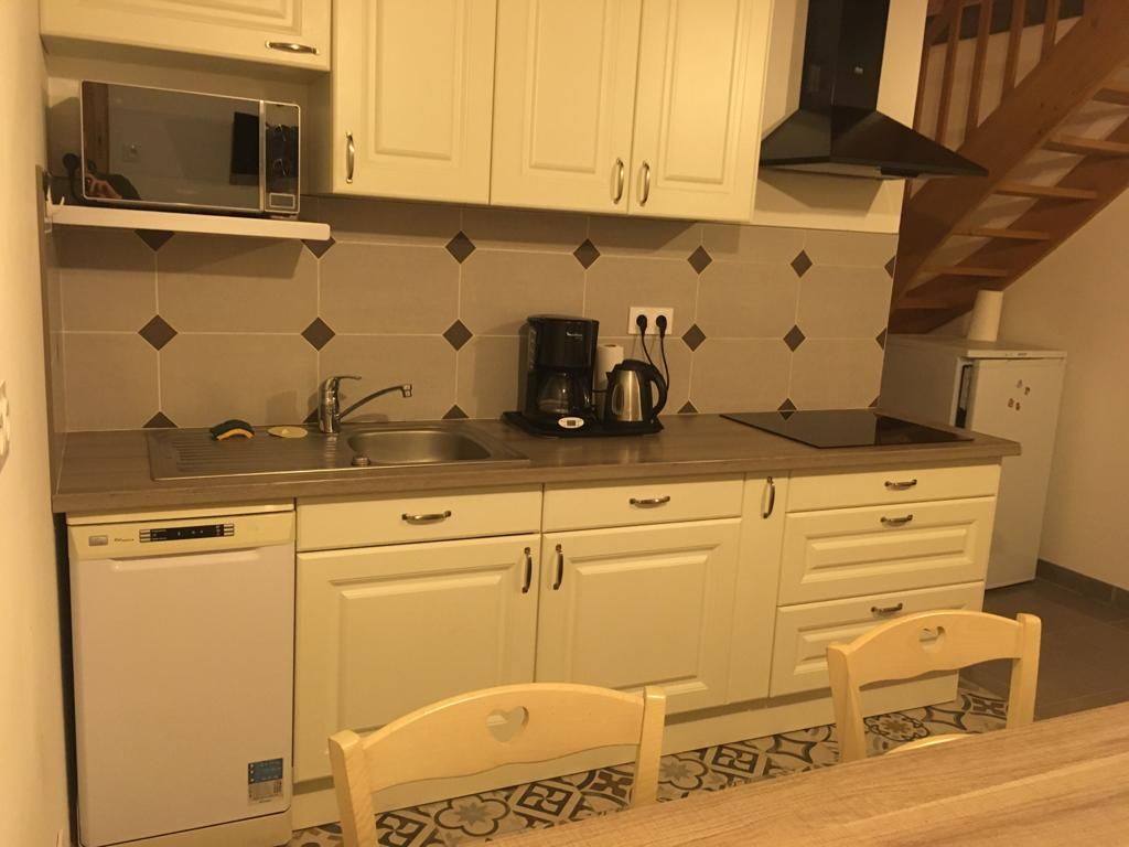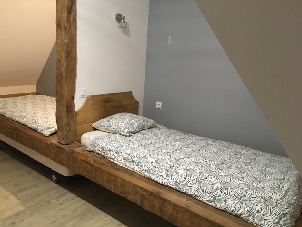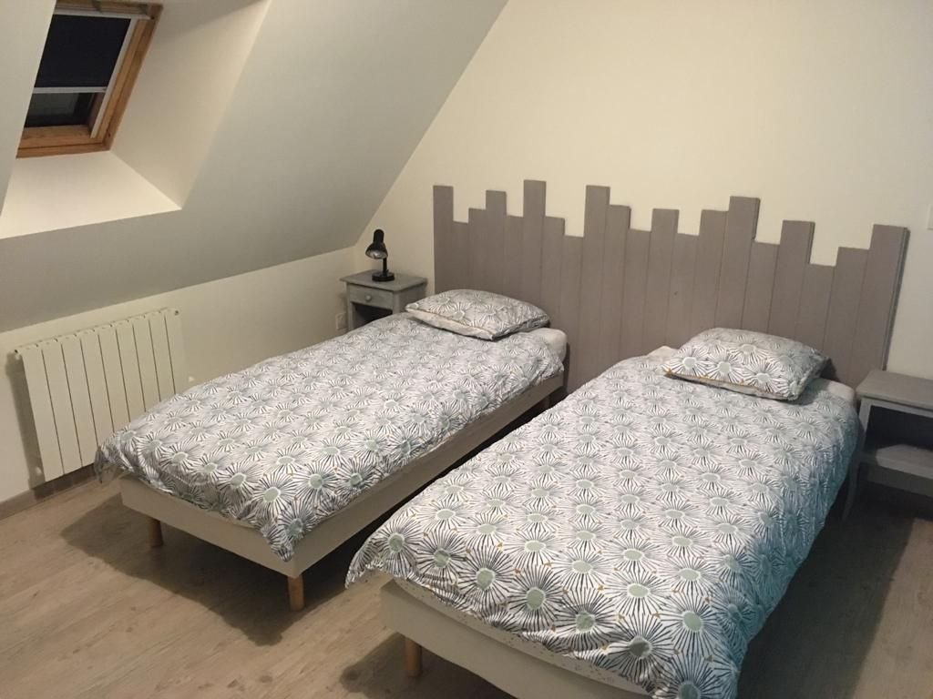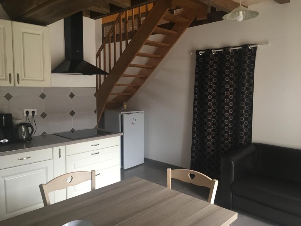 RDC: Pièce de vie avec coin cuisine équipé (LV, micro-ondes, plaques à induction, cafetière), 1 salle d’eau WC. 1er étage: 1 chambre 2 lits 1 pers. + 1 lit tiroir 1 pers et 1 autre chambre avec 2 lits 1 pers. WC. Terrasse, salon de jardin, chaises longues et barbecue. Pêche sur place. Wifi. Lits faits à l’arrivée. Charges comprises.