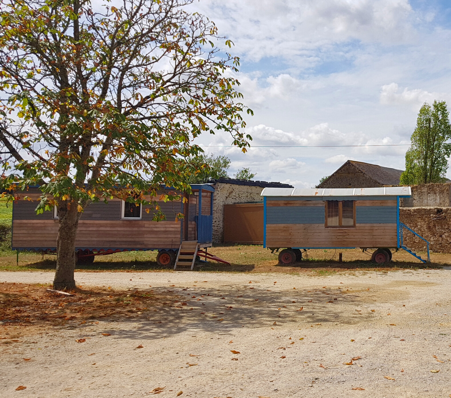 – 2 roulottes mobiles de 6 et 4 couchages : un lit double et un ou deux lits superposés.