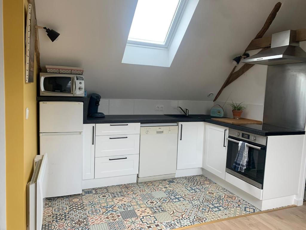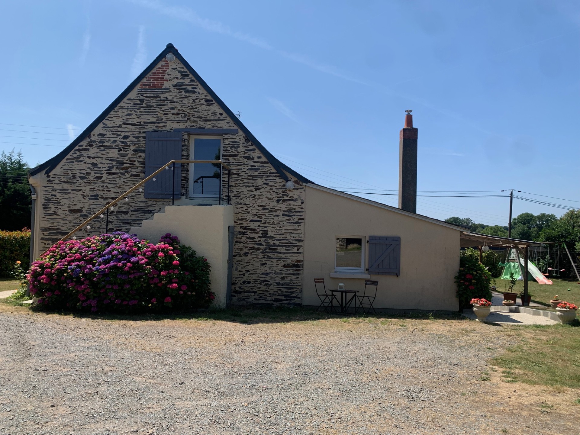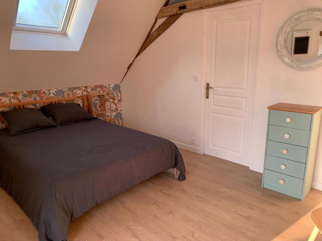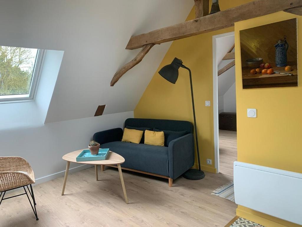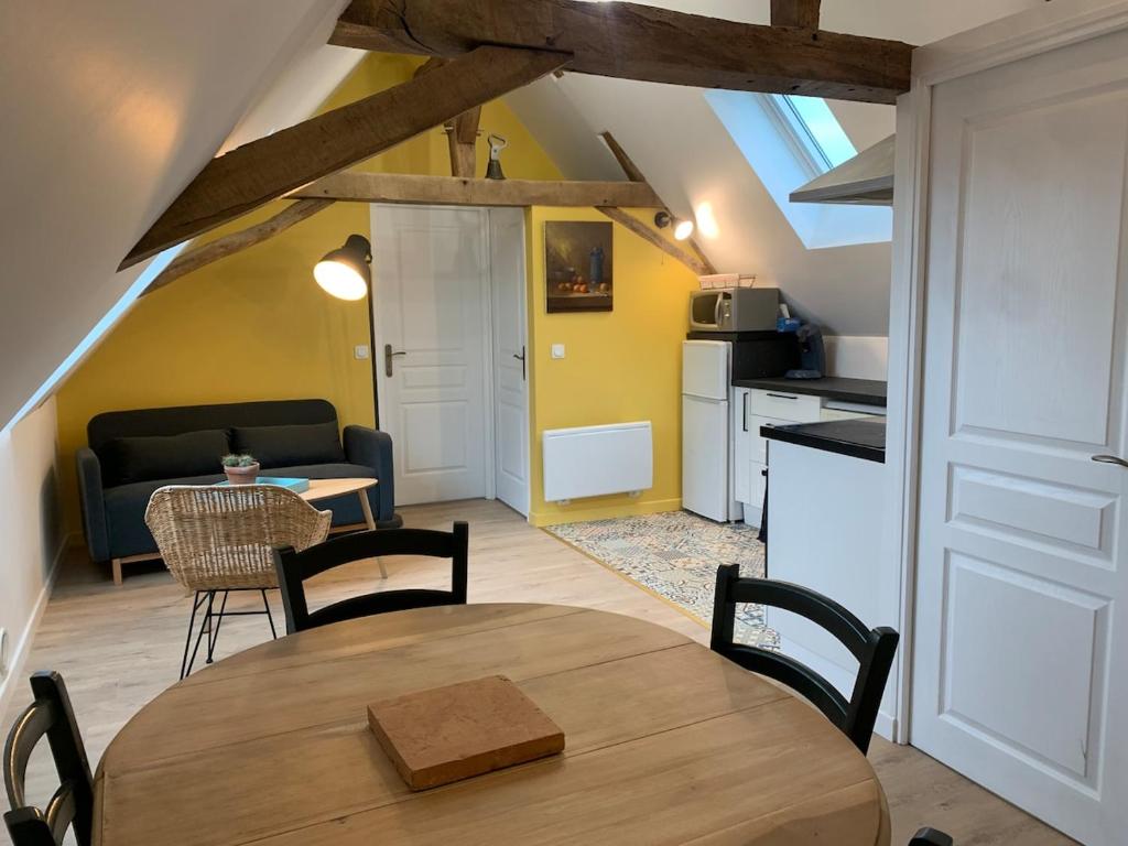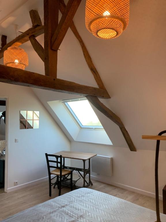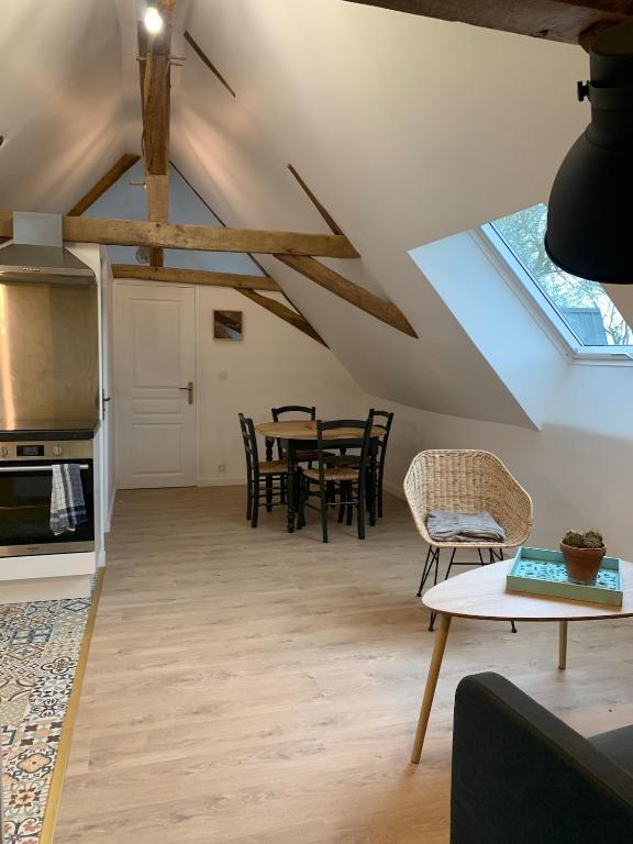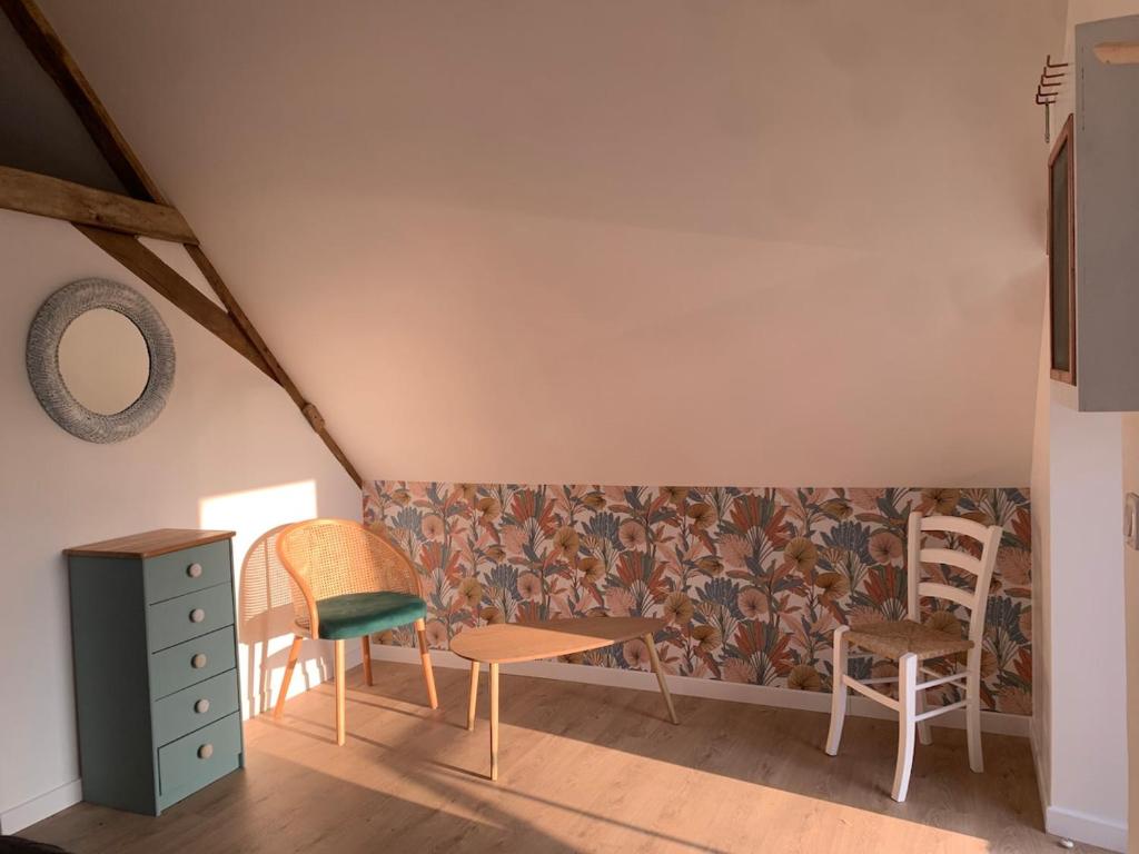 Nous vous accueillons dans notre gite situé à l’étage de notre maison. Il est accessible par un escalier privatif sans ascenseur (non accessible aux personnes équipées d’un fauteuil roulant). Le logement se compose de 2 chambres avec lit double dans chacune, un salon avec cuisine équipée ouverte ainsi que la salle de bain.
