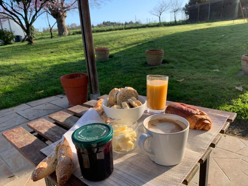 Egalement, Il est possible de prendre notre panier petit déjeuner continental avec pain et confiture maison.