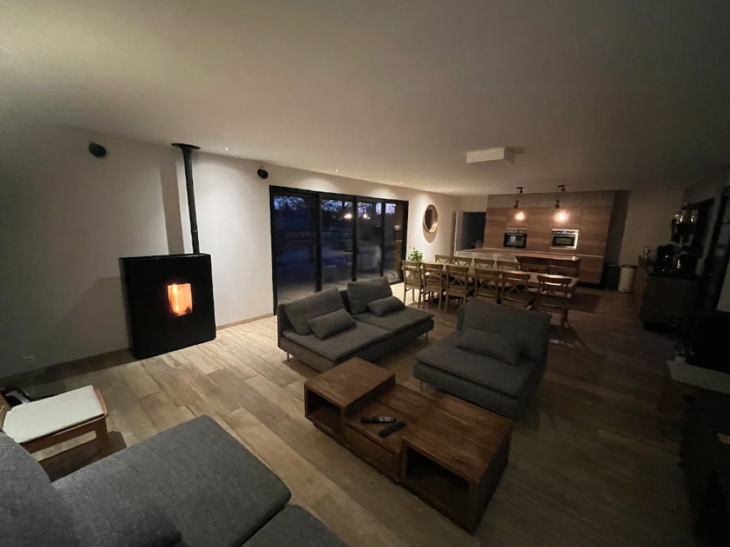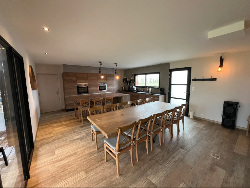 ⁃ Une grande pièce de vie comprenant un salon, un séjour et une cuisine entièrement équipée (réfrigérateur, congélateur, four, micro-ondes, lave vaisselles, machine à café…).