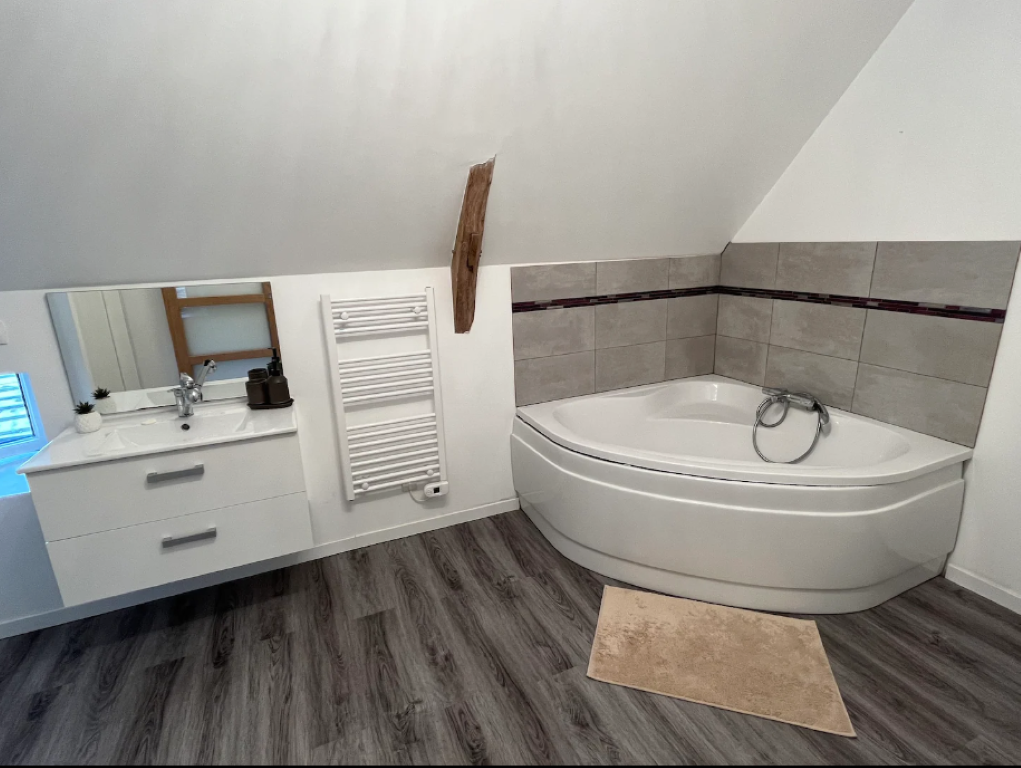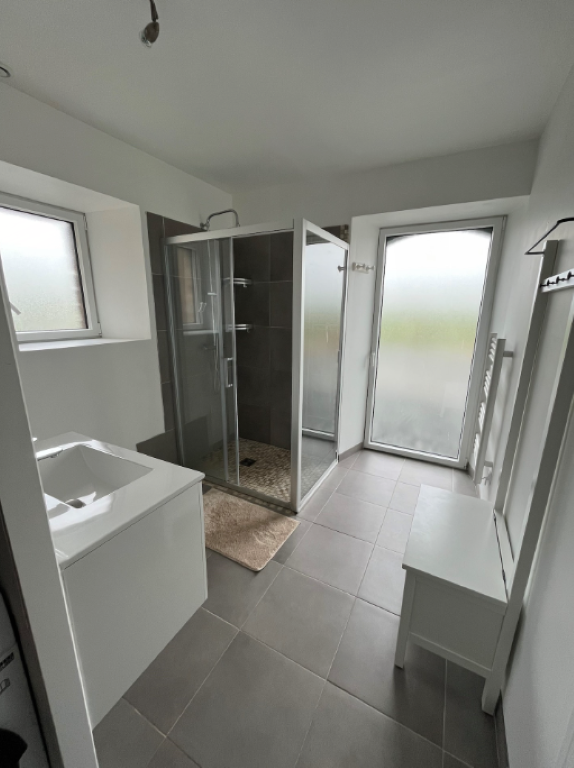 ⁃ Une salle de bain équipée d’une douche balnéo.