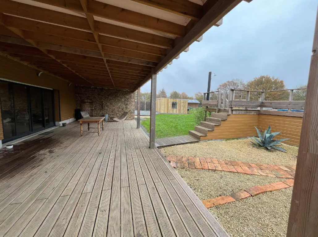 Vous disposerez également d’une superbe terrasse idéale pour accueillir de grands repas en famille ou entre amis. Cette dernière donne accès au jardin de 3000m2 équipé d’une piscine hors sol (disponible en période estivale) qui vous permettra de passer de jolis moments de détentes.