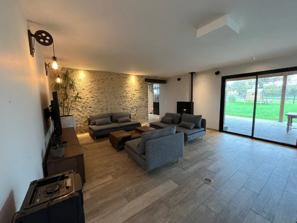 ⁃ Une grande entrée où vous pourrez aisément déposer vos affaires et vous installez confortablement. Un coin jeu est disponible pour les grands et les petits (second coin télé, console, babyfoot, jeux d’intérieur…).