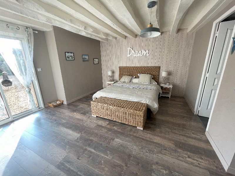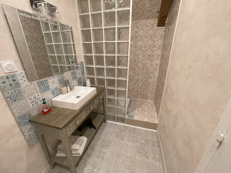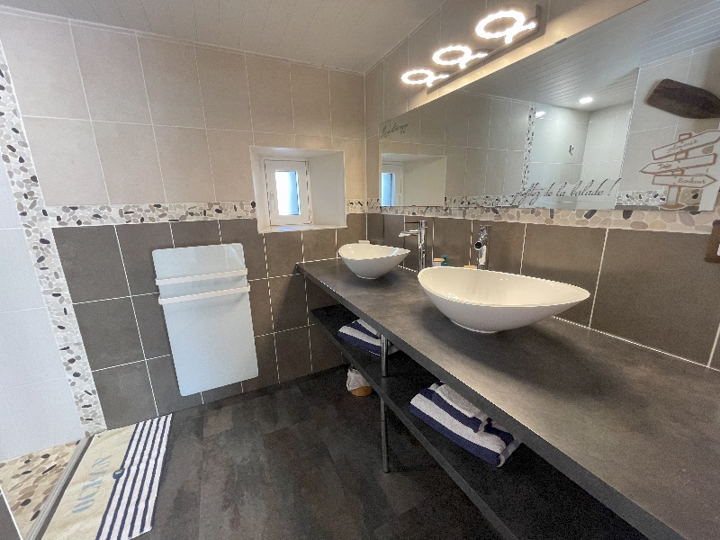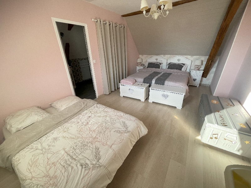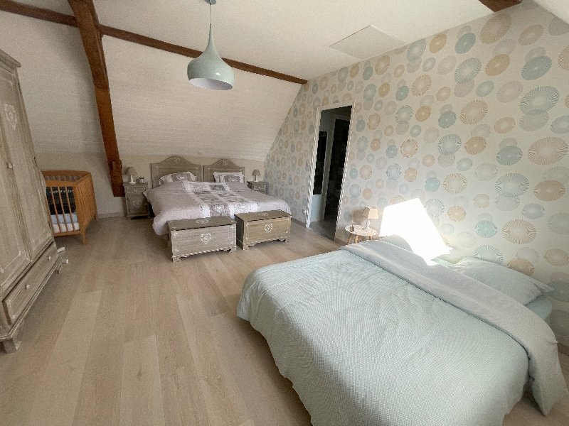 A l’étage, deux autres belles chambres de 22 m2 comprenant chacune de deux lits de 90 et un canapé-lit deux places, deux salles de bain indépendantes dont une avec baignoire, toilettes indépendants.