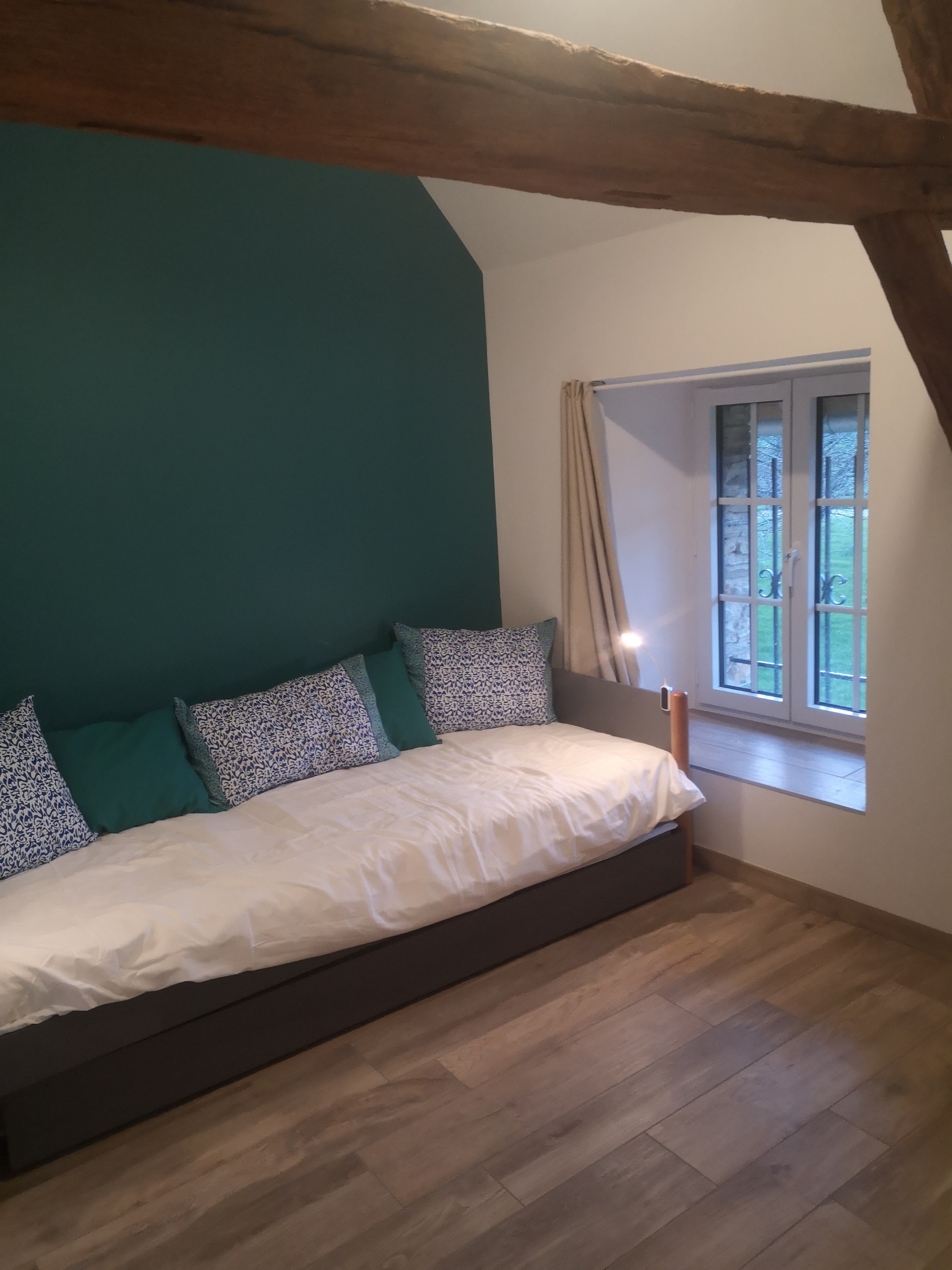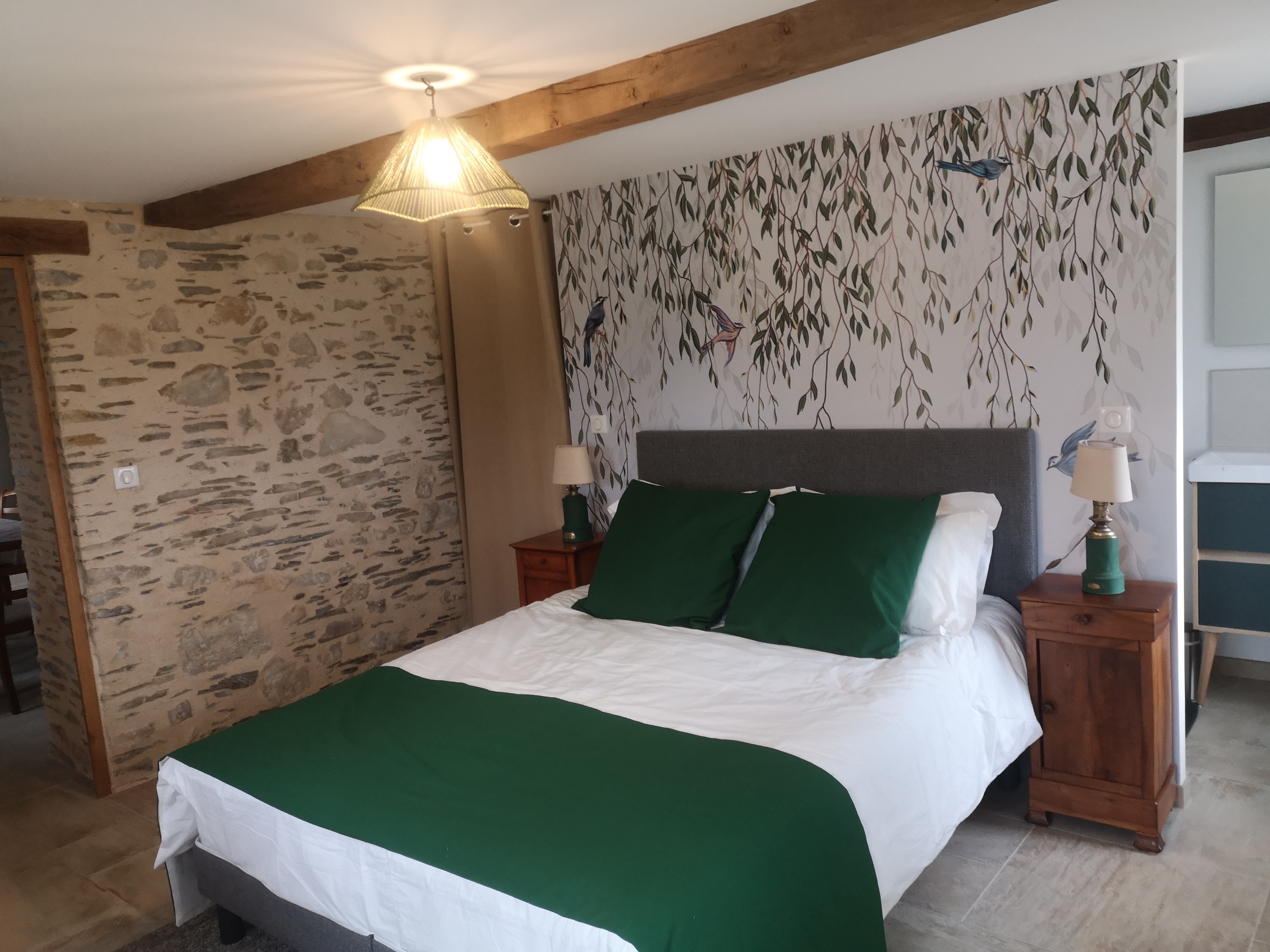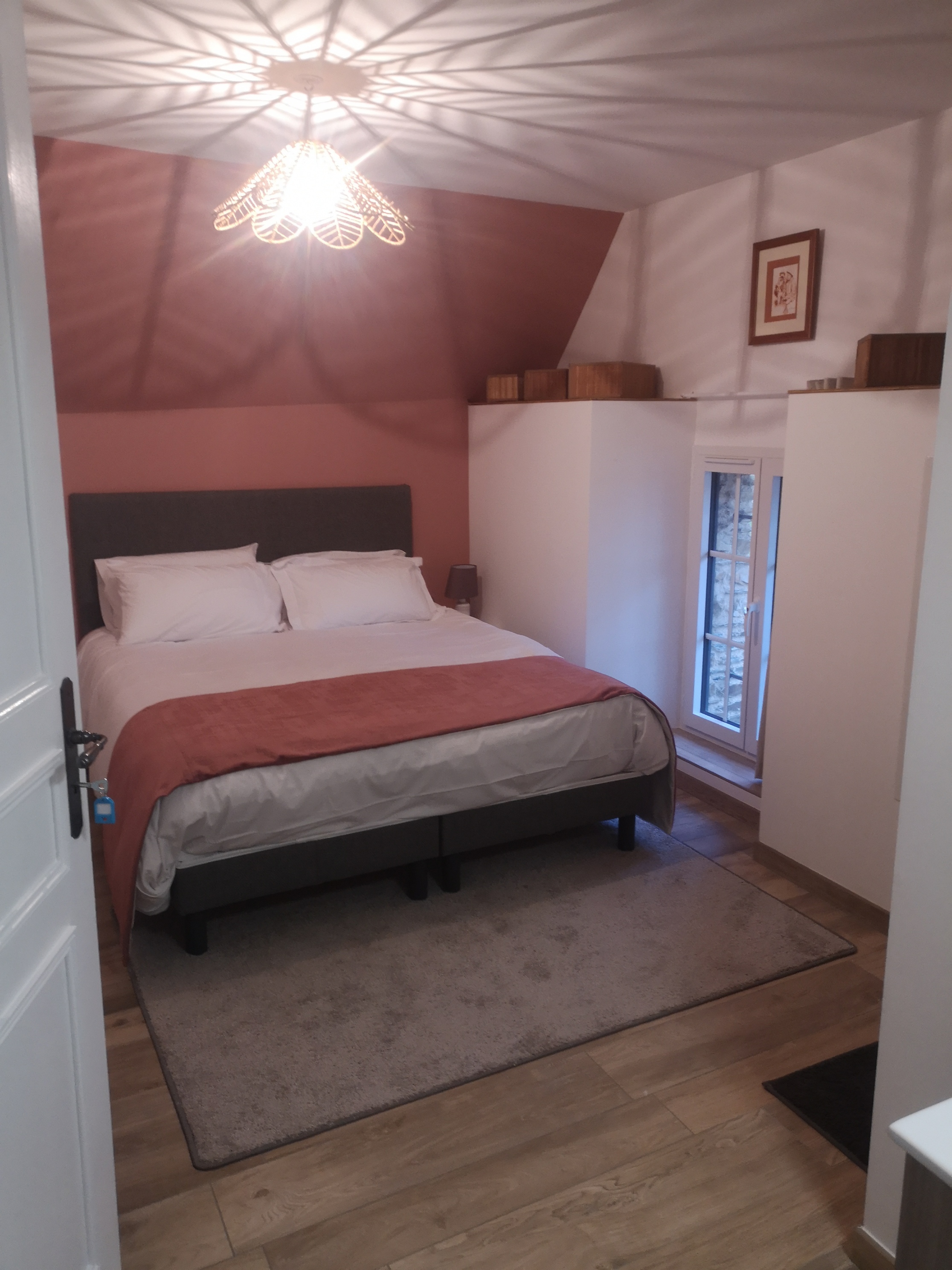La suite du au rez-de-chaussée permet d’accueillir une personne à mobilité réduite. Une petite marche (moins de 10 centimètres permet d’accéder au logement)