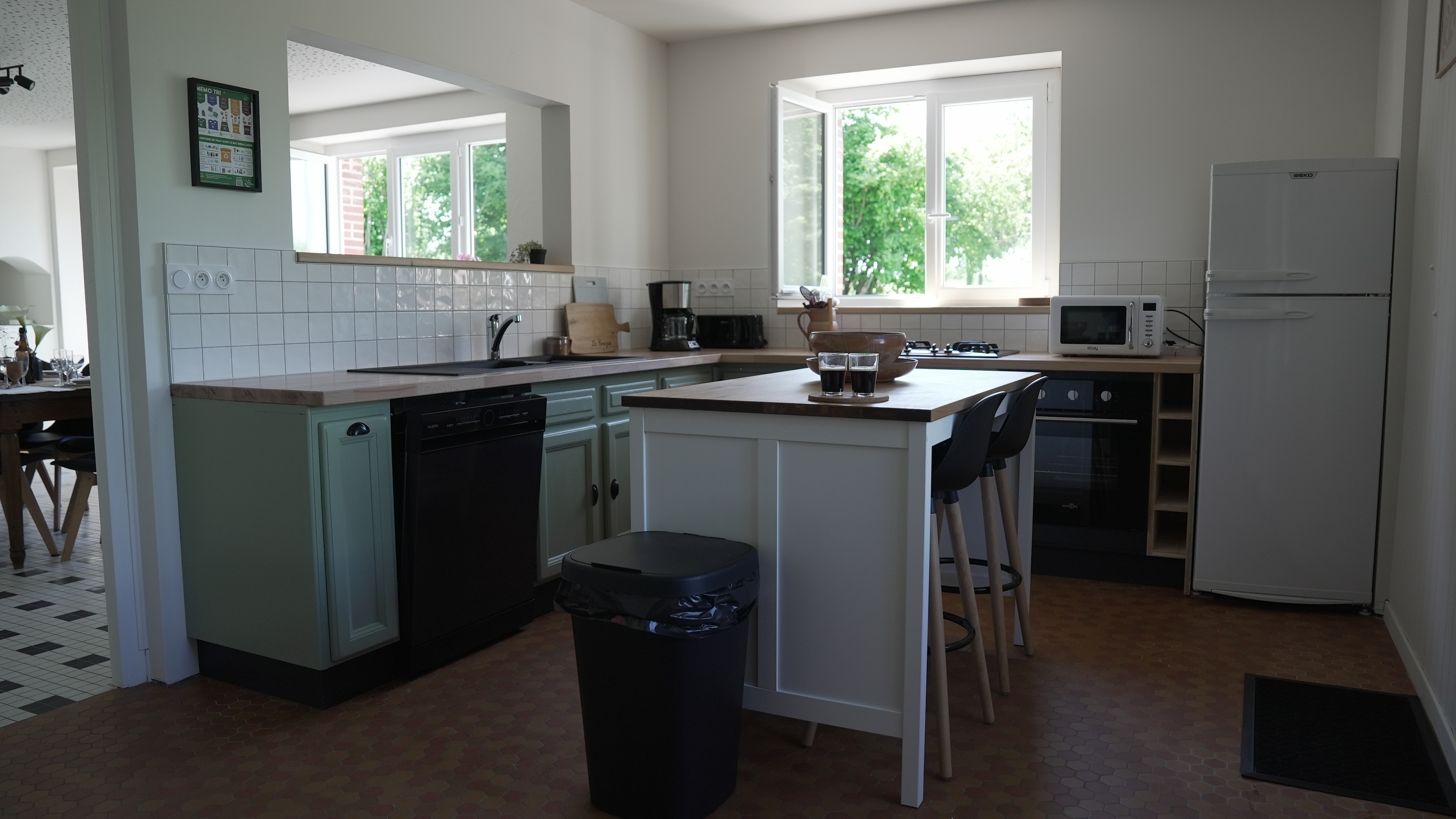 Pour les amateurs de bons repas, une cuisine entièrement équipée est à votre disposition : plaques de cuisson, four, réfrigérateur, lave-vaisselle, micro-ondes, cafetière et bouilloire, vaisselle et ustensiles en quantité suffisante.
