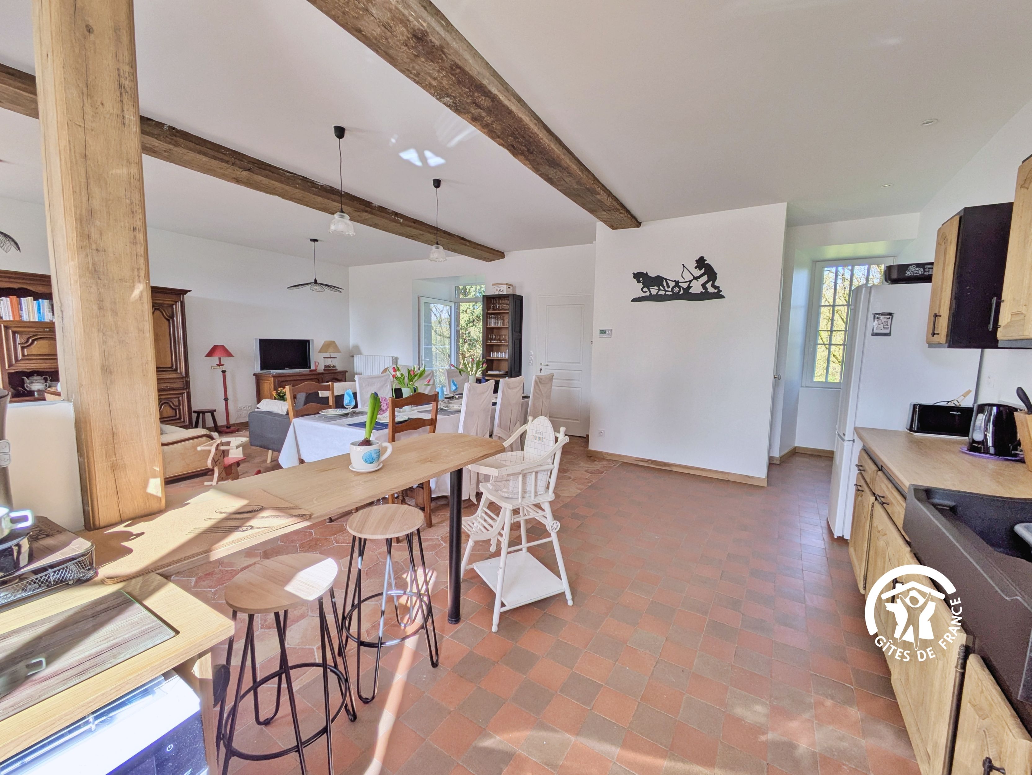 Ce fut la demeure du Seigneur l’Escureuil en 1404 ! Cette belle maison de maître est maintenant une maison de vacances comme on les aime : un jardin protégé par de hauts murs, une vaste pelouse pour les parties de ballon, le bois pour se cacher et faire des cabanes et descendre au bord de la rivière l’Orthe… Le local pour les parties de ping-pong, les raquettes, boules, palets… 4 chambres, 5 lits complétés par un canapé convertible permettent d’accueillir une grande famille.