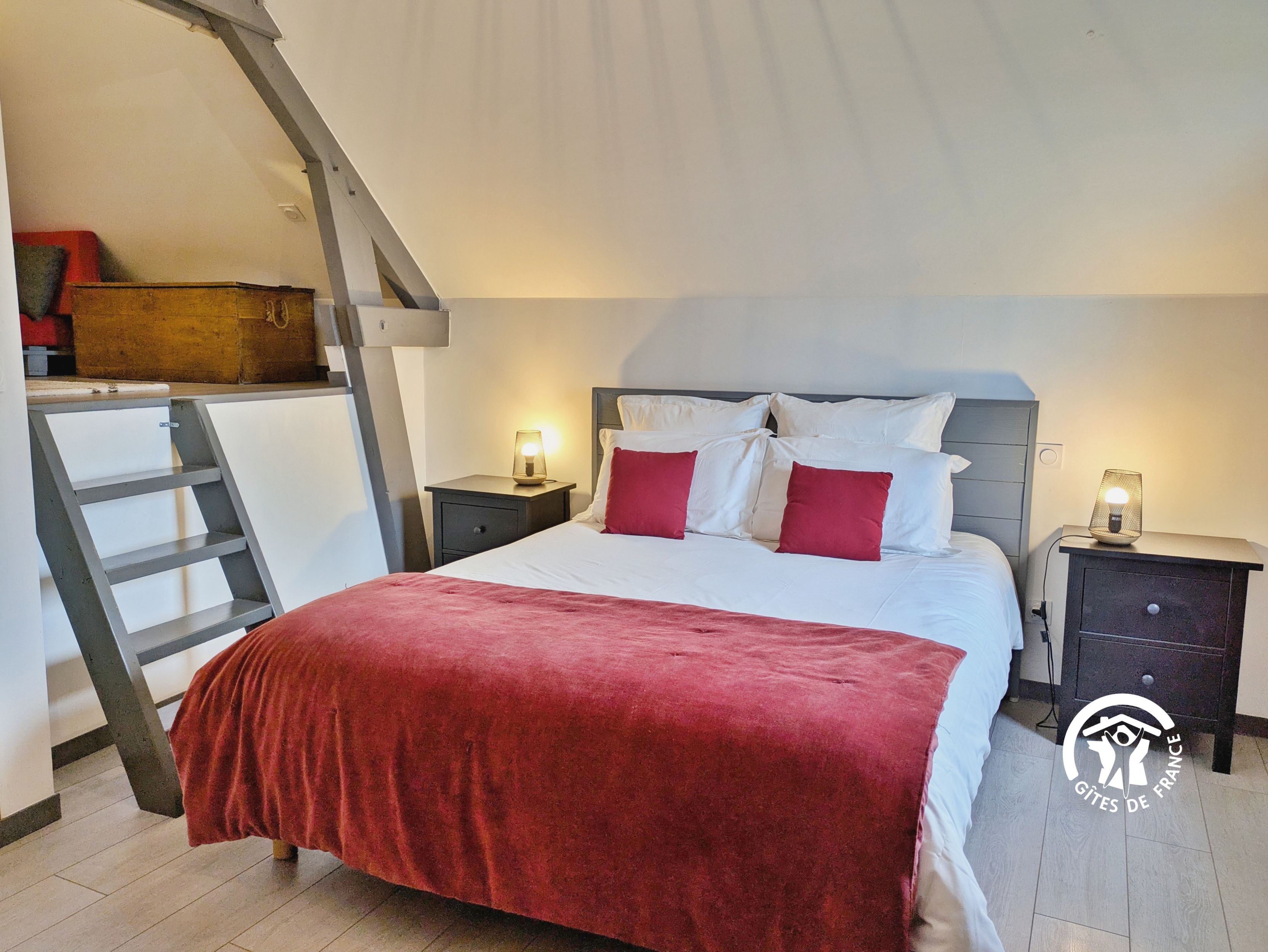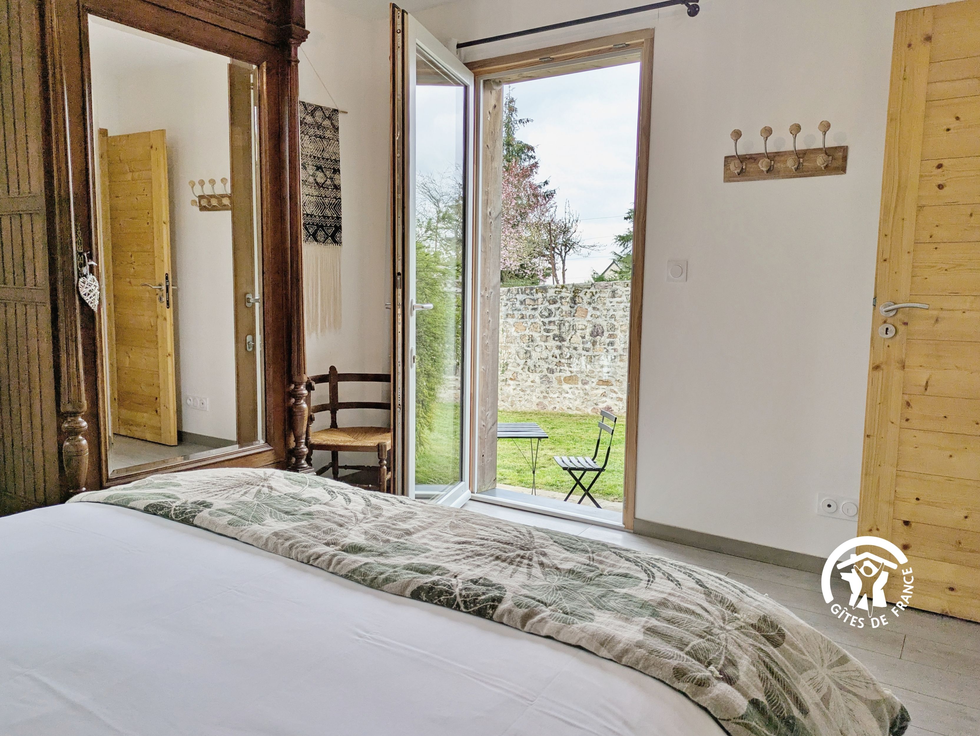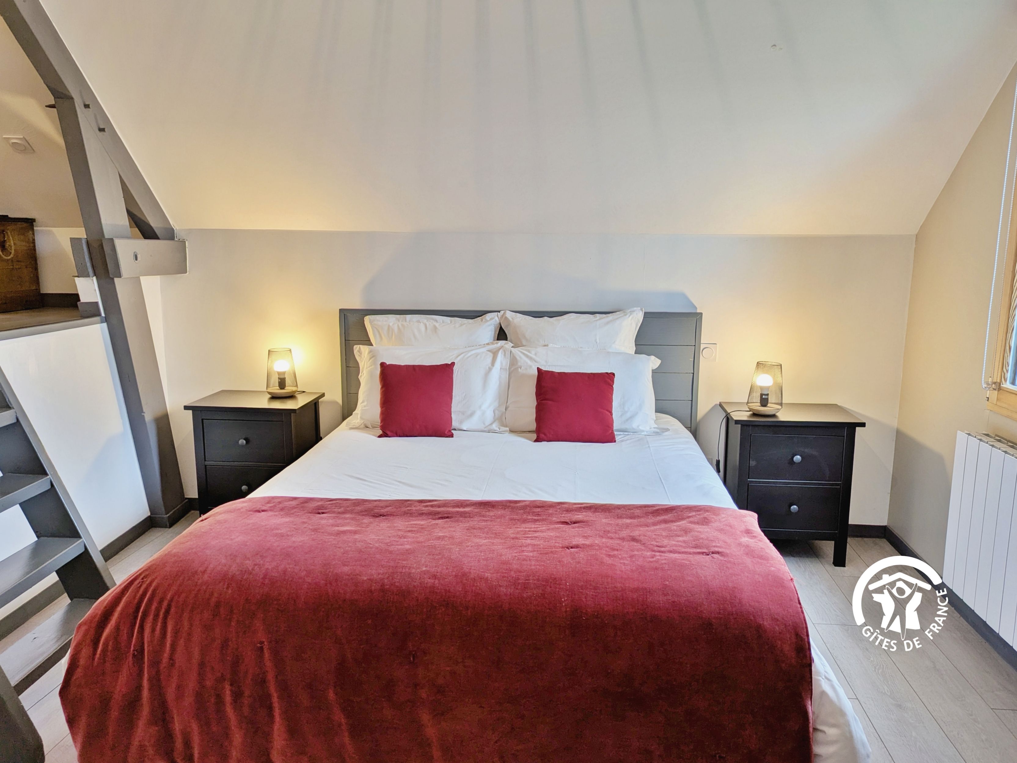 À noter : le gîte est situé à l’angle de la place Ambroise de Loré, en bordure de la route départementale 7, à seulement 60 mètres de la zone piétonne du bourg et à 80 mètres de la promenade de la poterne.