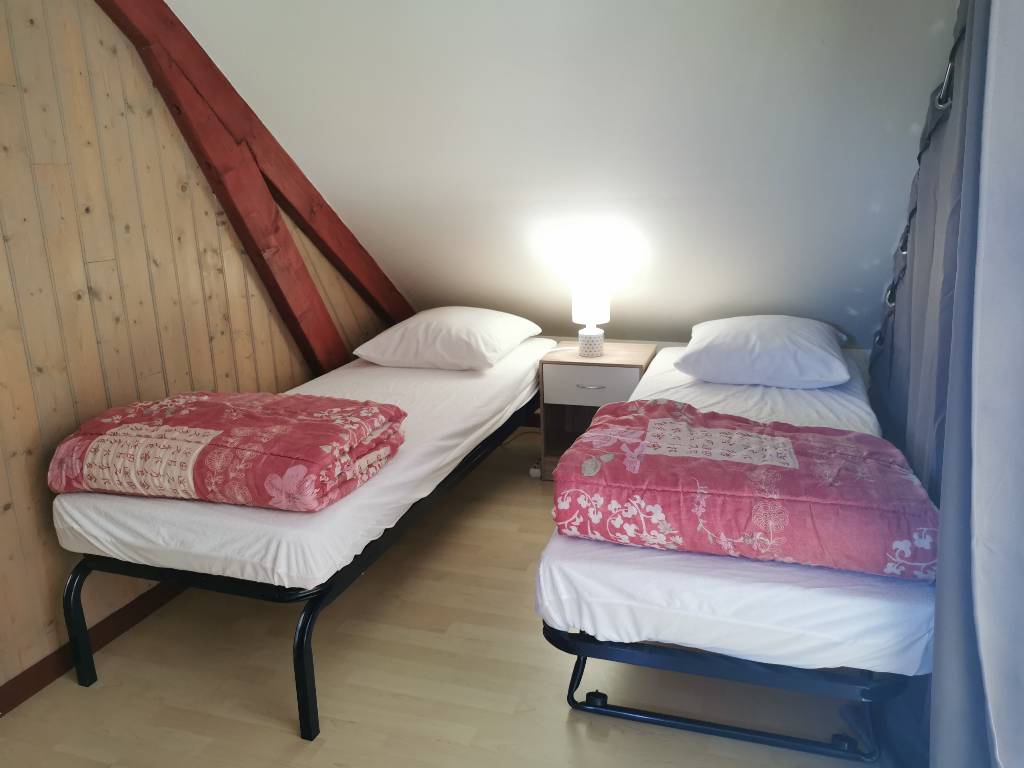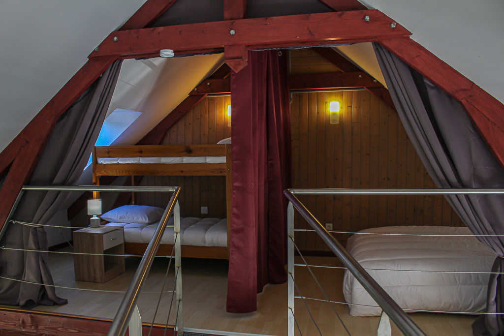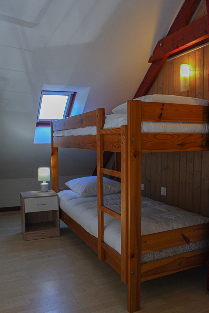– une salle avec mezzanine dans laquelle sont disposés 1 lit gigogne 2x70x190cm et 1 lit superposé 90x190cm,