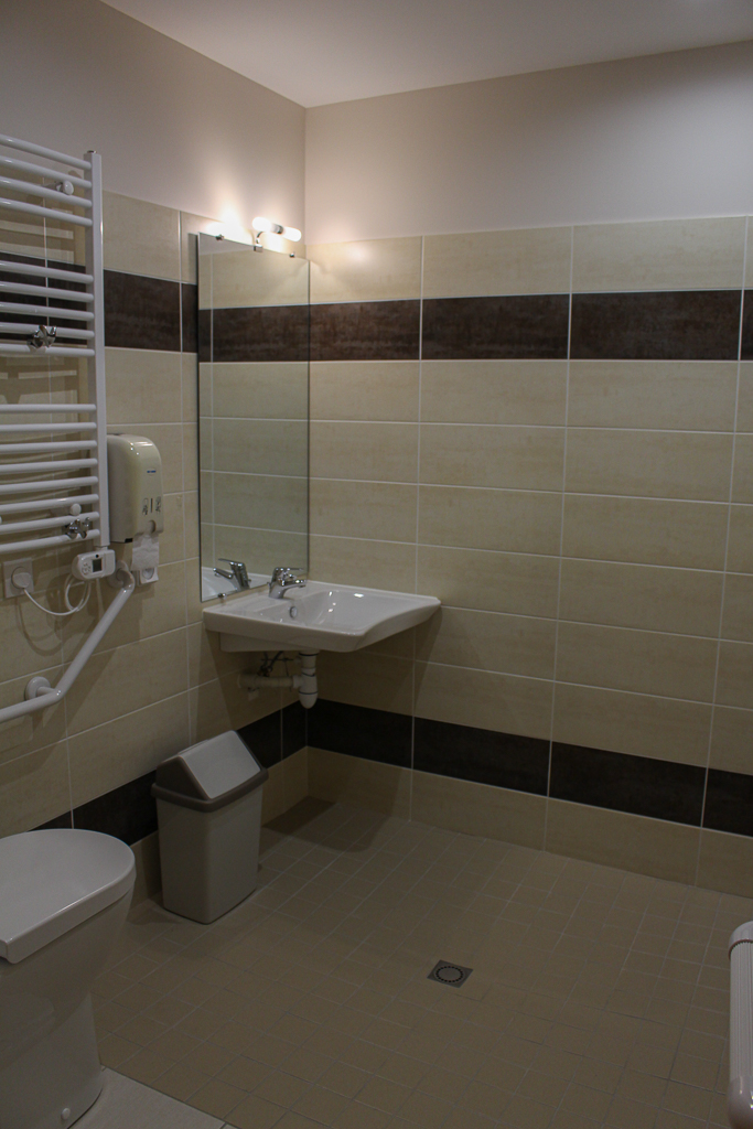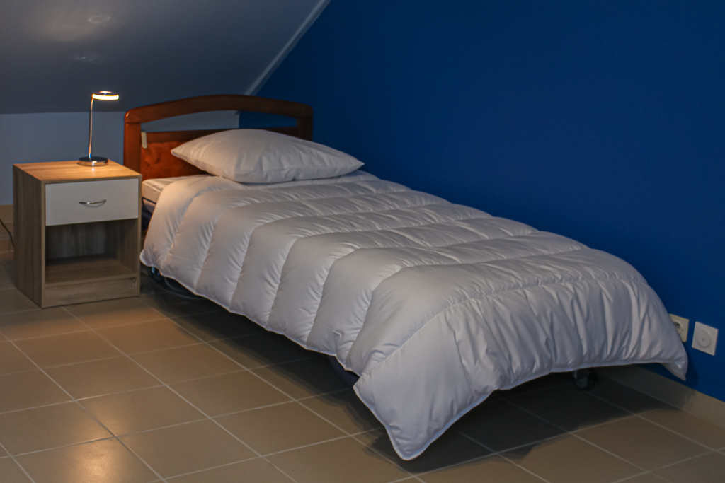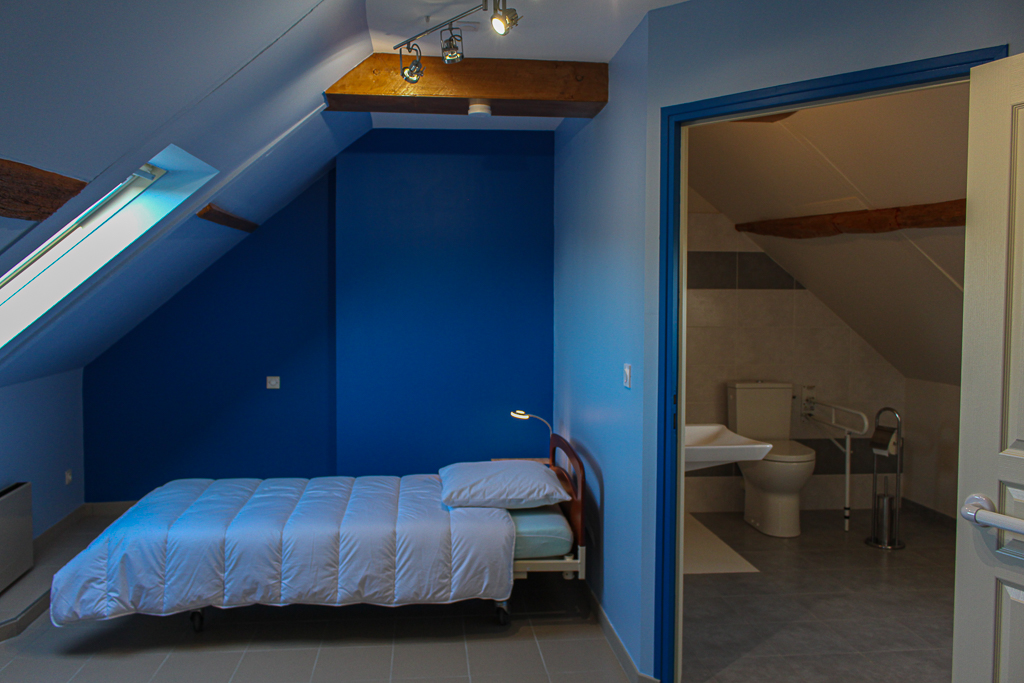 – une chambre avec 1 lit électrique médicalisé double sommier 2x70x200cm et salle d’eau-wc privative attenante aux normes PMR,