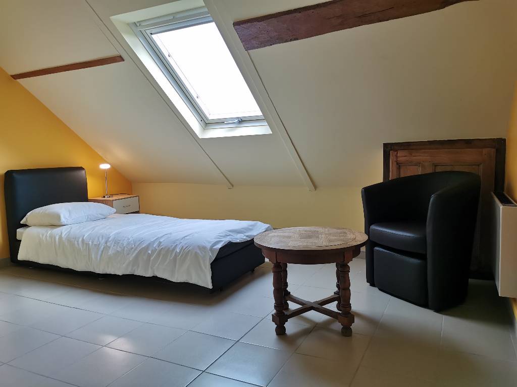 – une mezzanine avec 1 fauteuil convertible à lattes équipé d’un matelas 80x200cm. Il s’agit d’un très bon couchage avec un bon matelas et non un matelas fin pour lit pliant.