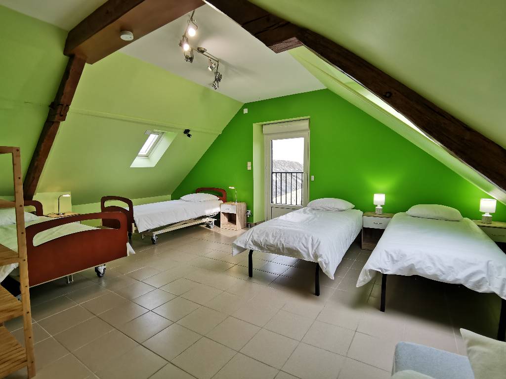– deux chambres ayant chacune une salle d’eau-wc privative attenante aux normes PMR (l’une dispose de 2 lits simples électriques médicalisés (90x200cm) et 1 lit simple (80x190cm), l’autre dispose d’un lit gigogne (2x80x190cm) et de 3 lits simples à assistance électrique (90x200cm),