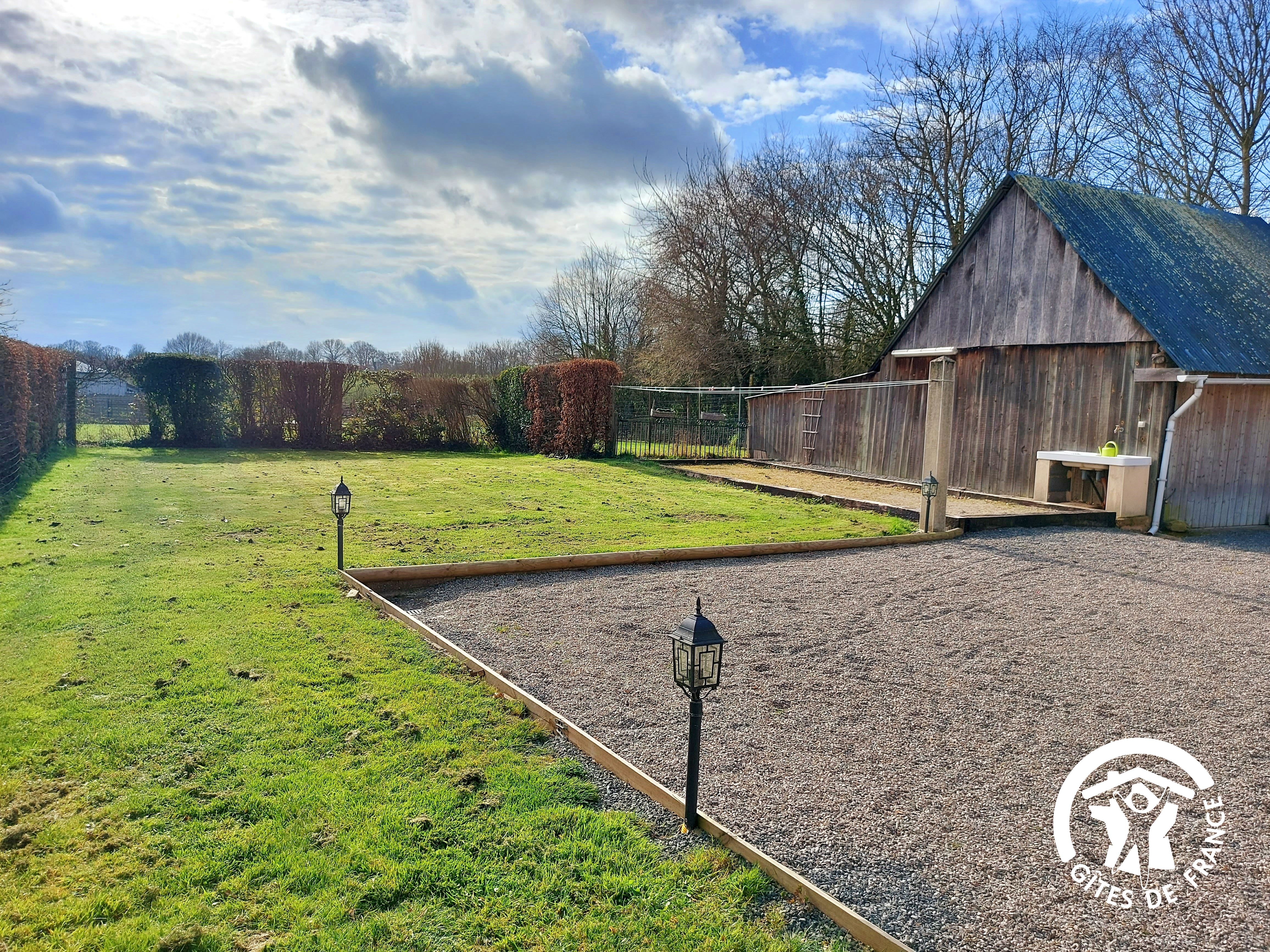 Le jardin est entièrement clos et donne sur la campagne et des champs accueillant des cerfs.