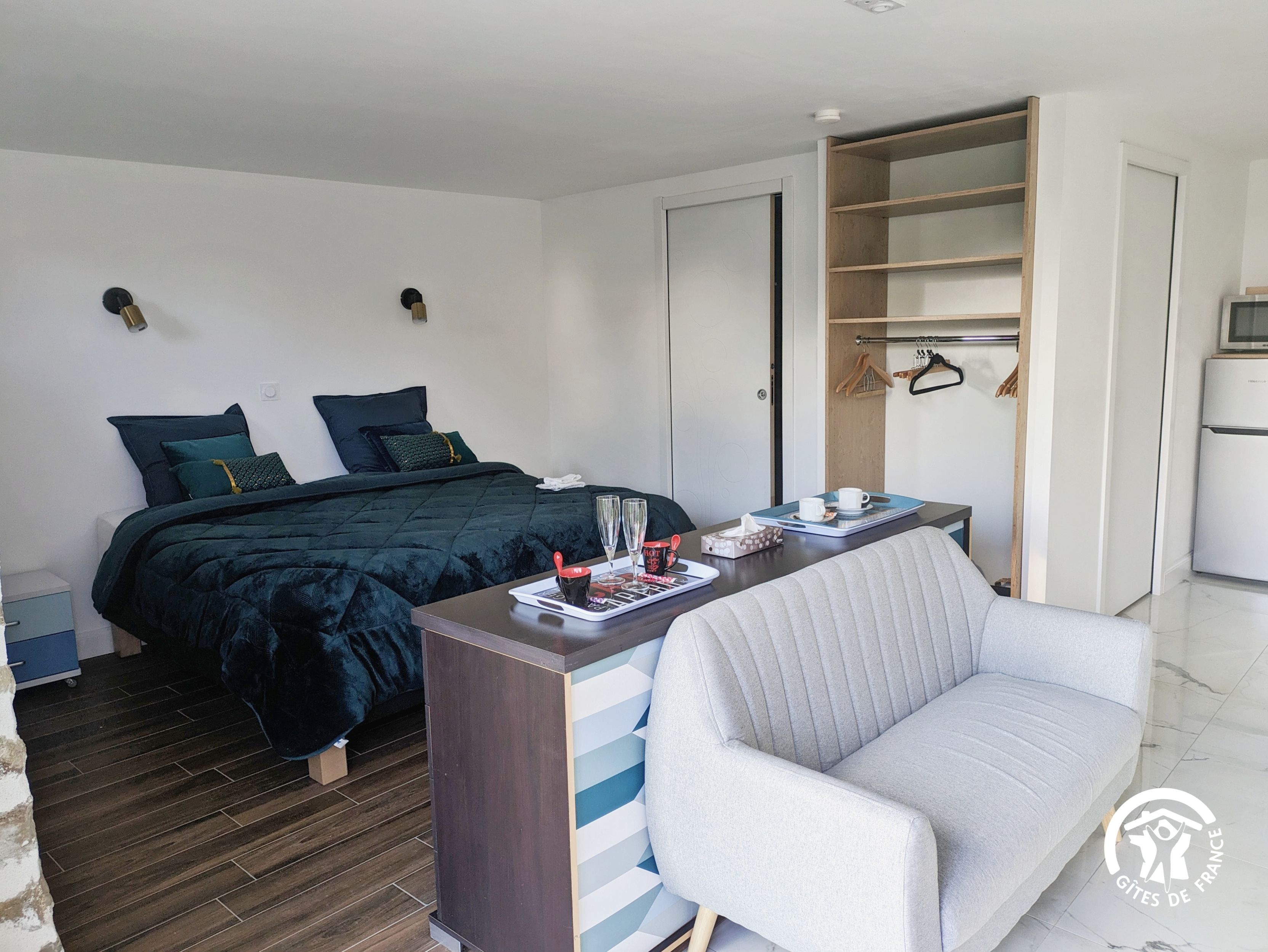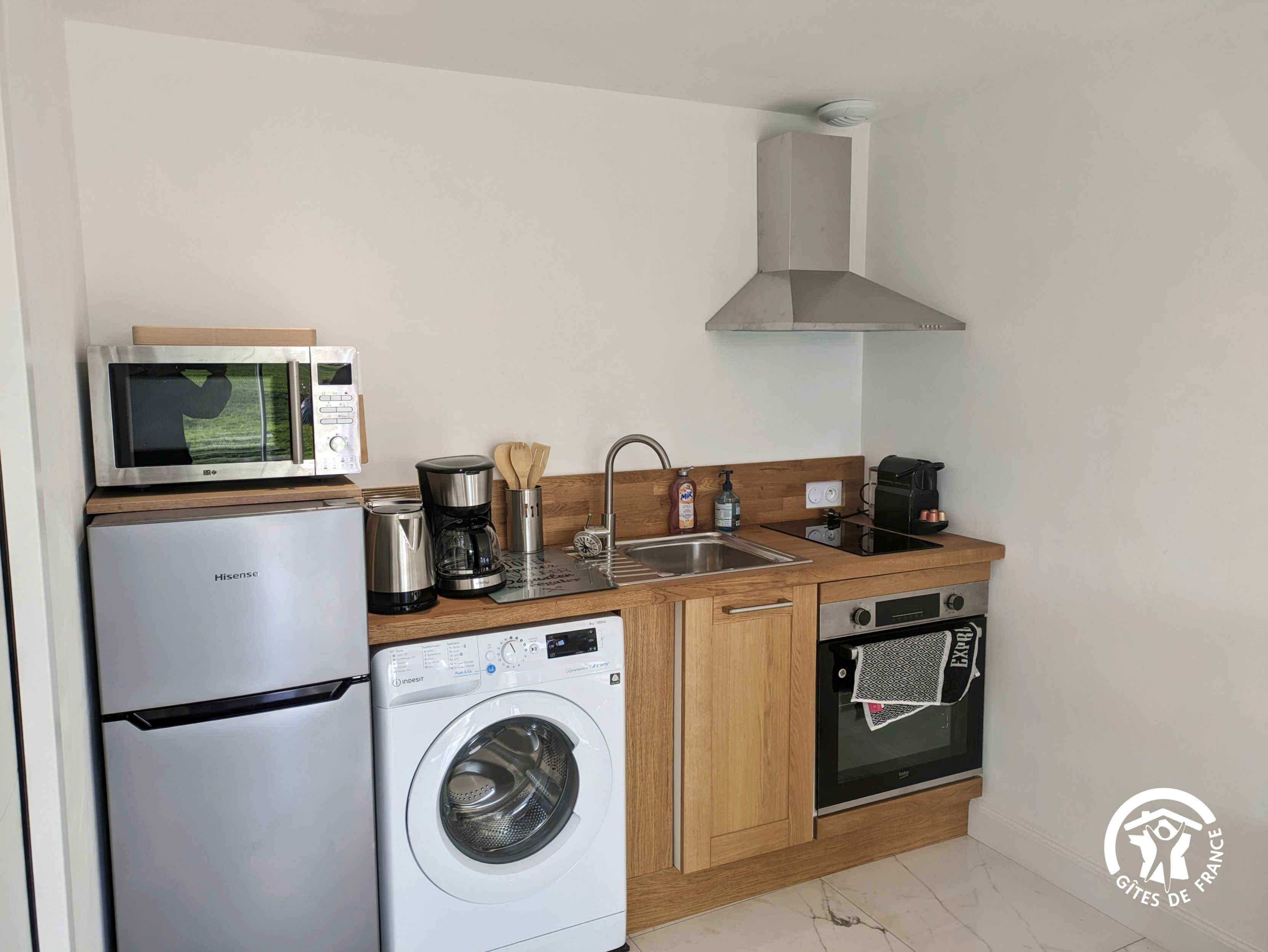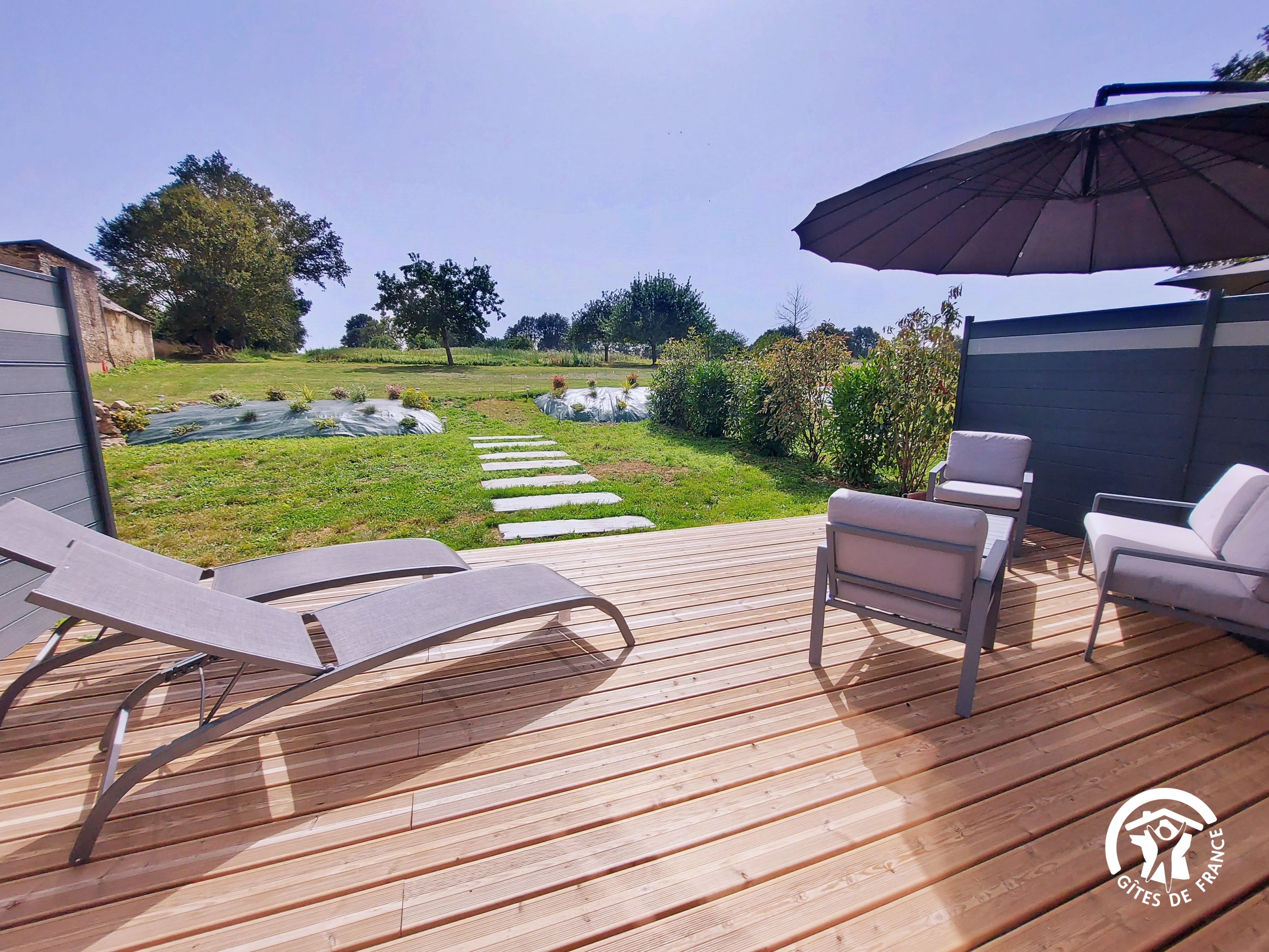 Depuis la terrasse exposée plein sud, vous profiterez d’une vue dégagée sur la campagne environnante invitant au calme et à la détente. Confort assuré grâce aux équipements et services inclus (cuisine équipée, lits faits, linge de toilette fourni, belle literie, grand écran tv).