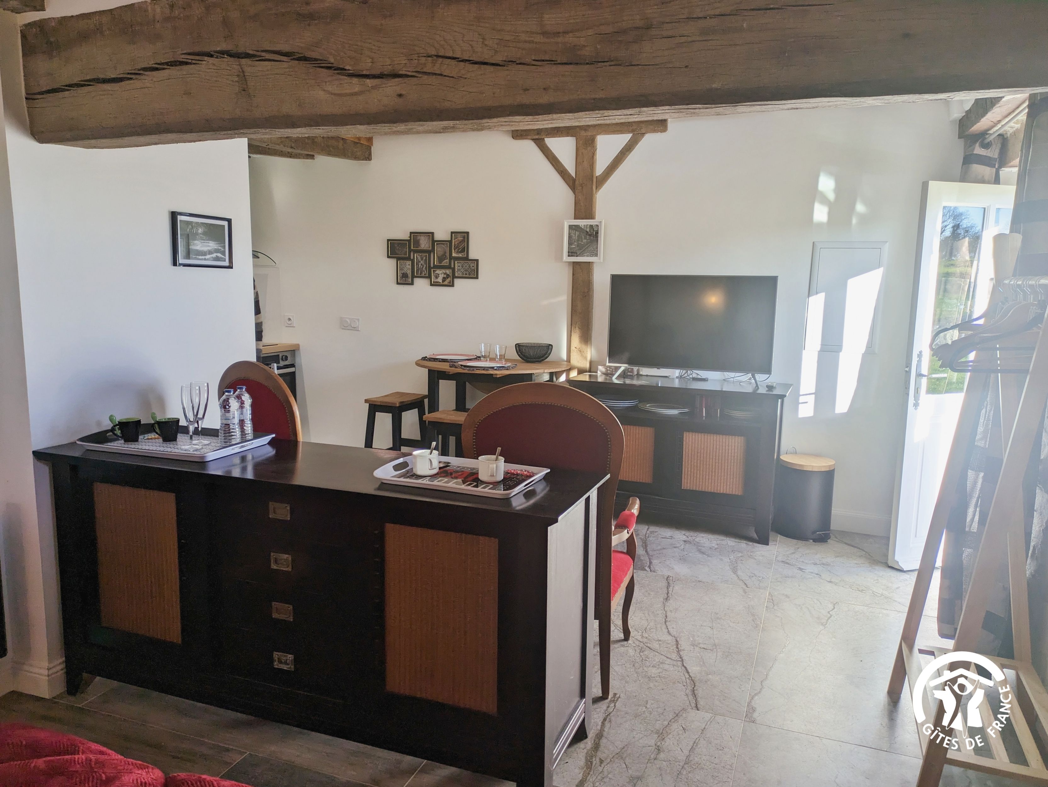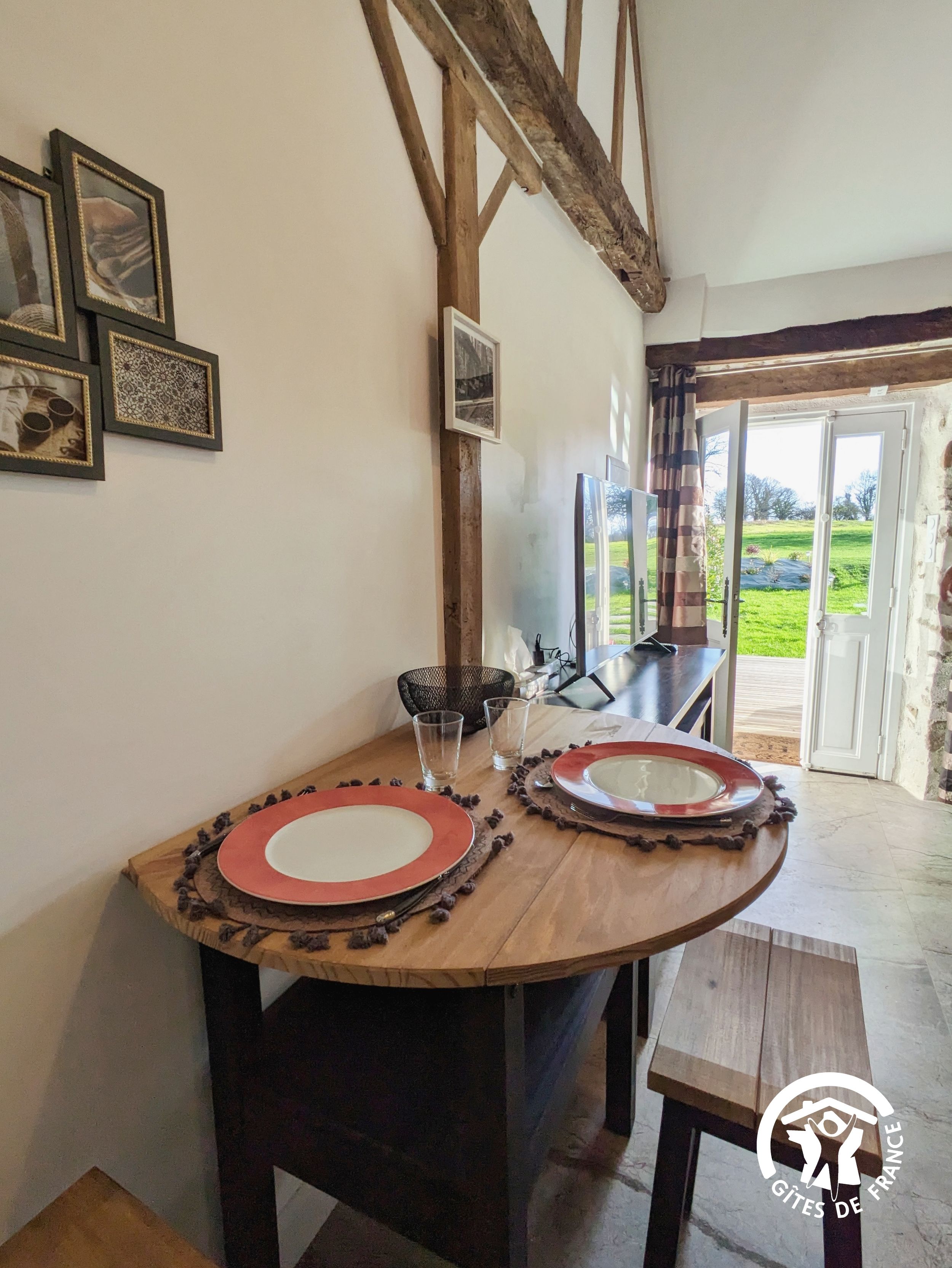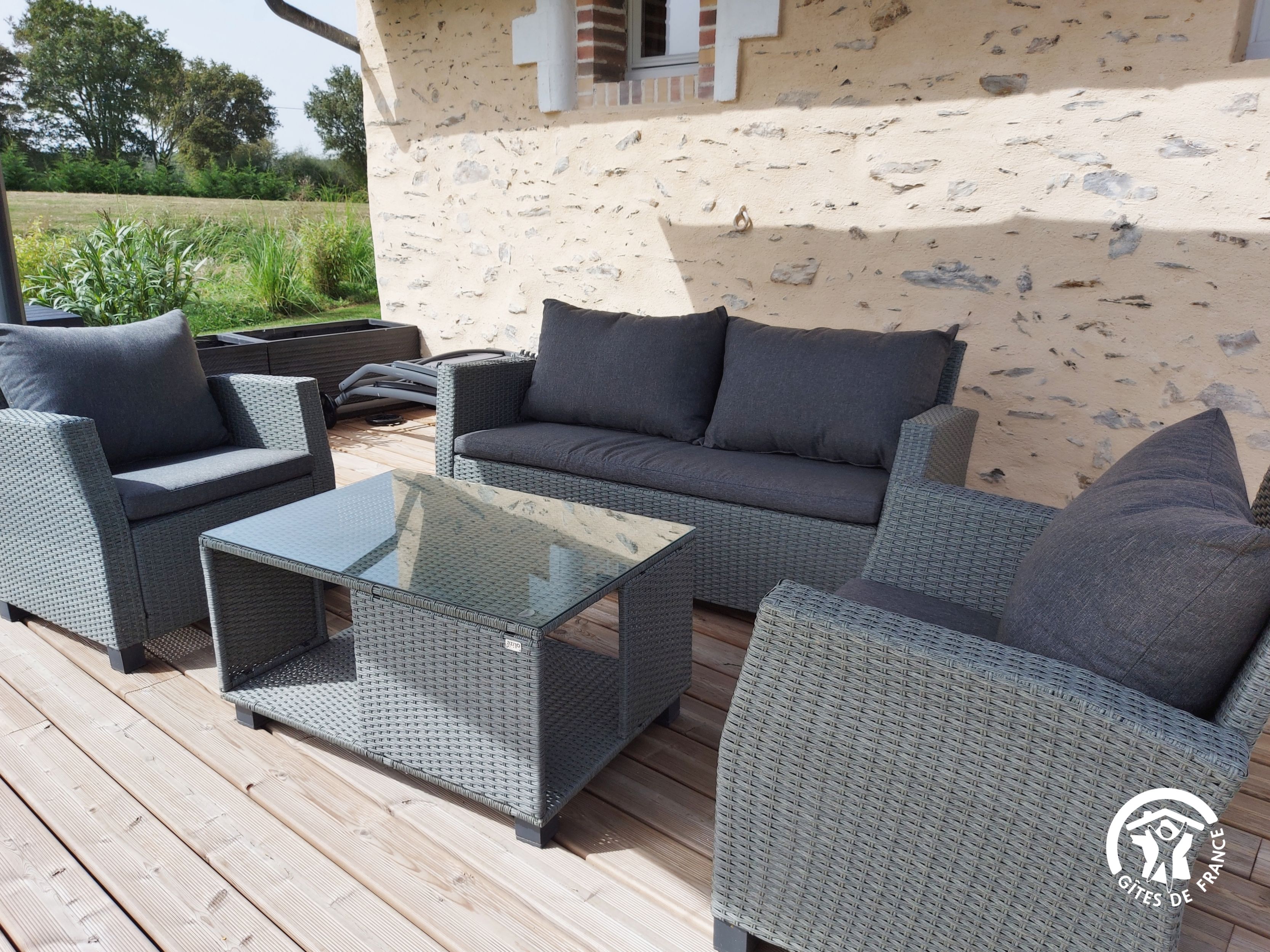Depuis la terrasse exposée plein sud, vous profiterez d’une vue dégagée sur la campagne environnante invitant au calme et à la détente. Confort assuré grâce aux équipements et services inclus (cuisine équipée, lits faits, linge de toilette fourni, belle literie, grand écran télévision).
