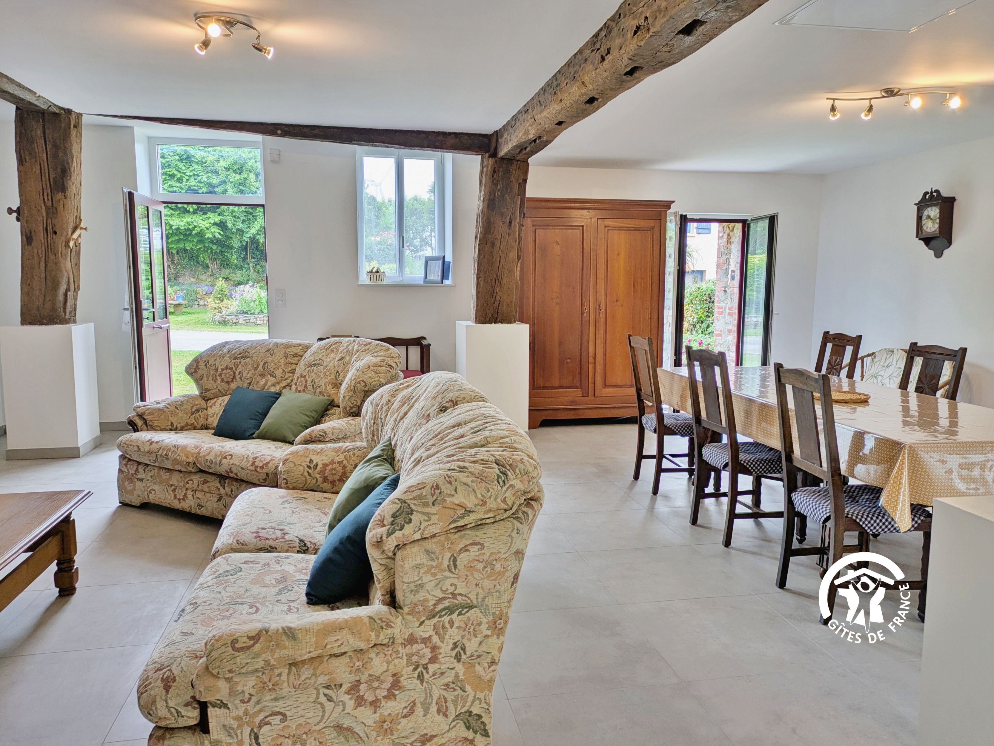 Ce gîte de plain-pied, récent et confortable, vous accueille pour un séjour convivial en famille ou entre amis. Vous y apprécierez sa grande cuisine ouverte et son salon spacieux, parfaits pour partager de bons moments.