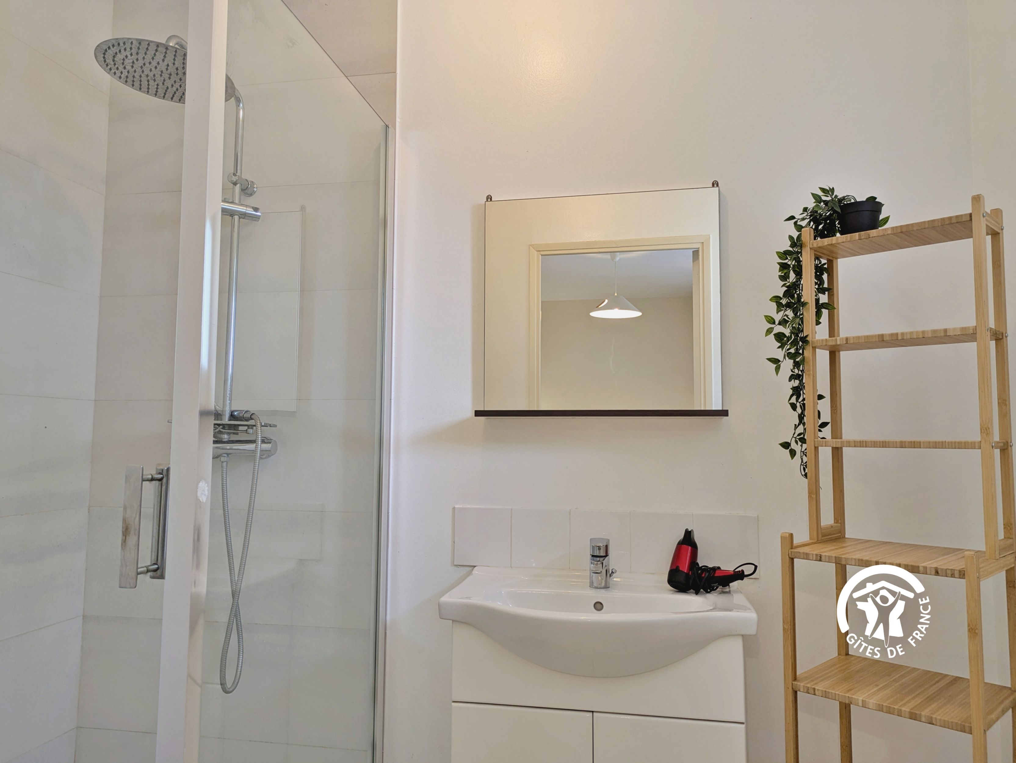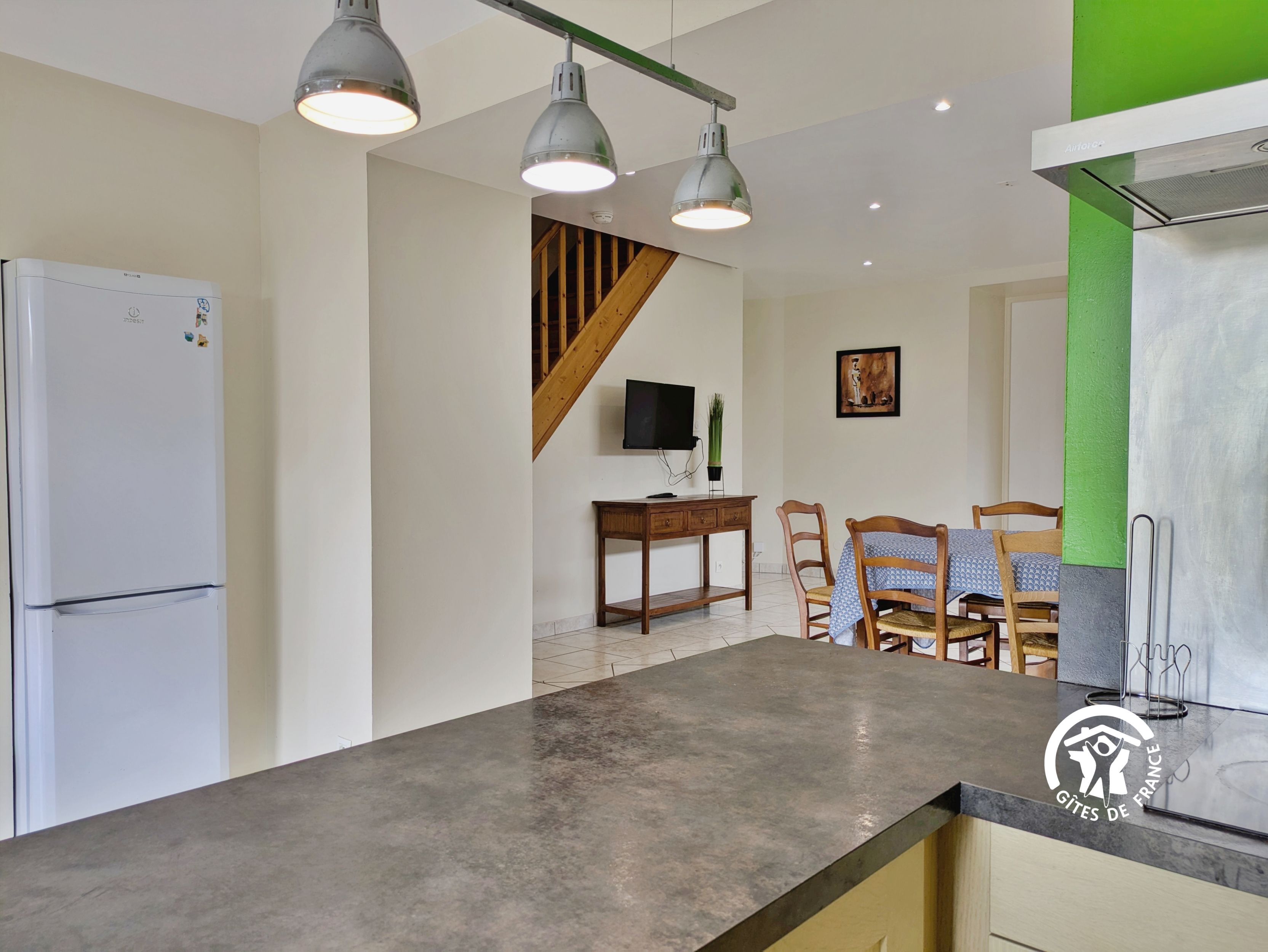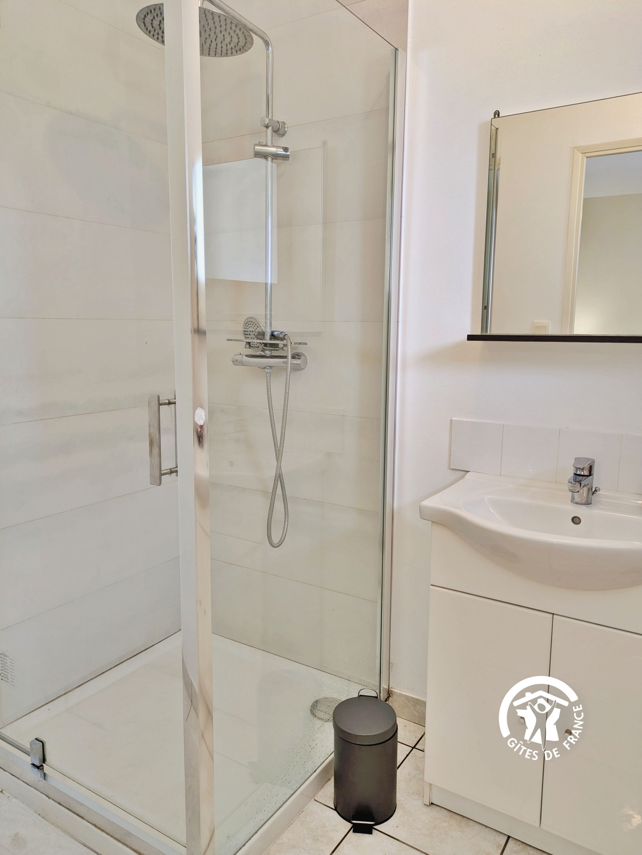 Le logement se compose de trois chambres, dont une au rez-de-chaussée (accès par 2 marches depuis le salon), de deux salles d’eau, et une pièce de vie avec cuisine ouverte sur le salon. La literie est modulable (lits 90×200 rapprochables pour former un grand lit).