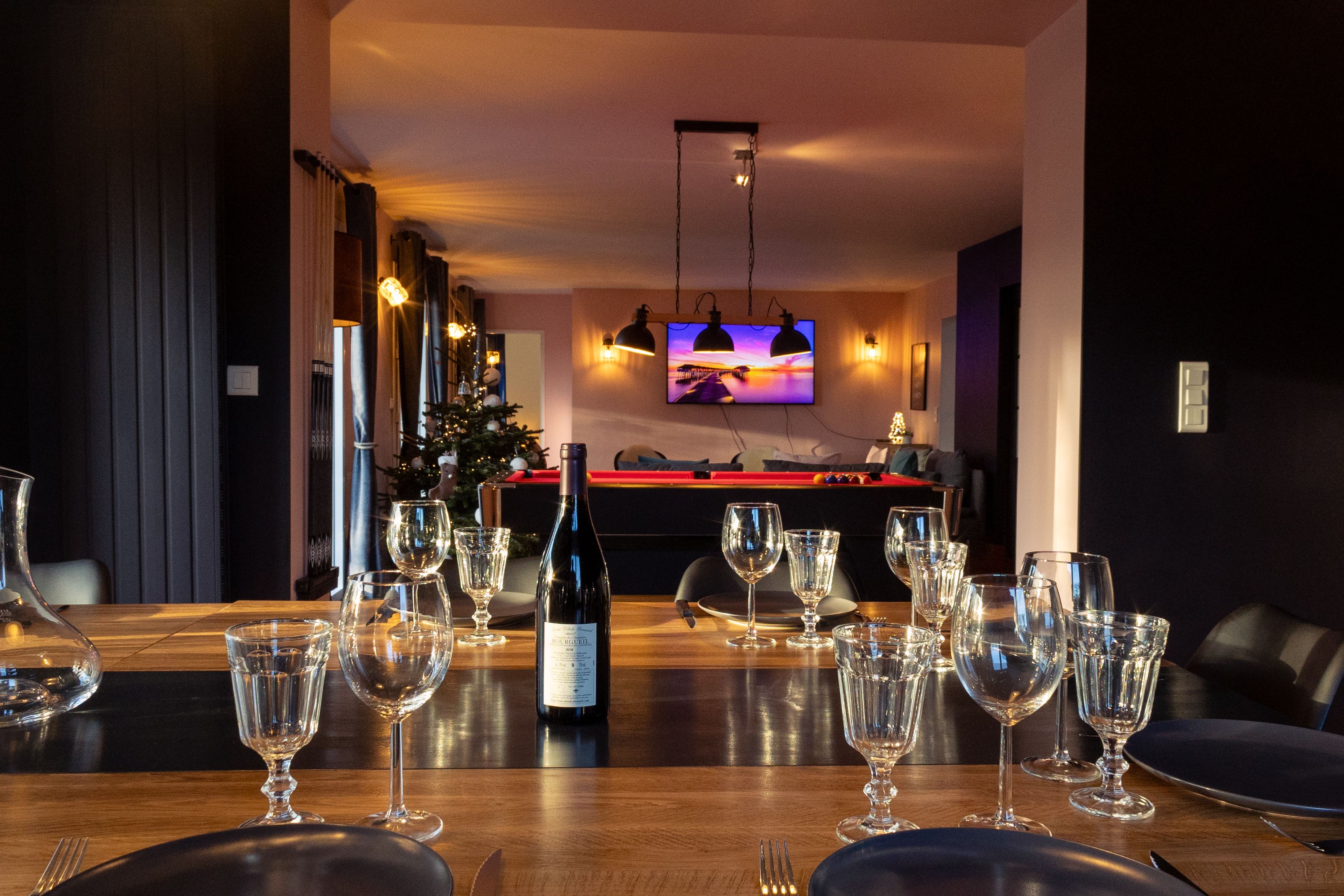 Vous retrouverez ainsi un jacuzzi, un hammam, une piscine, une salle de cinéma souterraine, une salle de sport, un braséro, un billard, un baby-foot, un barbecue, une salle de dégustation de vin et de nombreux autres équipements.