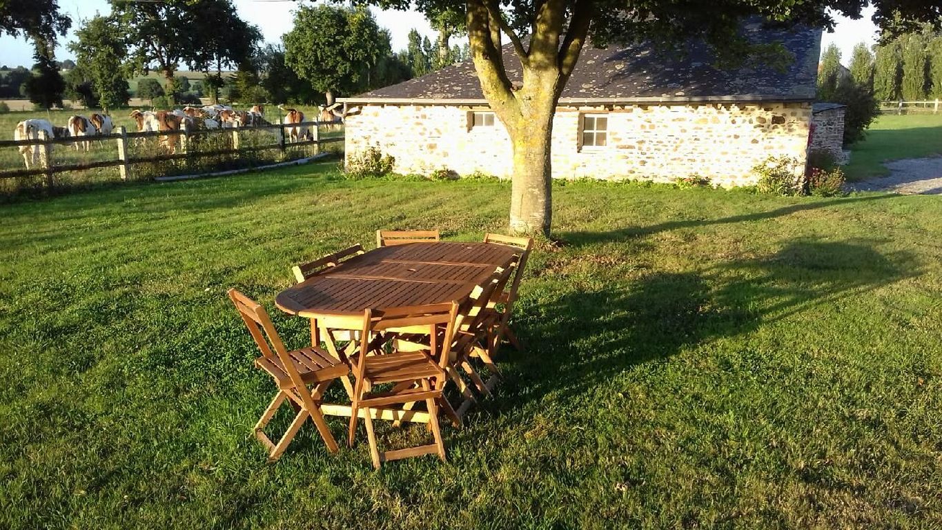 Gîte pour 6 personnes entièrement rénové dans une longère en pierre, cadre très calme, joliment arboré et fleuri.