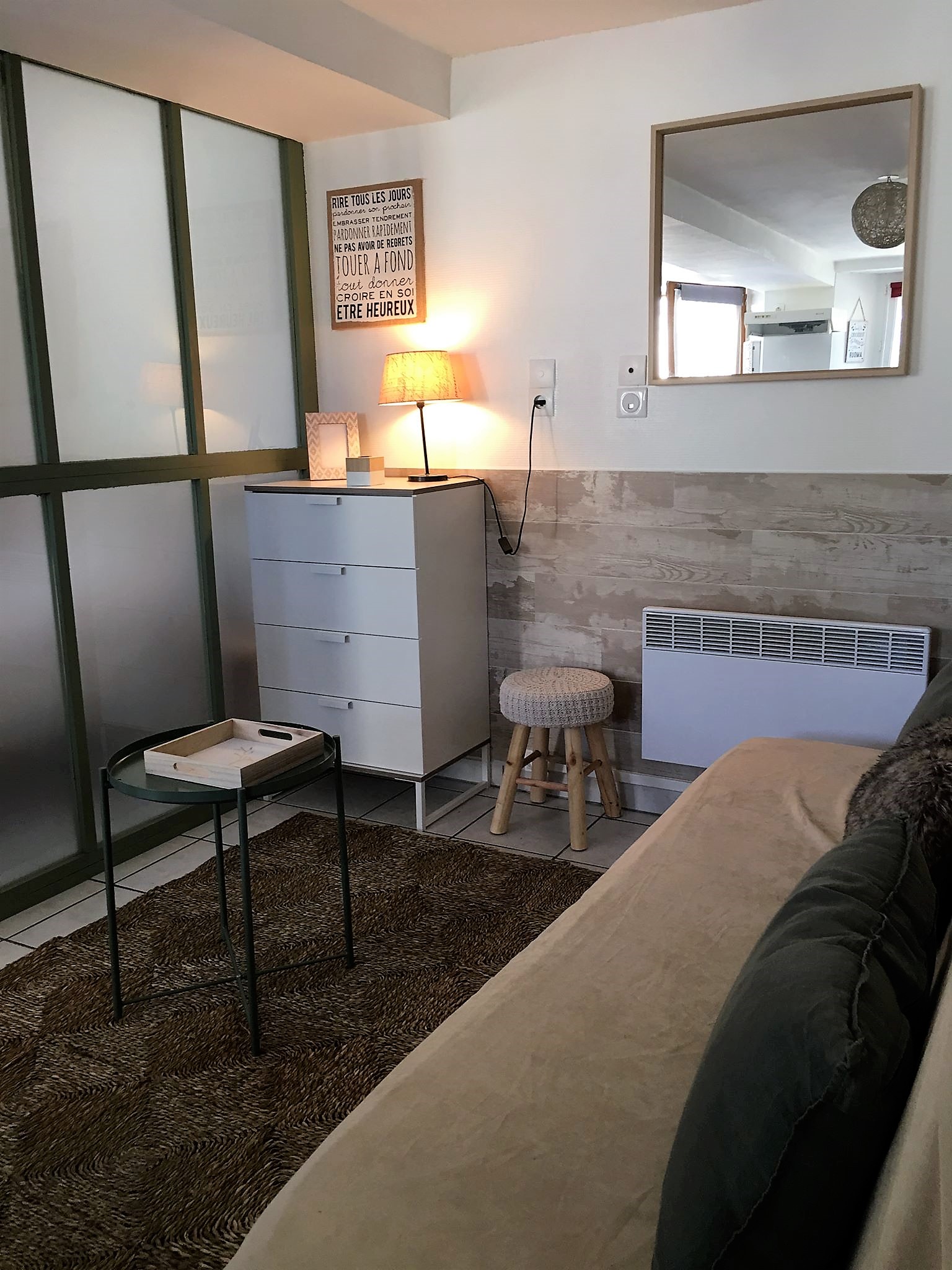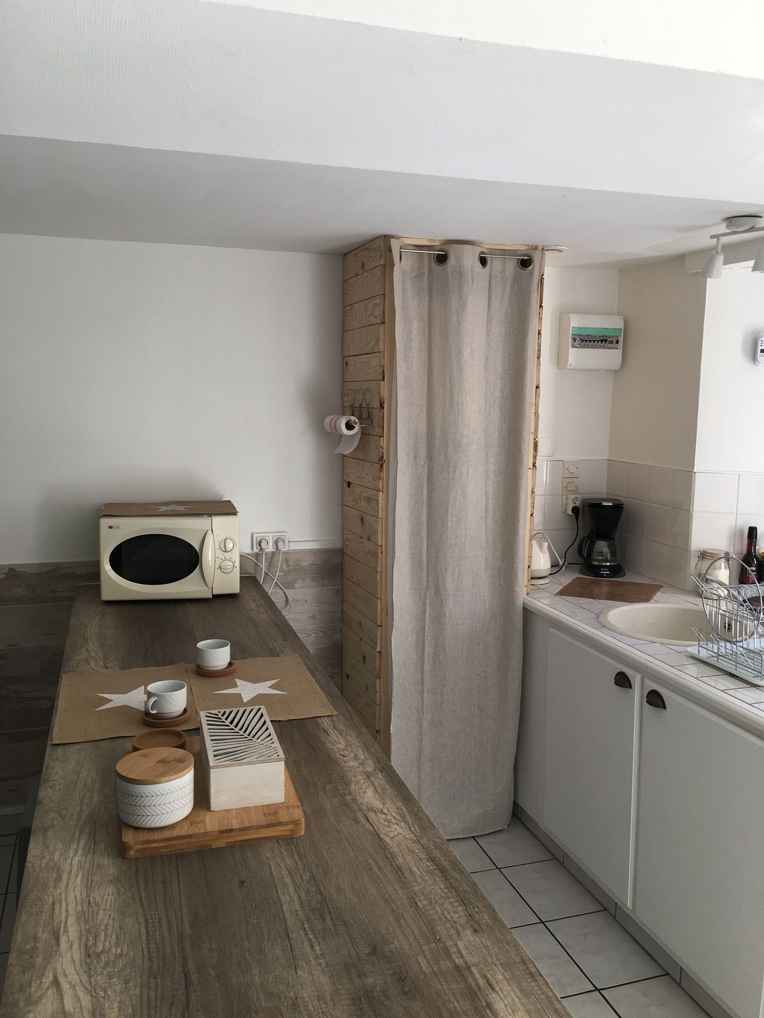 Le gîte « La Cabane » est un studio pour trois personnes (idéal couple avec enfant). Il se compose d’un coin nuit (1 grand lit de 160 x 200 cm) et d’un lit canapé 1 place dans l’espace salon. La cuisine équipée ouverte sur le salon vous offre tout le confort pour être autonome pendant votre séjour. Vous trouverez également une salle de douche avec WC. Profitez de tout le confort d’un logement chaleureux et parfaitement équipé (linge de lit et de maison, épicerie de première nécessité, plateau de courtoisie etc).