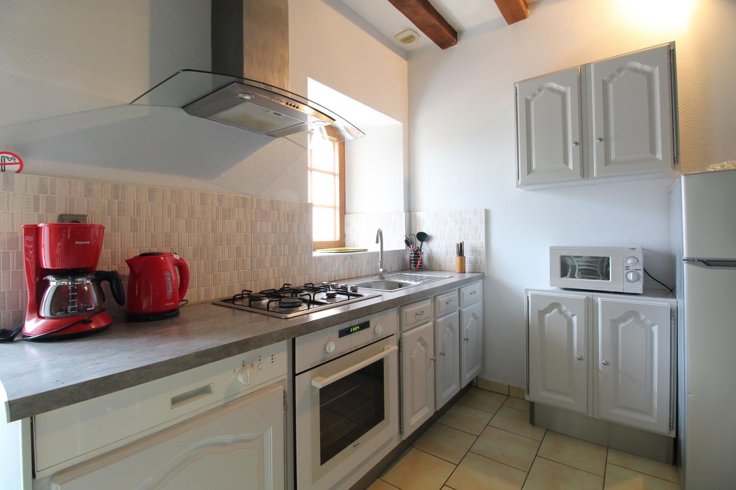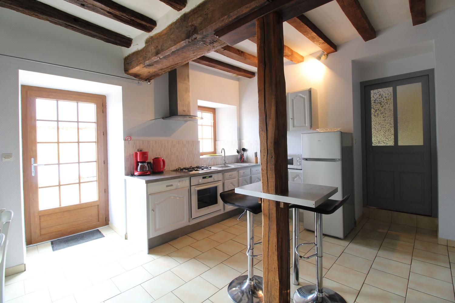 De plain-pied (seulement une à deux marches entre certaines pièces), cette maison de campagne se compose d’une cuisine bien équipée, d’un séjour, coin salon, d’une chambre avec trois lits simples et d’une seconde chambre avec un lit double et un lit simple, d’une salle de bains avec WC séparés, d’une lingerie, d’une cour privative de 100m2 avec salon de jardin et barbecue. Location de draps possible.