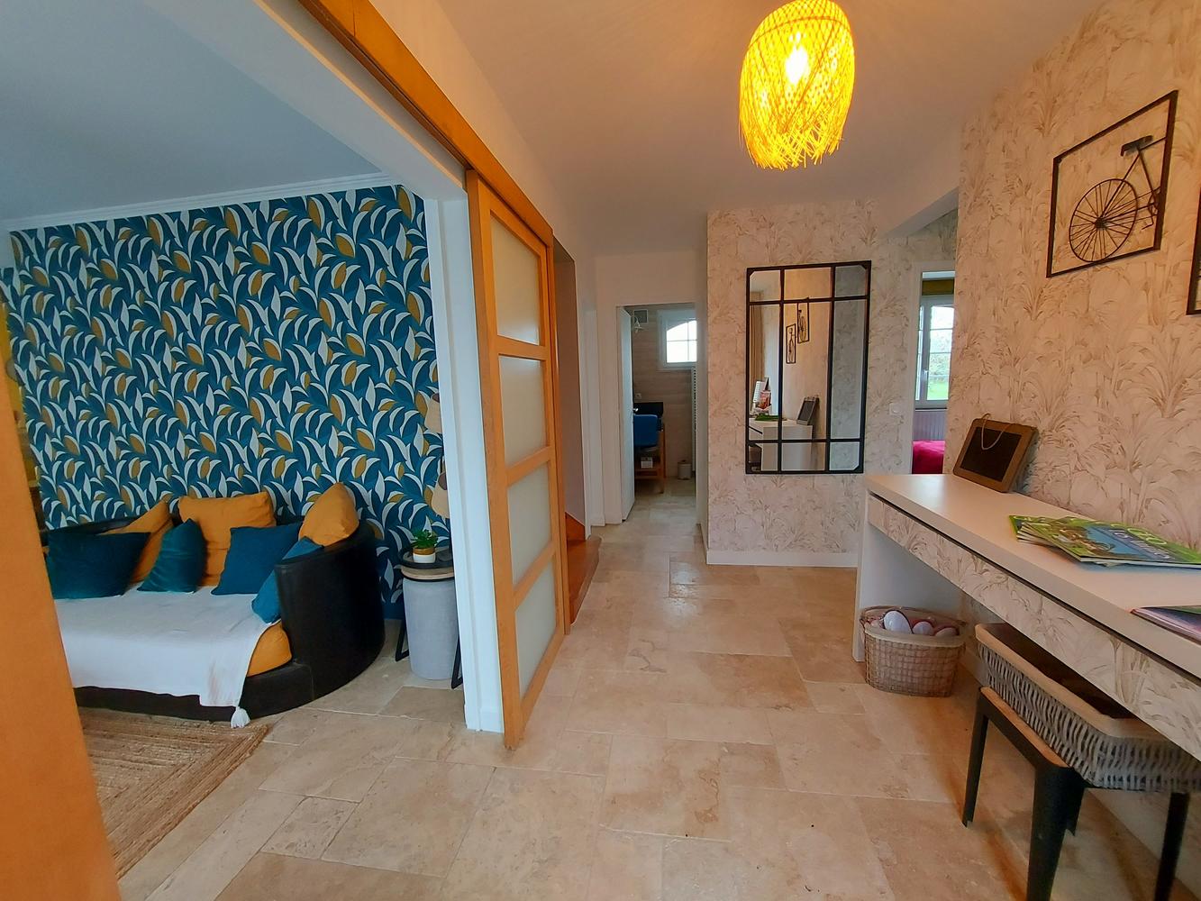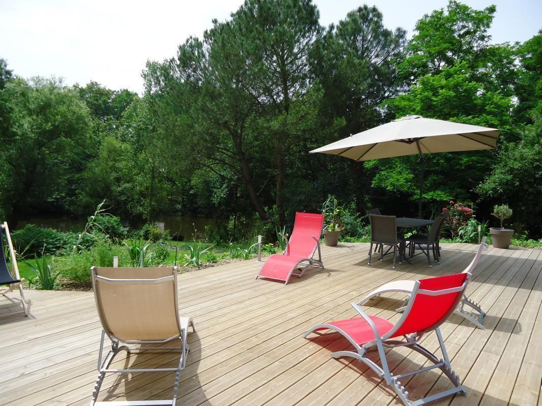 Gîte indépendant dans un cadre de verdure, sous bois avec pièce d’eau, entièrement rénové, aux portes de la Loire. Profitez d’une terrasse en bois surplombant une pièce d’eau de 5000 m² pour les amoureux de la nature et du calme (Il est possible de pêcher des carpes, gardons). Salon de jardin, barbecue, jardin et parking sont à disposition. Un intérieur cosy avec au rez-de-chaussée : une cuisine équipée, un salon/séjour agréable (écran plat, chaîne Hifi, lecteur DVD, cheminée), une lingerie (sèche-linge), une petite véranda ainsi que deux chambres avec 1 lit de 160 chacune, salle d’eau, WC. A l’Étage se trouvent quatre chambres dont deux avec 1 lit de 140 et deux autres avec 1 lit de 90, salle d’eau, WC et salle de bain. Pour les touts petits, un équipement bébé est à disposition dans le gîte.