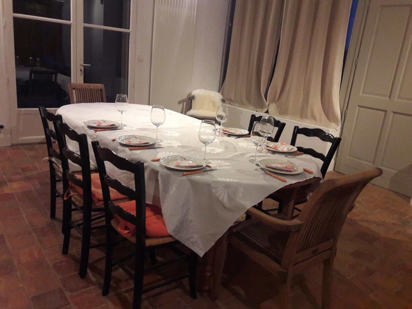 Nicole et Roland vous accueilleront dans ce gîte chaleureux au coeur de la campagne du Pays de Craon (3km de CRAON – proche hippodrome ). Chacun y trouvera son bonheur : au pied de sentier de randonnée avec possibilité d’accueil chevaux (paddocks à disposition), à vélo et pour pour les plus petits, de bons moments à partager avec le trampoline!!! Belle longère avec une salle à manger/salon, cuisine ouverte, 2 wc, 2 salles de bain : ce gîte offre la possibilité d’accueillir 11 personnes dans un très beau cadre. Votre espace nuit se décompose de la manière suivante : 4 chambres au rez-de-chaussée (3 chambres avec lit pour deux pers et 1 chambre avec lit pour 1 pers), à l’étage, 1 chambre pour deux personnes. Vous y séjournerez au calme et passerez des moments conviviaux sous le saule pleureur.