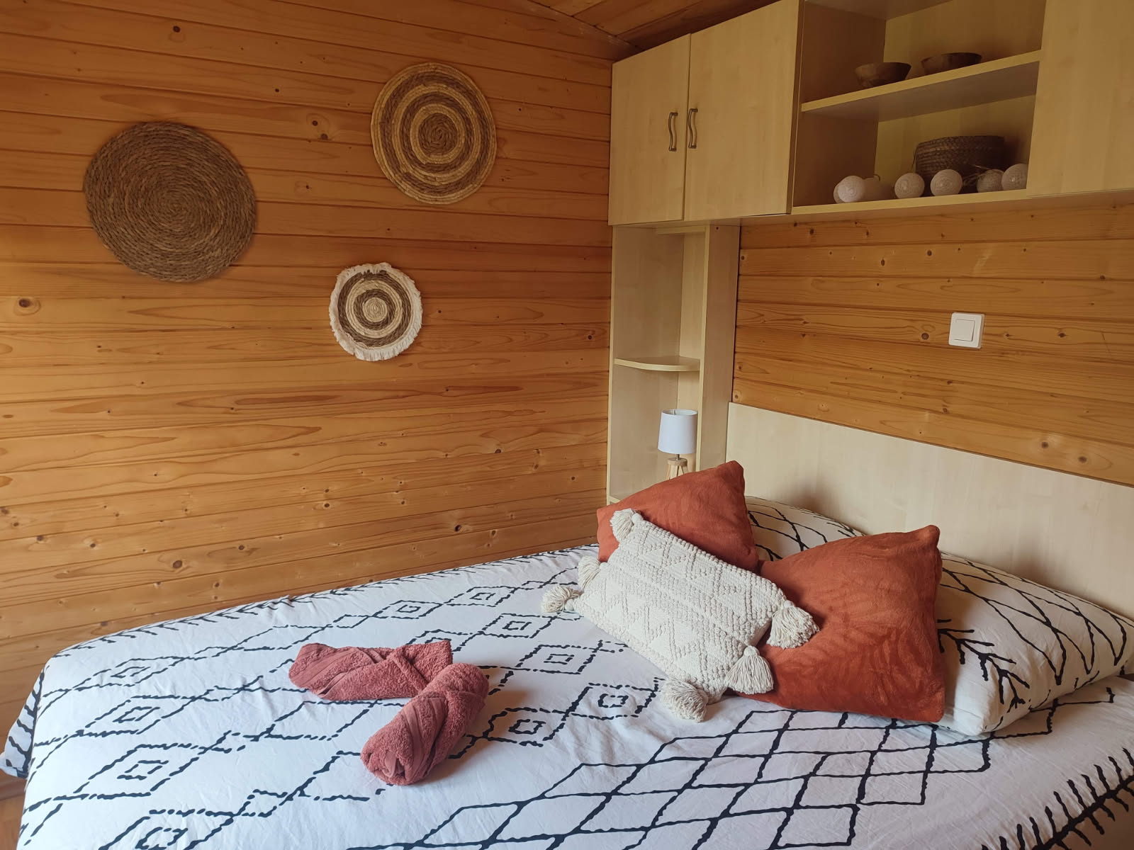 Nichée dans un écrin de verdure et de calme, évadez vous dans notre roulotte toute en bois au charme bohémien !