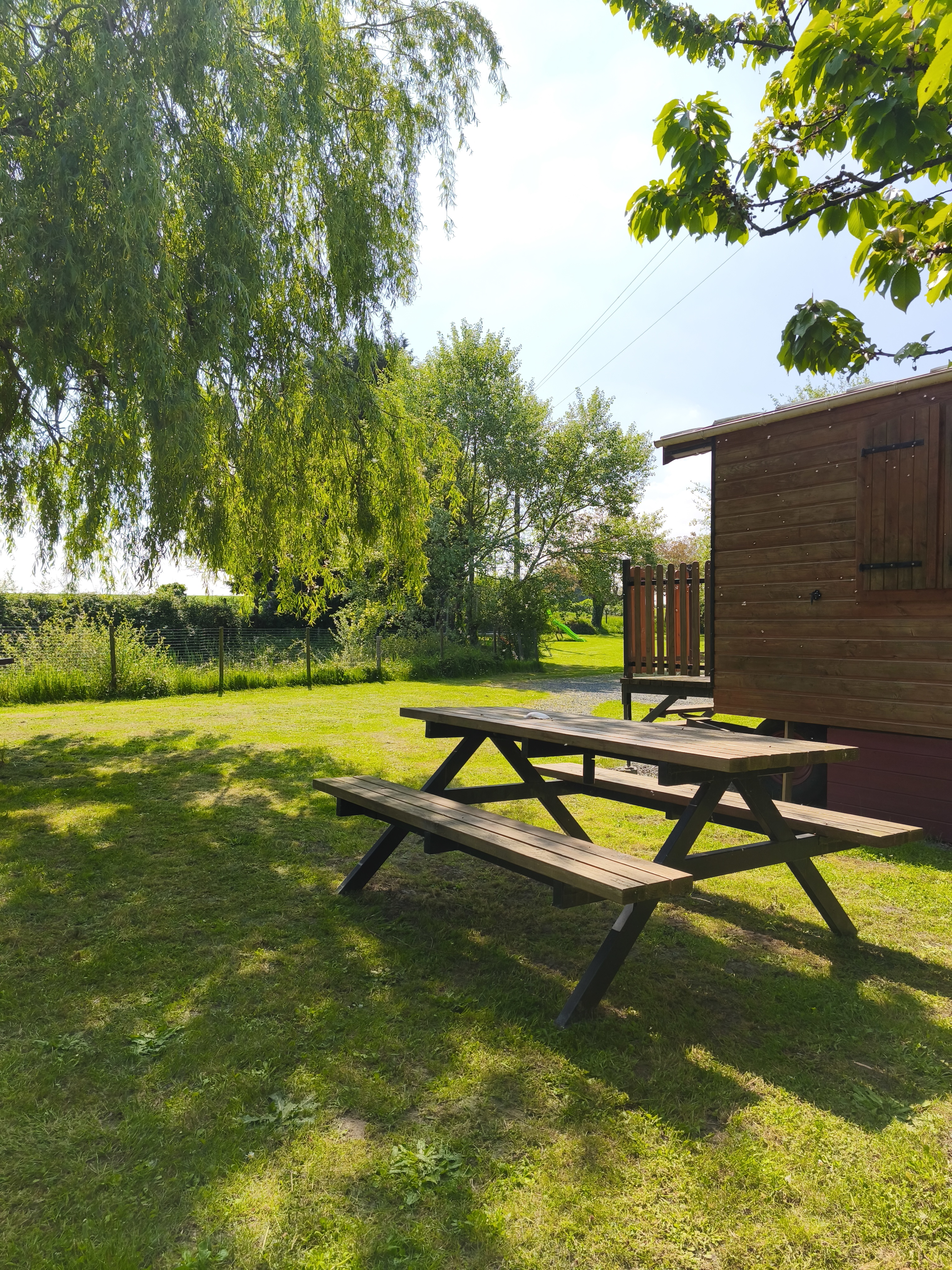 Au cœur de la campagne angevine, installée dans le jardin d’une belle propriété avec longère, la Pâquerie vous propose de séjourner dans sa roulotte dans un cadre bucolique et reposant entouré de verdure.