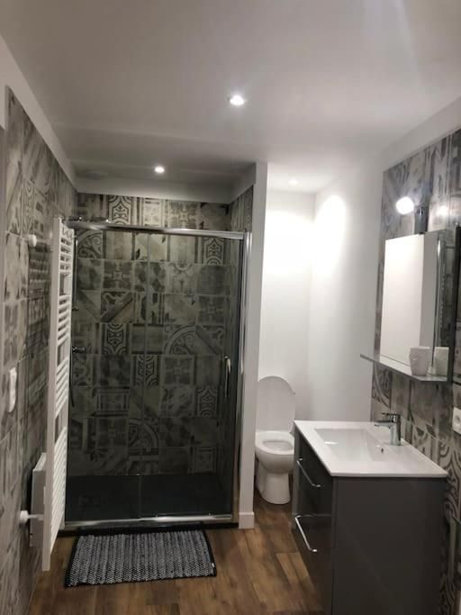 Au RDC, une cuisine toute équipée avec son espace repas, un salon avec cheminée et écran plat. Un WC indépendant avec espace lingerie, lave-linge et sèche linge.