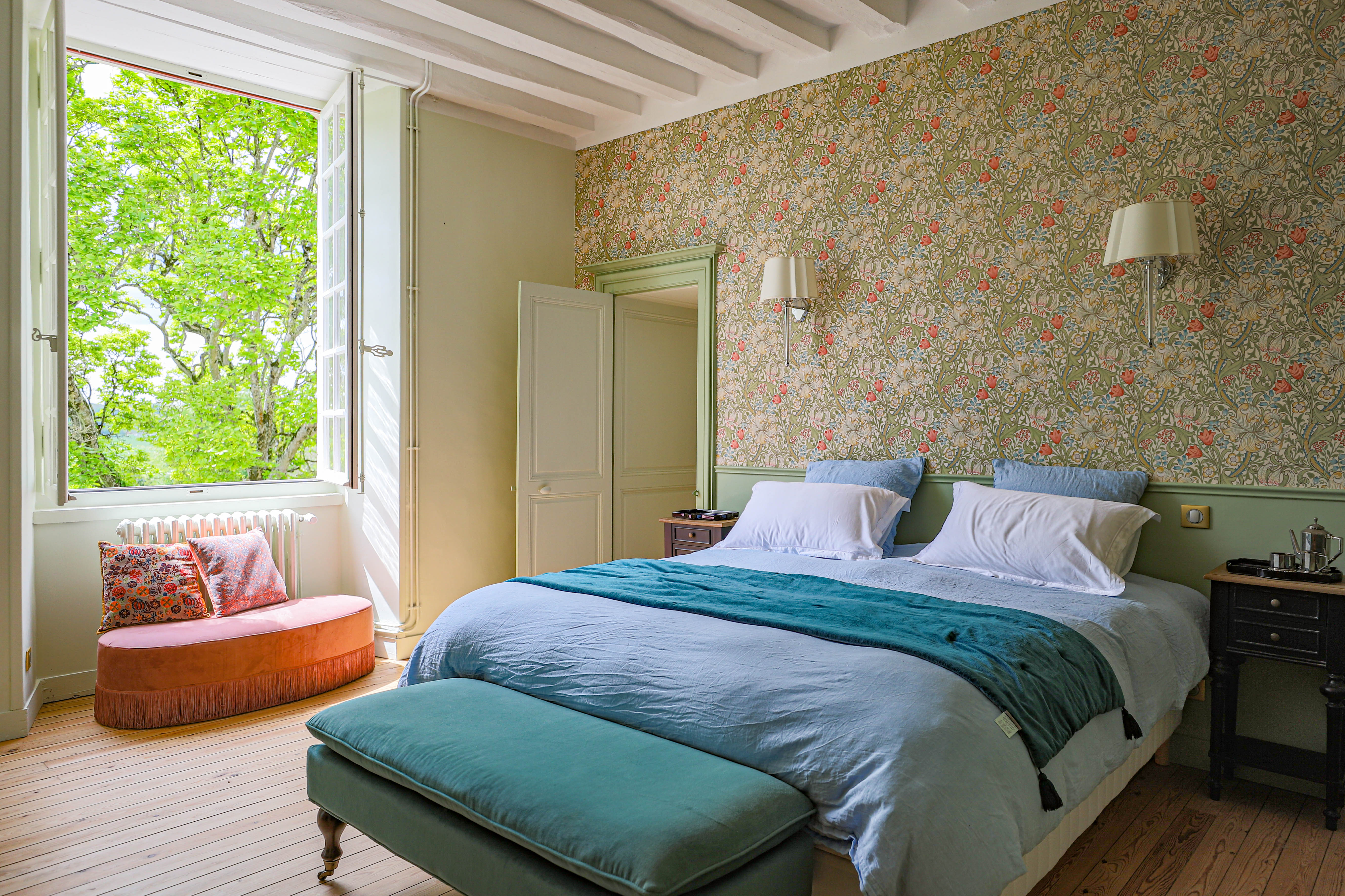 – La suite les Topiaires offre une triple exposition avec vue sur le parc à l’Est, le jardin au Sud et la cour à l’Ouest au soleil couchant. D’une surface de 80 m2, elle peut accueillir 2 à 5 personnes dans trois chambres séparées.