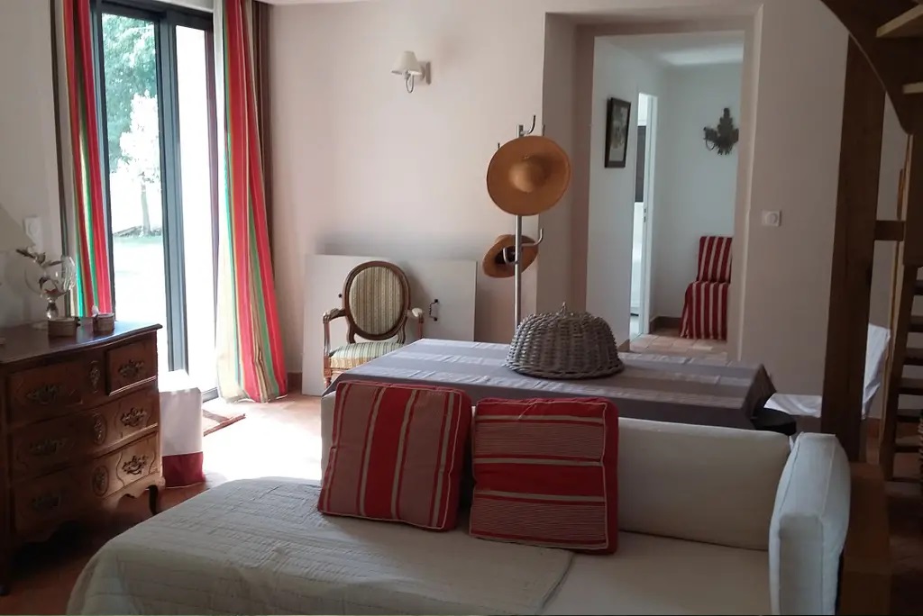 Ancien relais de chasse, ce pavillon 18e assorti d’un colombier a été restauré et agrandi . Donnant sur un jardin arboré bordé d’une prairie entourée d’un bois, il offre un cadre très calme et reposant. Notre maison se trouve à 2kms environ de La Jaille-Yvon. De nombreuses activités à proximité : poney club à 500m, activités nautiques sur la Mayenne, accrobranches, randonnées en vélo sur chemin de halage, courses au Lion d’Angers, refuge animalier de l’Arche, la Mine bleue, manoirs et châteaux angevins, golf… La piscine du gîte est ouverte de mai à septembre et est partagée avec les propriétaires (selon créneaux horaires).