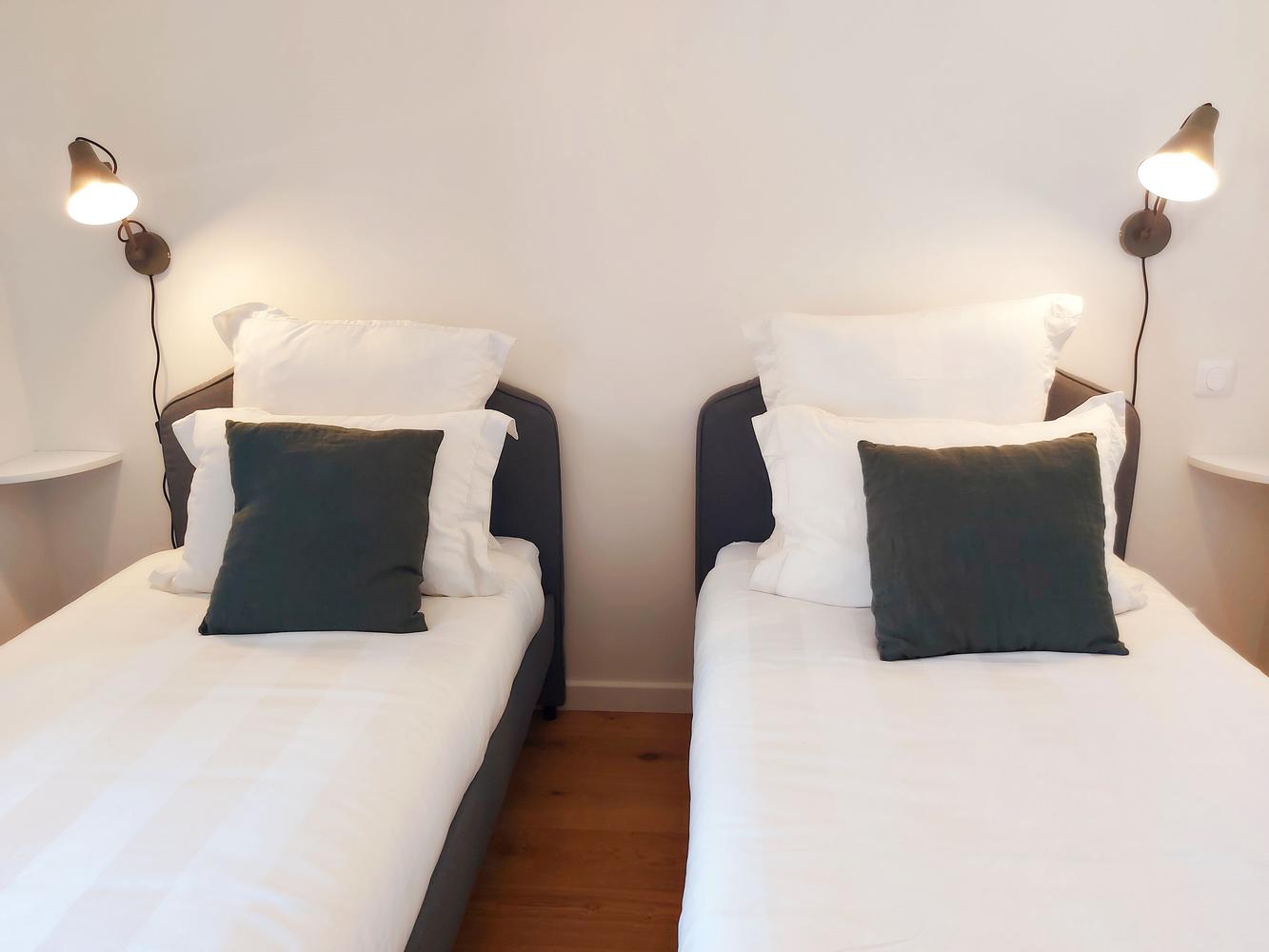 Seul ou à plusieurs, les deux chambres proposent jusqu’à 4 places (1 avec 1 lit double 160*200 et la 2e avec 2 lits simples 90*200) pouvant être complétées par le canapé convertible pour une personne supplémentaire.
